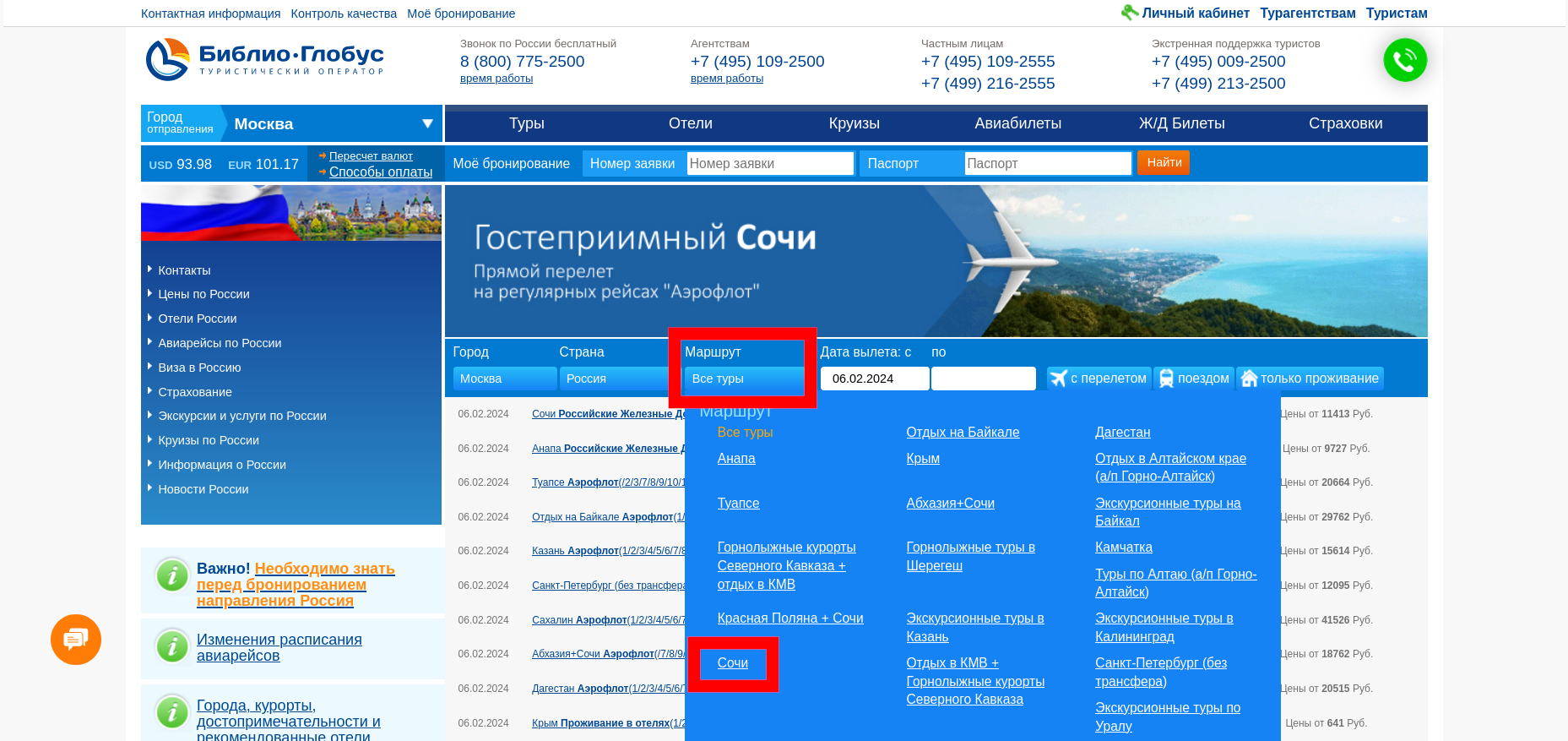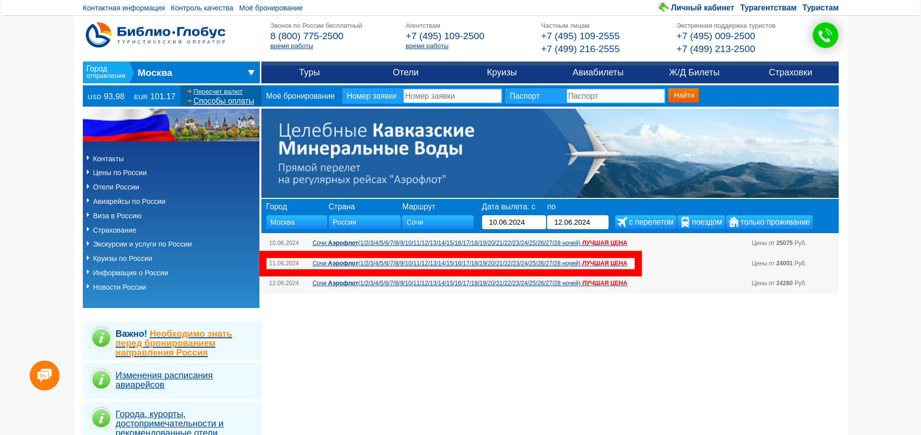 5. Нажмите на ссылку тура с интересующей Вас авиакомпанией.