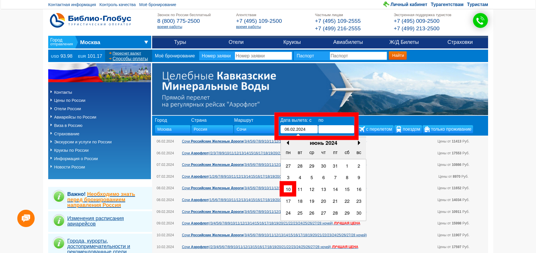 4. Выберите желаемые даты начала тура (одна дата или период).