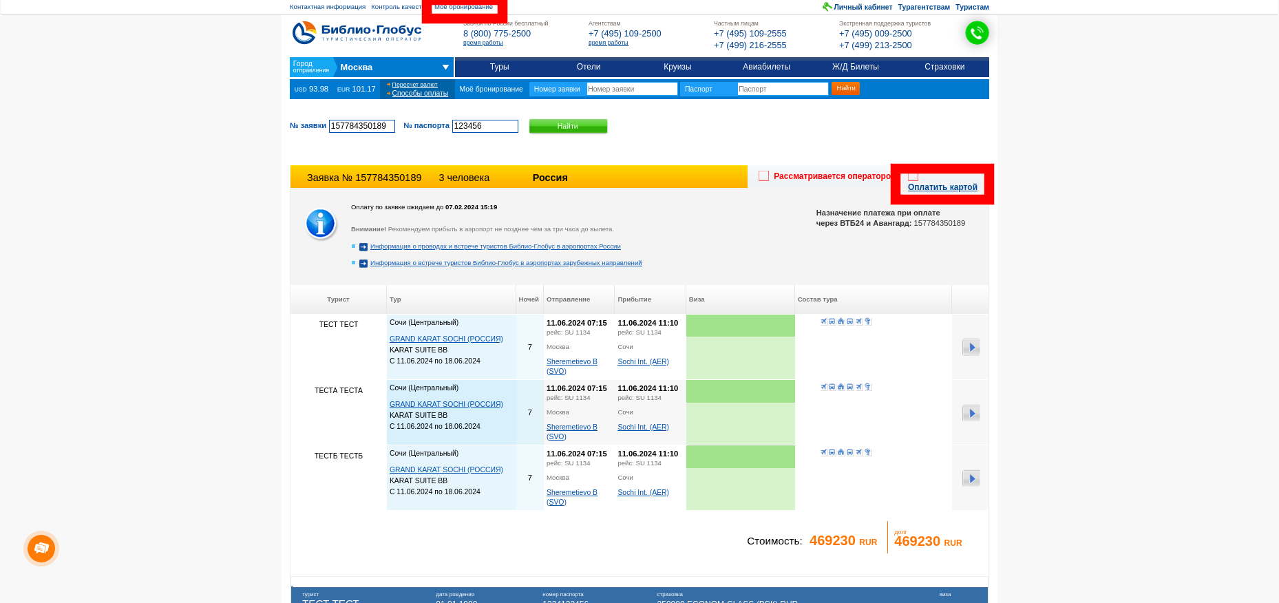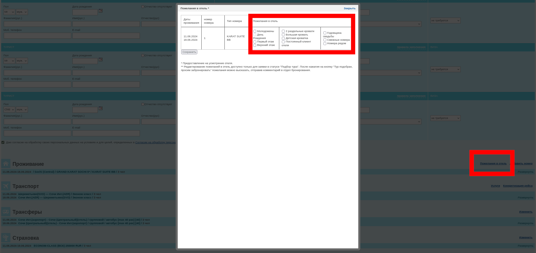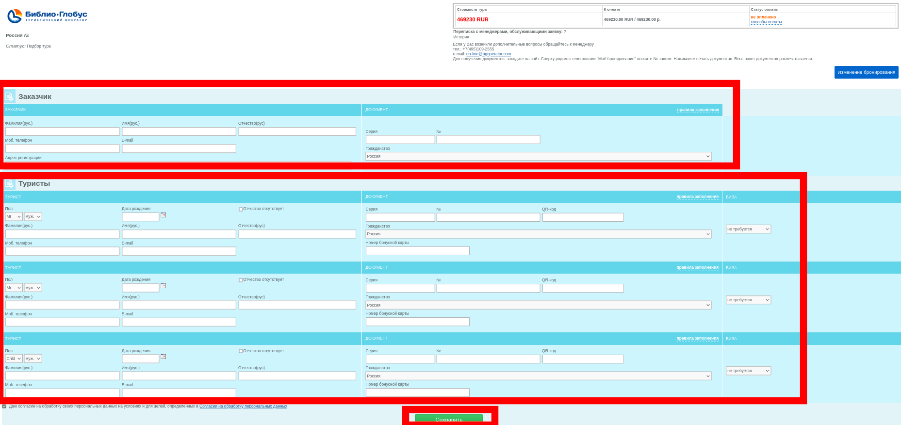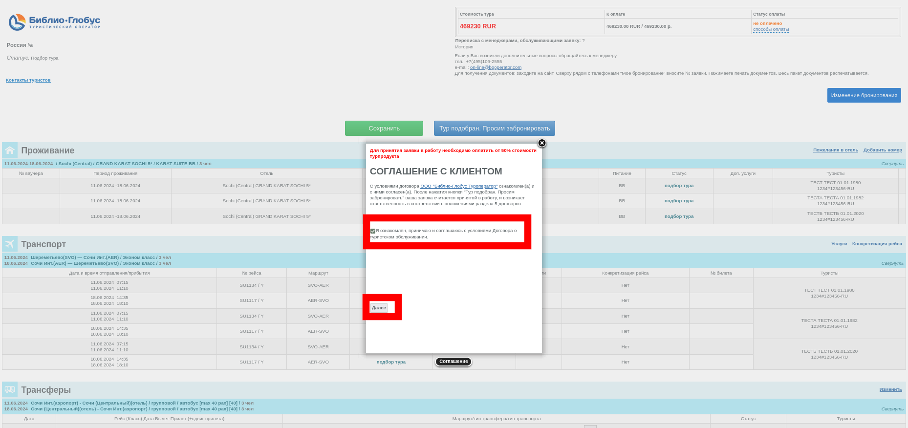 12. Переходите в бронирование тура (создание заявки), корректно вносите все данные: