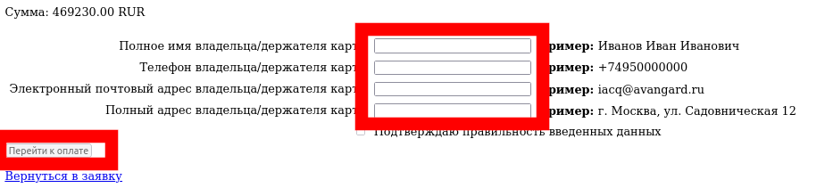 18. Заполняете данные держателя карты, подтверждаете правильность данных и переходите к оплате.