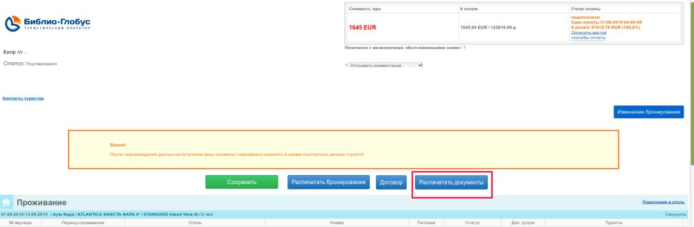 24. В заявке Вы можете распечатать документы по туру. Также их можно распечатать в разделе "Мое бронирование".