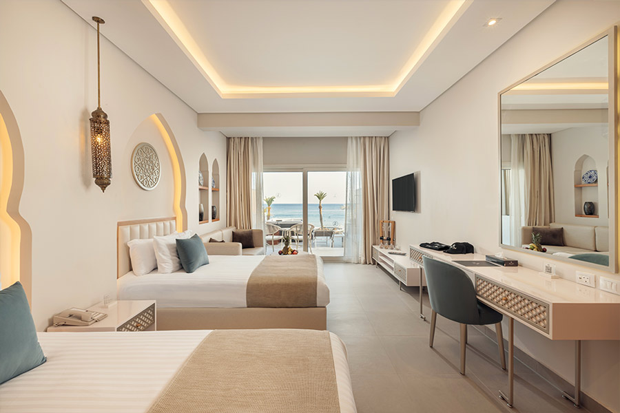 Новейший отель в стиле арабского шика открылся в январе 2025 года. Вы найдете люксы с выходом в бассейн или с джакузи на террасе с видом на море, номера с привилегиями Posh Club, великолепное питание в основном и ресторанах a la carte, а также живописный коралловый риф самой безветренной бухты в Шарм-Эль-Шейхе – Рас Назрани. Отель предлагает концепцию питания «Премиум все включено» и подогрев бассейнов в зимнее время для максимального комфорта гостей.