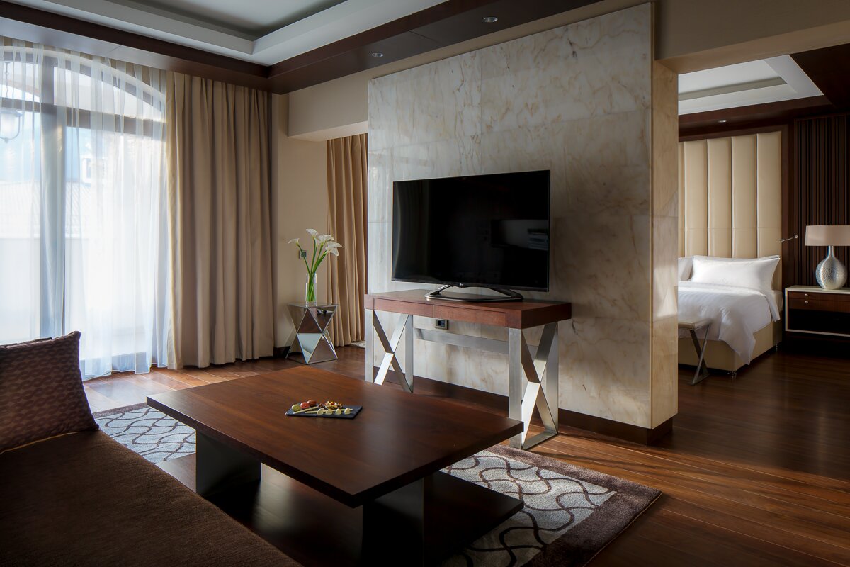 Элегантный 2-комнатный номер с большой двуспальной кроватью, оснащение которого полностью соответствует стандартам бренда Marriott, включая премиальное постельное белье, изготовленное на заказ. В номере: балкон с гарантированным видом на горные вершины и реку. Выбирая представительский люкс с видом на горы, гости получают свободный доступ к закускам и напиткам в течение дня, коктейльным часам в вечернее время, бизнес-центру в клубной гостиной Executive Lounge