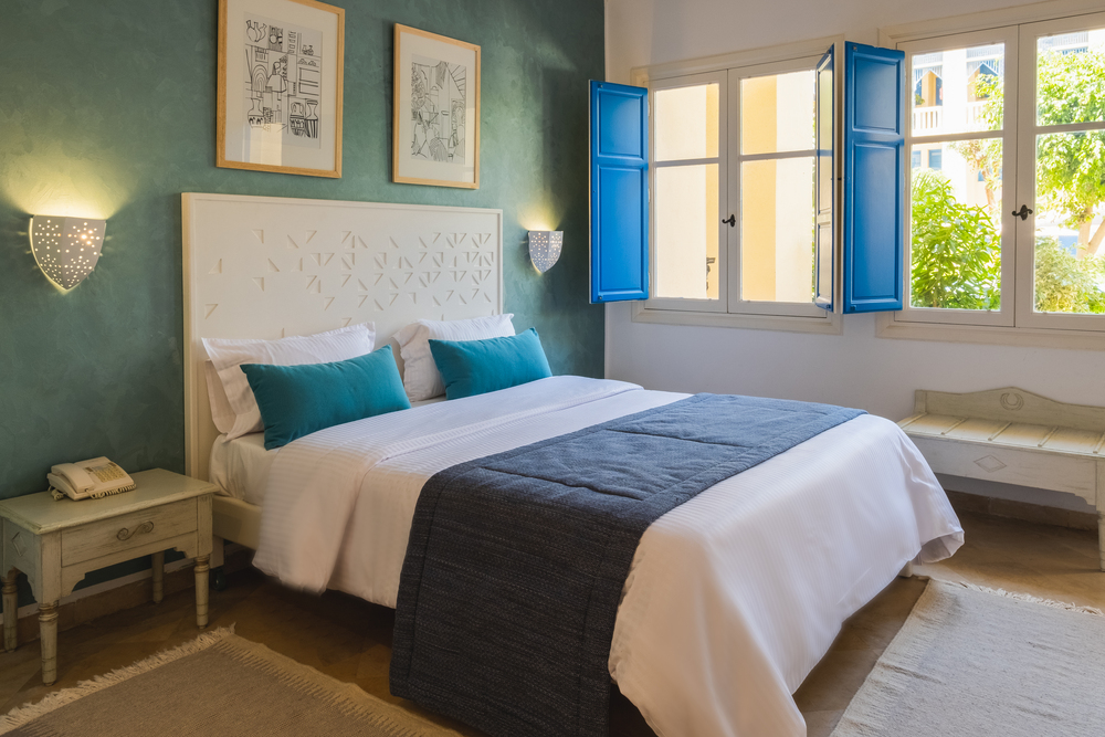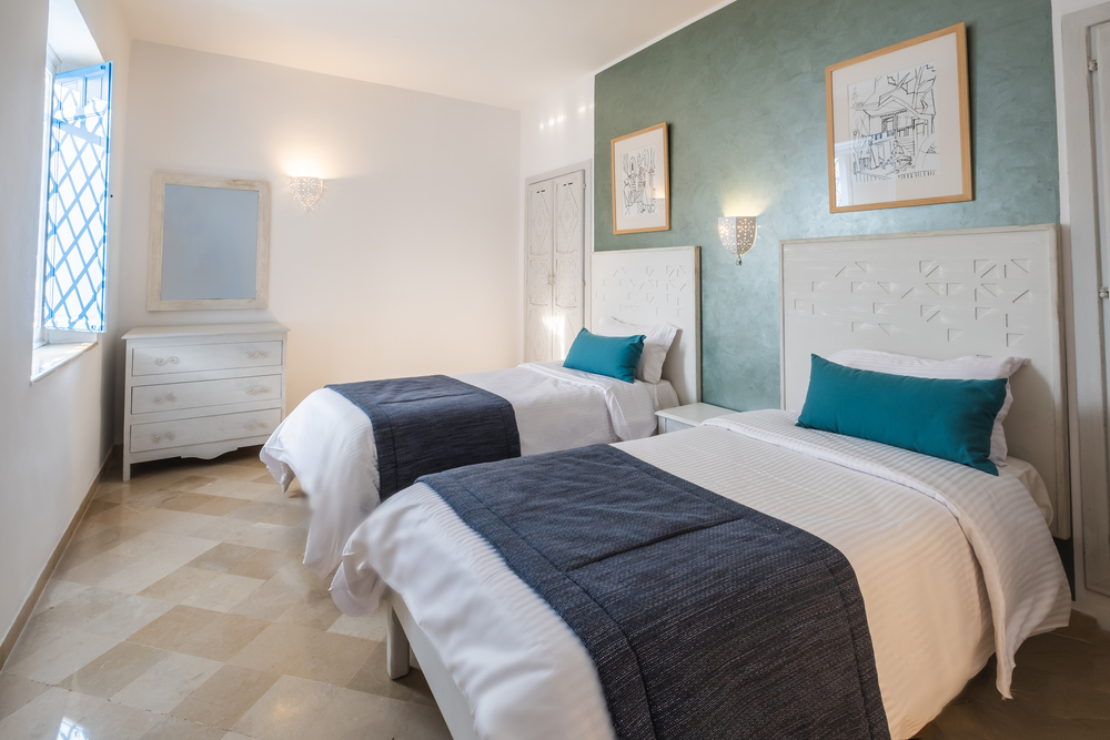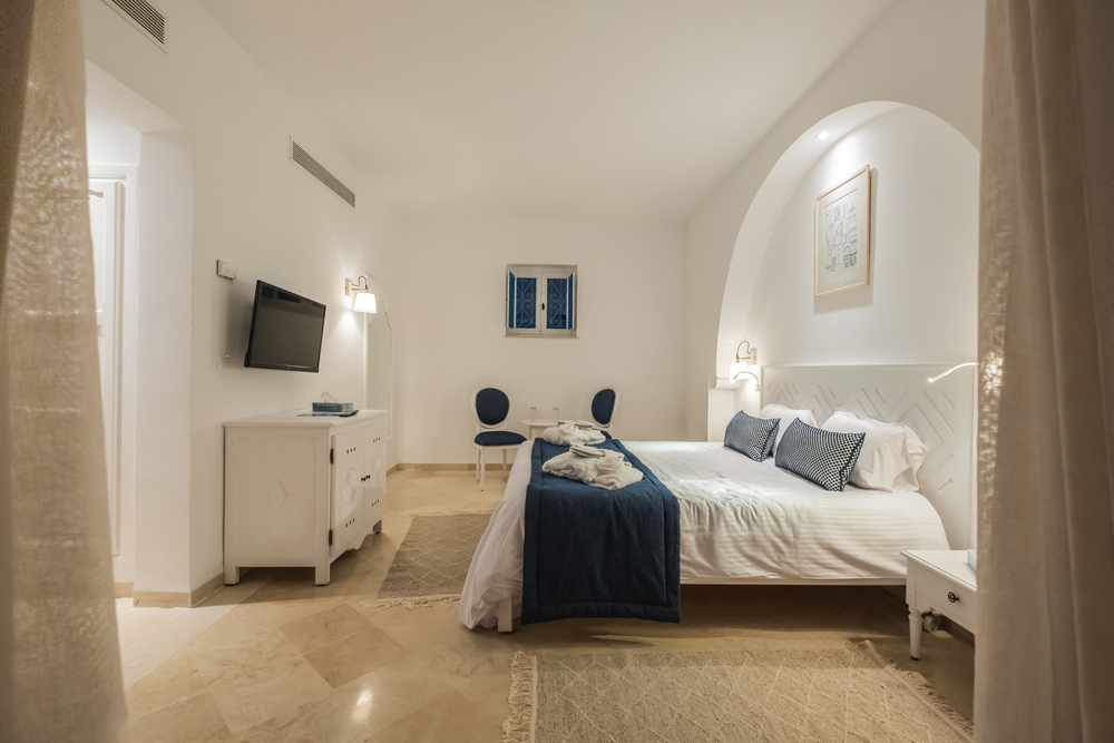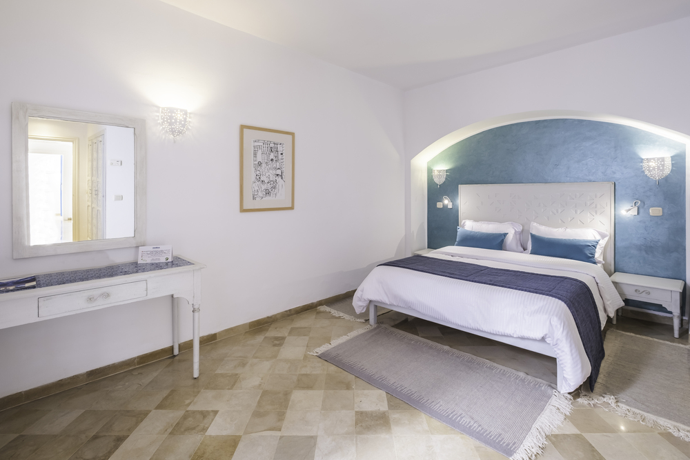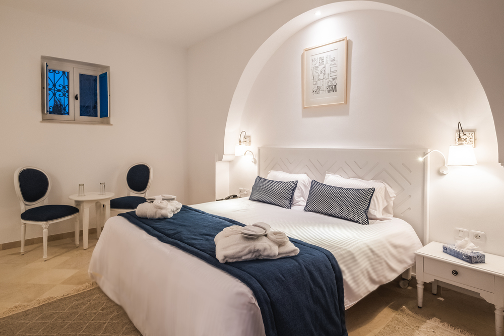 STANDARD ROOM Вид из номера: на территорию отеля Площадь номера: 18 кв.м Комментарии: расположены в корпусе Sidi Bou Said двуспальная кровать или кровати twin