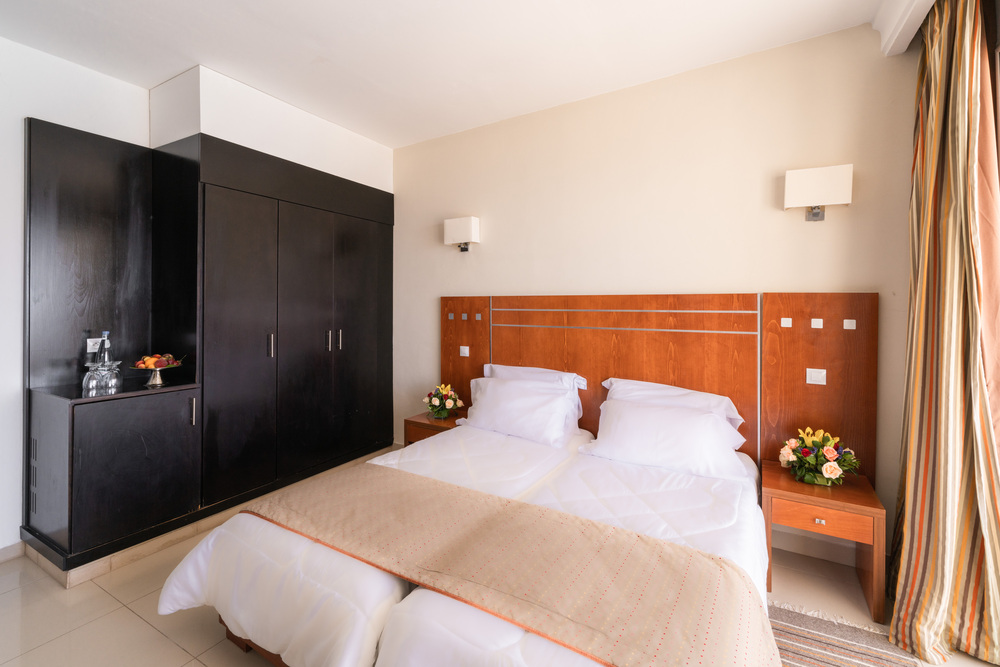 В отеле преобладают номера, оборудованные кроватями типа twin.
