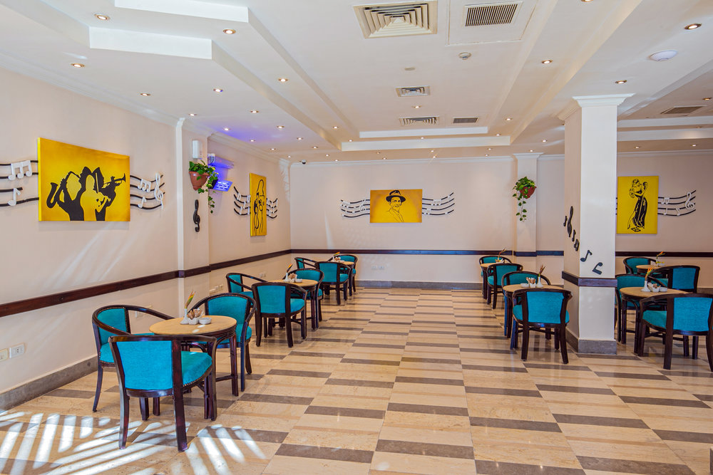 Lobby(с 09:00 до полуночи) - в лобби Jazz(с 09:00 до полуночи) - в лобби Beach (с 10:00 до 17:00) - на пляже Marina (с 10:00 до 17:00) - в Arabia Azur Resort Pool (с 12:30 до 15:00) - у бассейна Billiard Bar (с 17:00 до полуночи) - в лобби Lounge (с 17:00 до полуночи) - в лобби