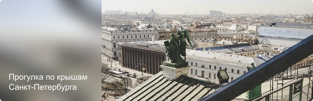 Необычный способ познакомиться с Санкт-Петербургом — отправиться на прогулку по крышам: с них город видно как на ладони. Вы сможете осмотреть достопримечательности Петербурга с высоты птичьего полета и сделать уникальные фотографии.