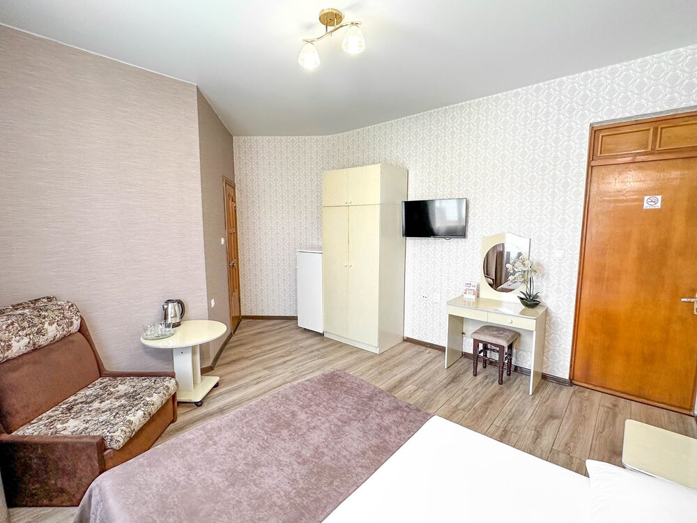 Отличное и уютное место! В номере очень уютно, огромная кровать, телевизор,холодильник, красивейшие виды из окна! Прилетели рано, в 5 утра, по правилам заселение днем, но нас приняли от души! Напоили чаем, мы оставили вещи и отправились на море!