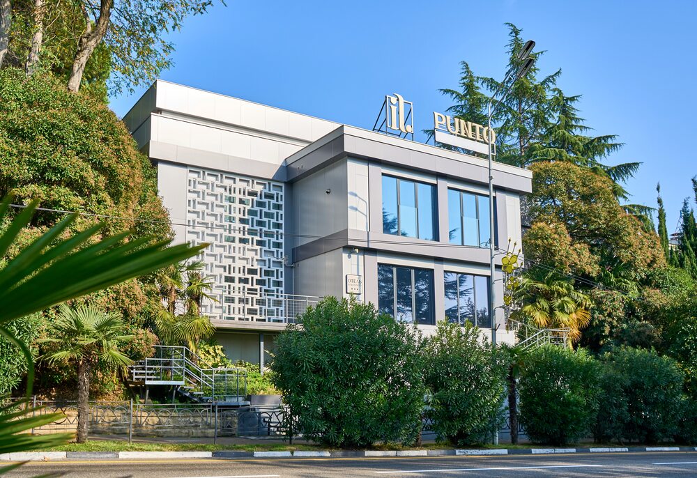 IL PUNTO - новый, комфортабельный и уютный отель, расположенный в центре Сочи, на Курортном проспекте. Это идеальное место для тех, кто хочет насладиться отдыхом в сердце курортной жизни, наслаждаясь южной природой и близостью к морю. Курортный проспект также предлагает разнообразие ресторанов, кафе, магазинов и развлекательных заведений, что делает отель прекрасным выбором как для туристов, так и для деловых гостей города. Благодаря центральному расположению, гости могут легко добраться до главных достопримечательностей Сочи: Морского вокзала, Зимнего театра, парка Дендрарий. Отель идеально подходит и для бизнес-туристов, которым важны комфорт и продуктивность, поскольку находится рядом с основными деловыми центрами и выставочными площадками города