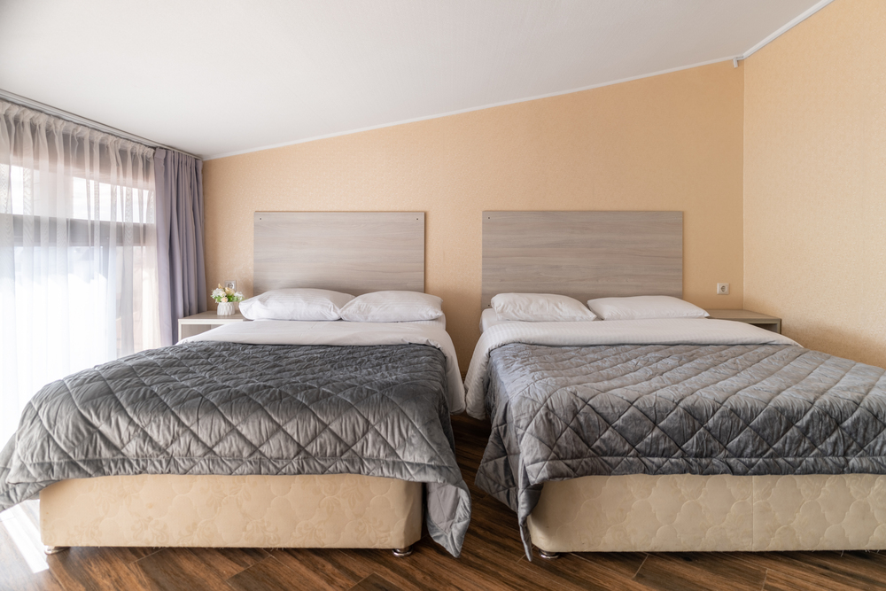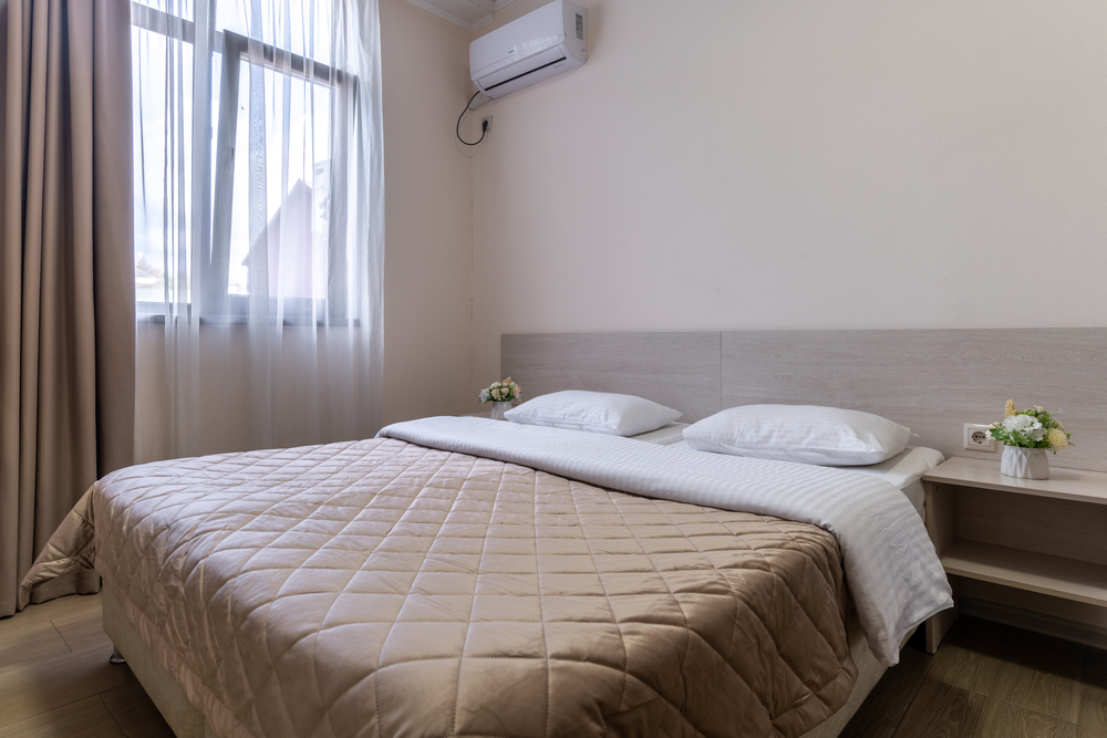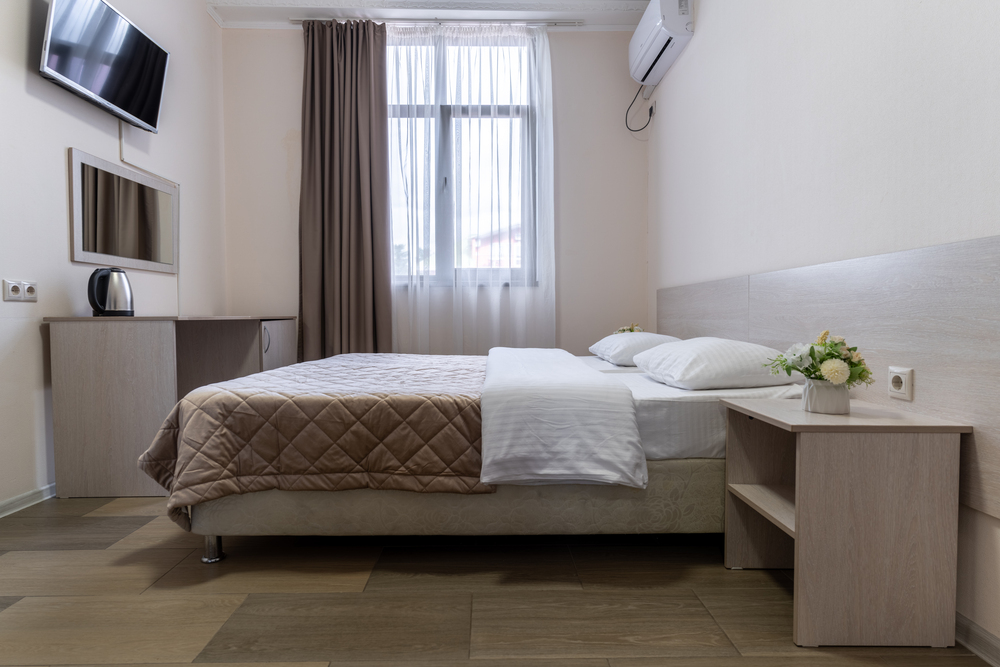 2-МЕСТН. STANDARD 12 кв.м. 1-комнатный номер оформлен в классическом стиле рассчитан до 2 гостей. В номере имеется все необходимое, включая удобную мебель, двуспальную кровать или две односпальные, кондиционер, телевизор, холодильник, Wi-Fi, фен, полотенца, набор посуды. Собственная ванная комната. Вид на город. Расположение номеров: 3-4 этаж