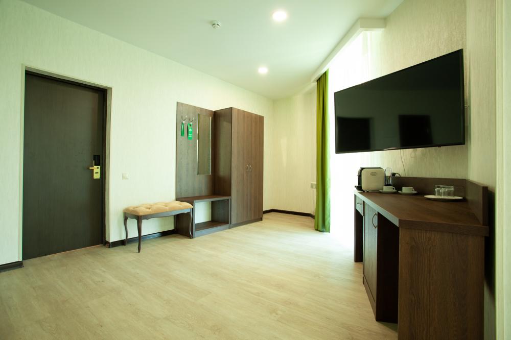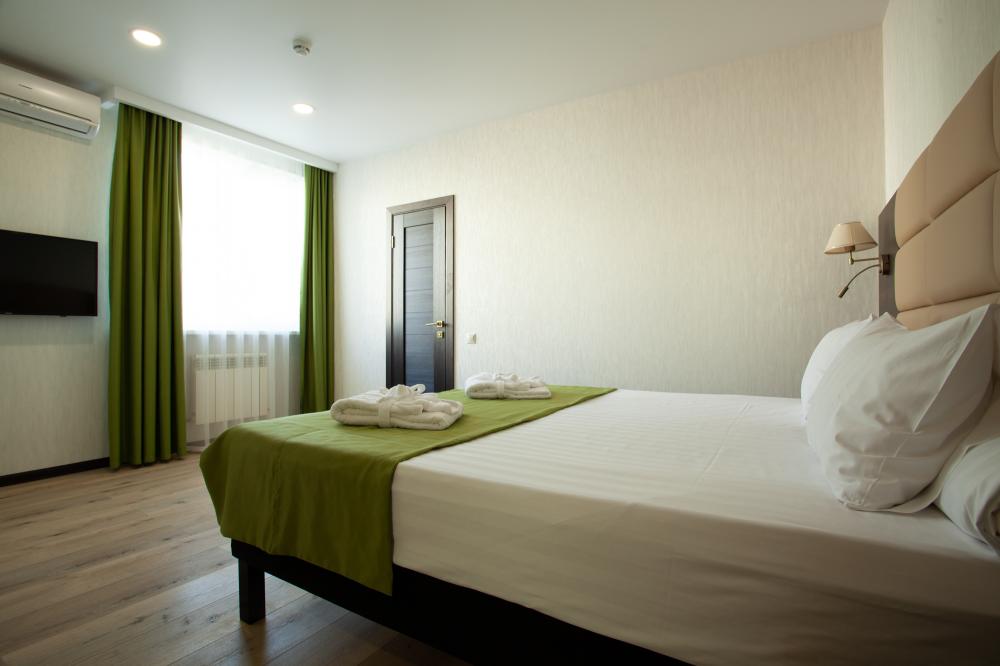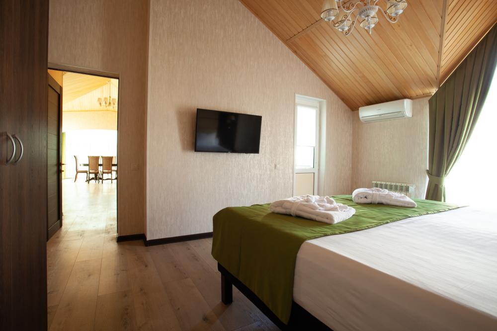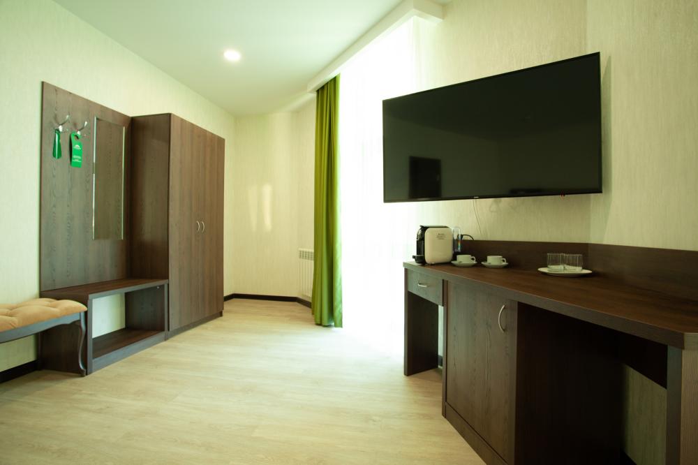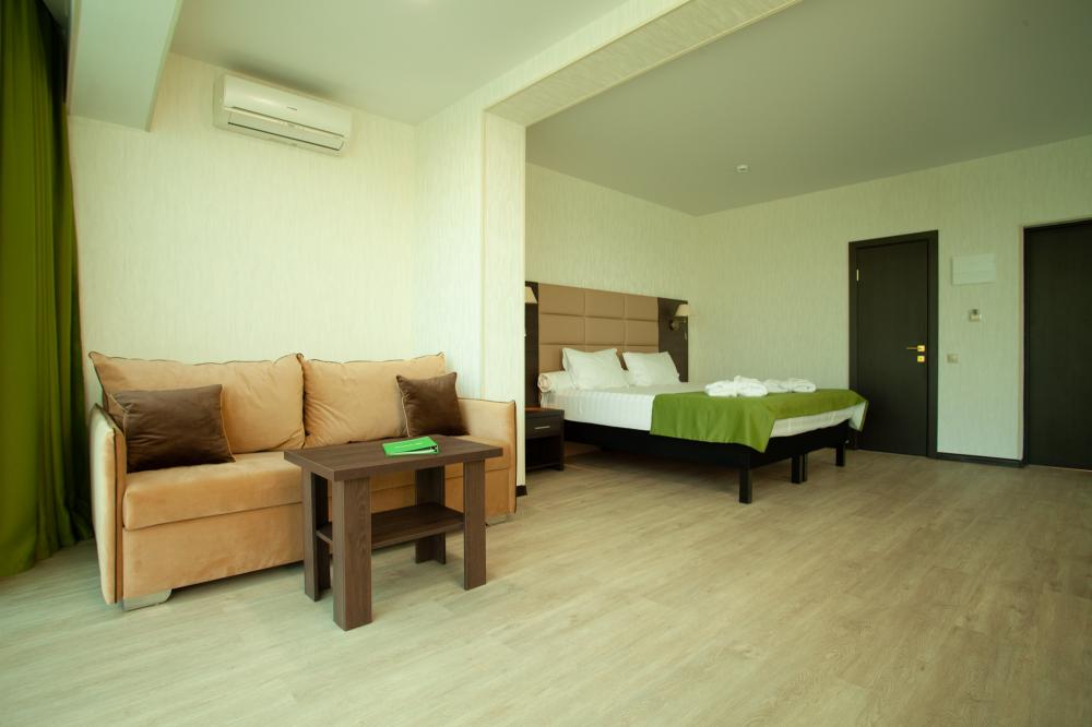 СТАНДАРТ 18 кв.м, телевизор, кондиционер, душ, фен, холодильник, сейф, 1-спальные/ 2-спальная кровать, набор посуды, вид на море/горы, балкон в части номеров). Доп. место - еврораскладушка/ кресло-кровать, могут быть установлены без ограничения по возрасту СТУДИЯ 30 кв.м, телевизор, кондиционер, душ, фен, халаты, тапочки, холодильник, кофемашина, микроволновая печь, сейф, 1-спальные/ 2-спальная кровать, чайник, набор посуды, санузел, вид на море). Доп. место - еврораскладушка/ кресло-кровать, могут быть установлены без ограничения по возрасту ЛЮКС 65 кв.м, телевизор, кондиционер, душ, фен, халаты, тапочки, холодильник, балкон, кофемашина, микроволновая печь, сейф, 1-спальные/ 2-спальная кровать, диван, обеденный стол, набор посуды, санузел, вид на море/ горы). Доп. место - еврораскладушка/ диван, могут быть установлены без ограничения по возрасту