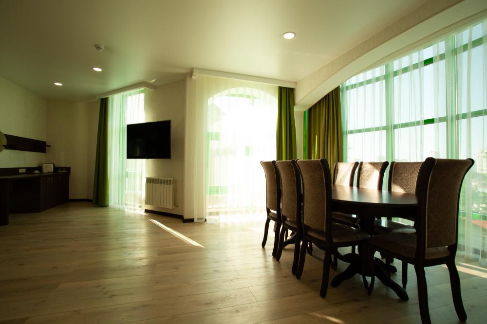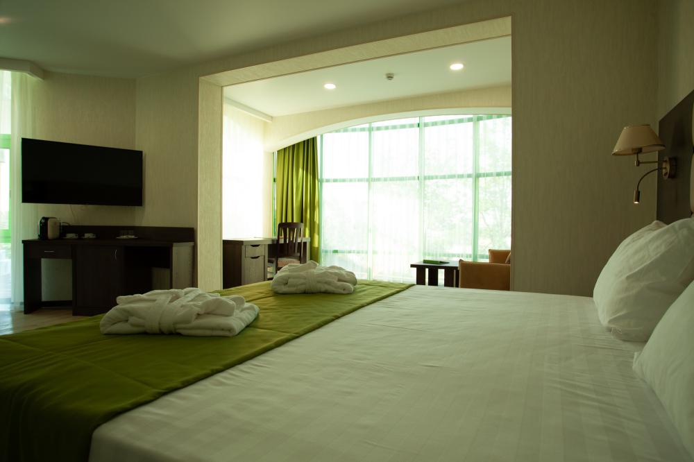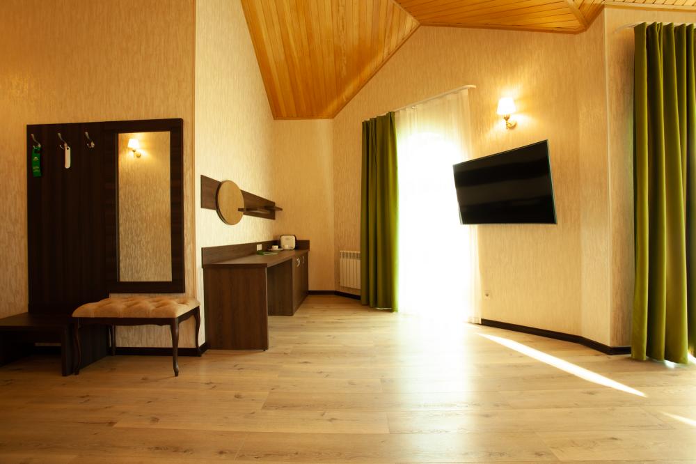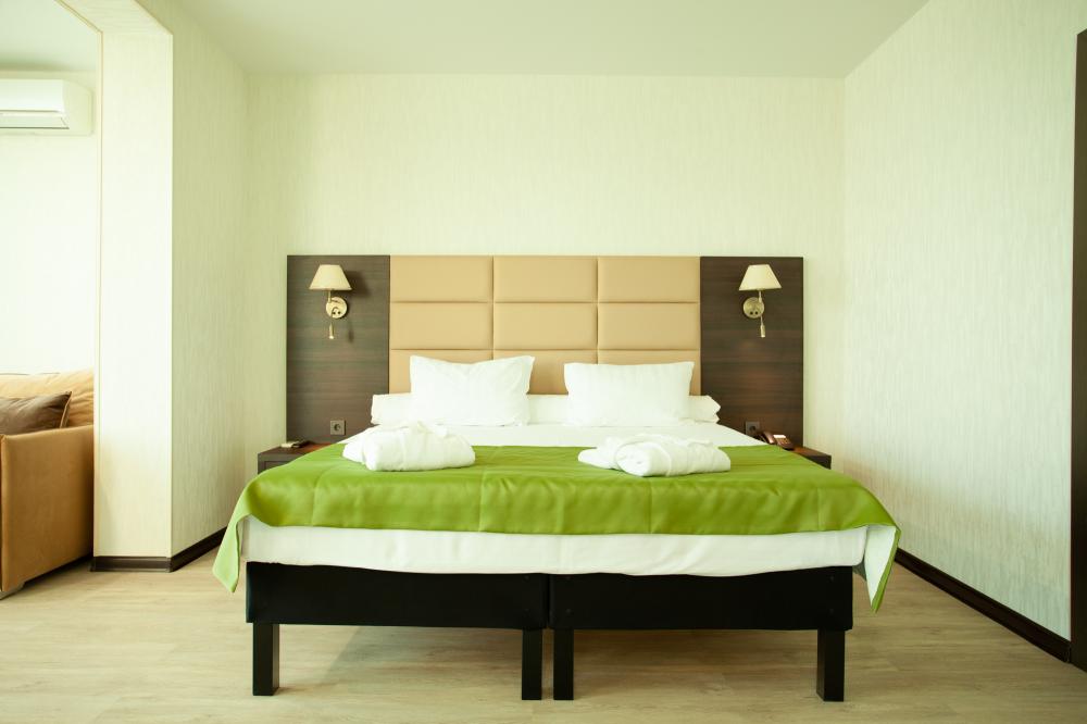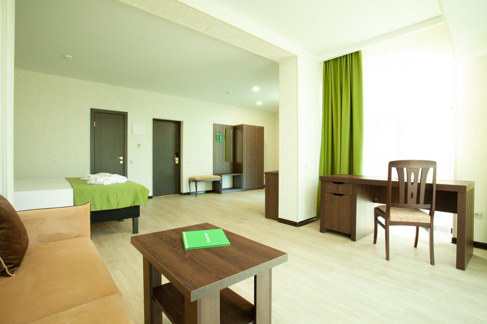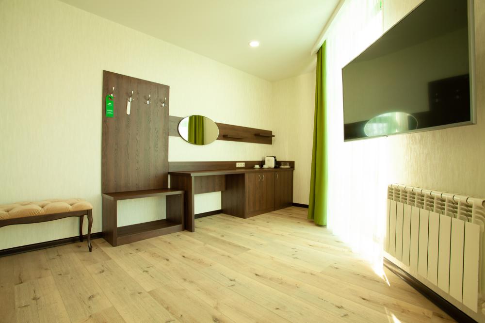 СТАНДАРТ 18 кв.м, телевизор, кондиционер, душ, фен, холодильник, сейф, 1-спальные/ 2-спальная кровать, набор посуды, вид на море/горы, балкон в части номеров). Доп. место - еврораскладушка/ кресло-кровать, могут быть установлены без ограничения по возрасту СТУДИЯ 30 кв.м, телевизор, кондиционер, душ, фен, халаты, тапочки, холодильник, кофемашина, микроволновая печь, сейф, 1-спальные/ 2-спальная кровать, чайник, набор посуды, санузел, вид на море). Доп. место - еврораскладушка/ кресло-кровать, могут быть установлены без ограничения по возрасту ЛЮКС 65 кв.м, телевизор, кондиционер, душ, фен, халаты, тапочки, холодильник, балкон, кофемашина, микроволновая печь, сейф, 1-спальные/ 2-спальная кровать, диван, обеденный стол, набор посуды, санузел, вид на море/ горы). Доп. место - еврораскладушка/ диван, могут быть установлены без ограничения по возрасту