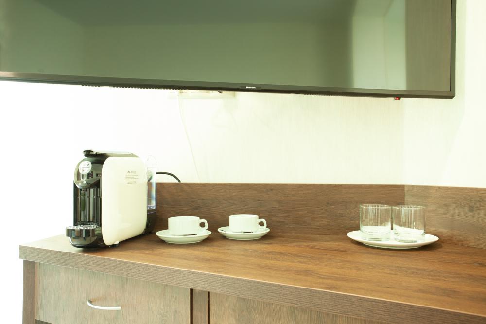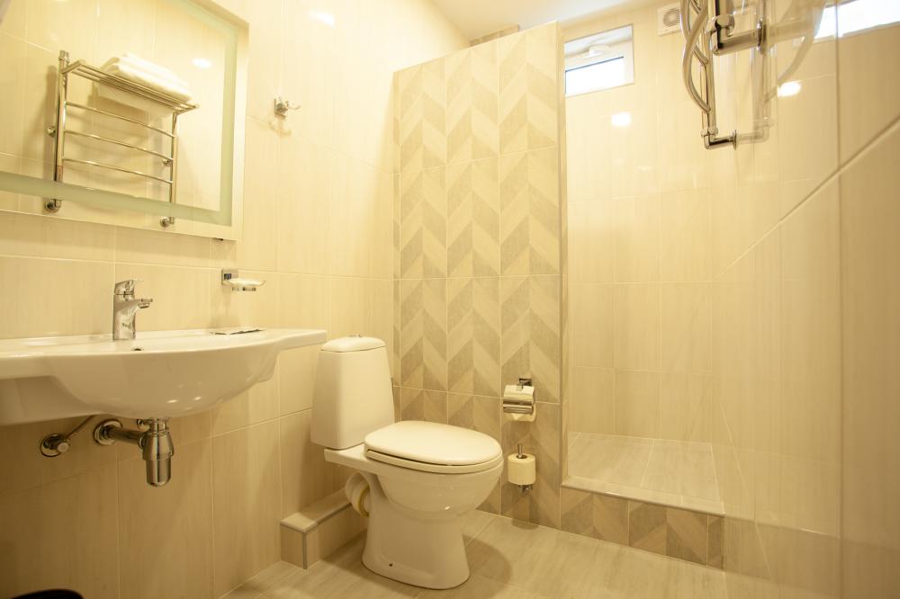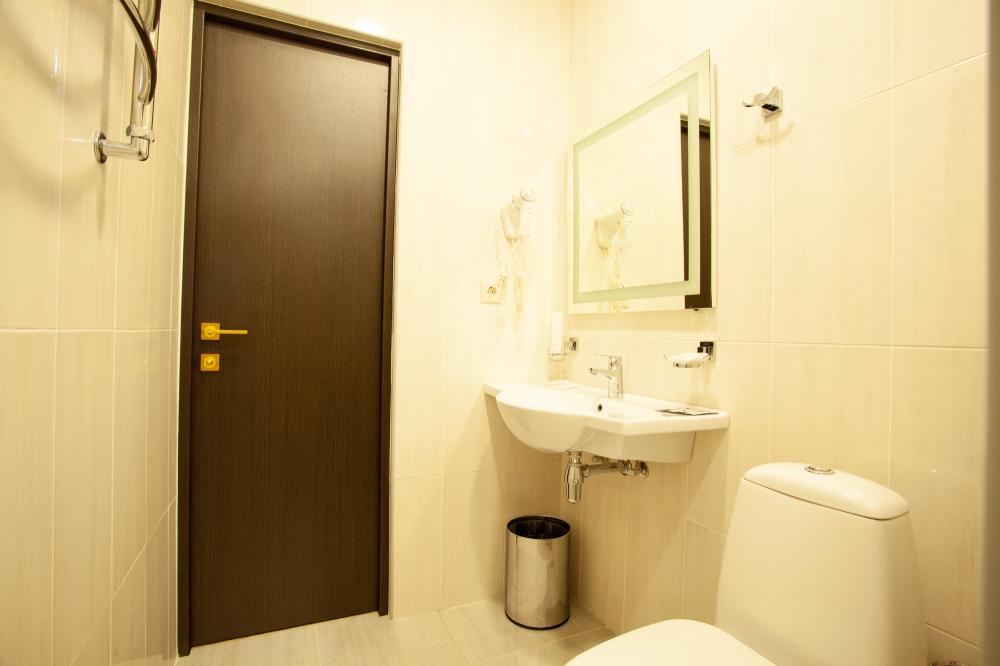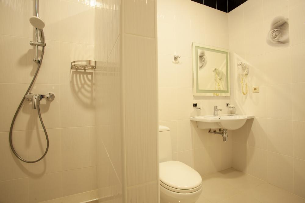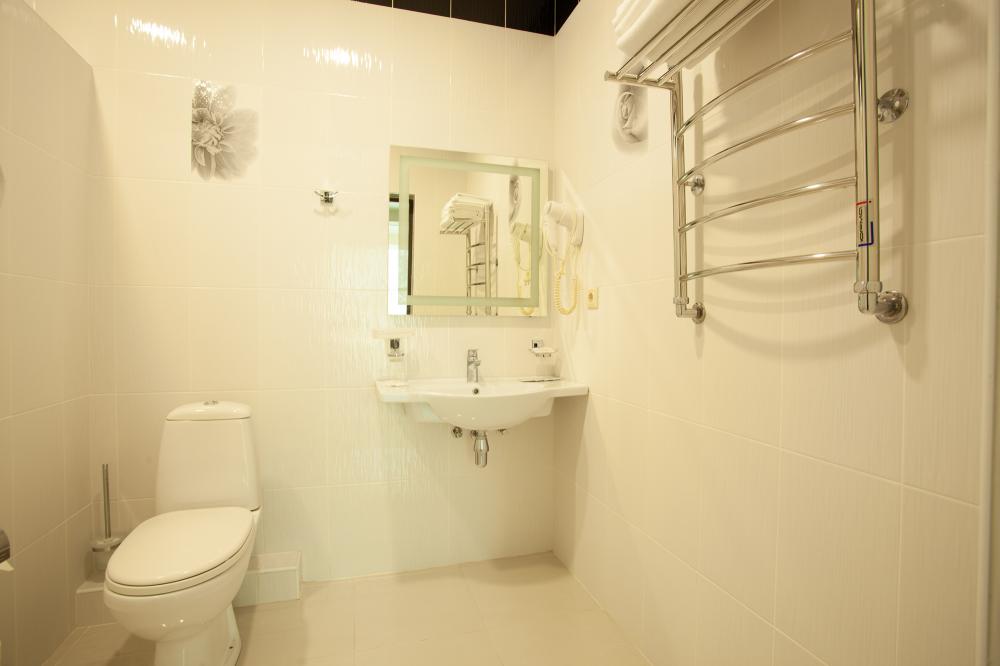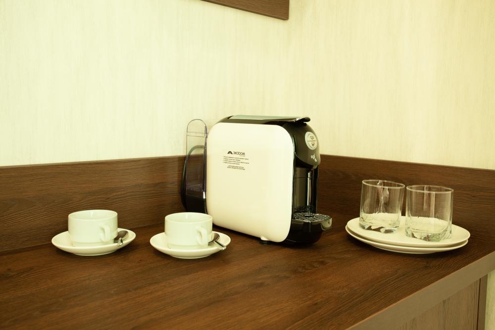 Оснащение номеров соответствуют категории. Впечатление испортили - хлорированная вода из под крана в кулере (!!!), тараканы в кафе и неприветливый персонал отеля. На завтраки яичница + каша (рисовая, манная, овсянка, гречка - по кругу). Главный минус отеля ЭКОДОМ СОЧИ - расположение. ни моря ни центра, до всего...Еще