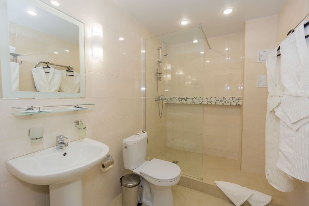душ-поддон или ванна-душ (в зависимости от корпуса), унитаз, раковина,