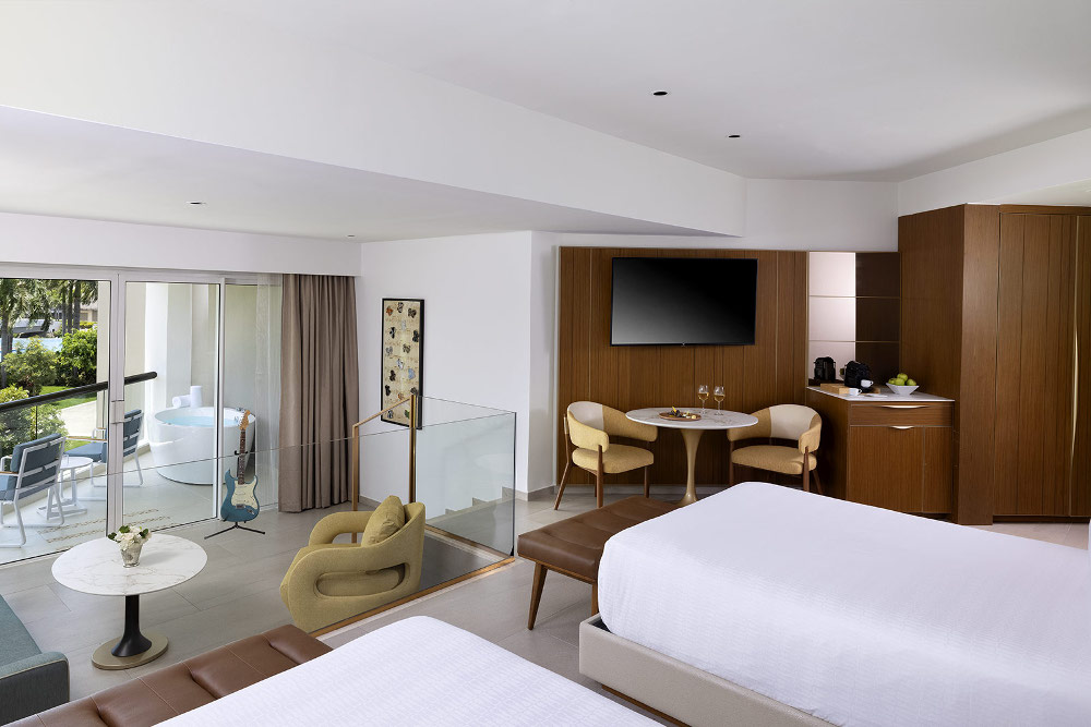 - ROCK STAR SUITE (720м2 с учётом террасы, 3 спальни, вид на океан, повышенная категория в обслуживание: услуги личного консьержа с 07:00 до 23:00, отдельная зона на пляже, отдельная зона у бассейна, подготовка джакузи дворецким, глажение одежды - 2 вещи за период проживания, массаж для двух человек, фирменная пляжная сумка, закуски в мини-баре, маска для сна, отдельная зона для check-in и check-out, выезд после 15:00 - по возможности отеля, максимальное размещение – 6 человек, включая детей 4-17 лет и инфантов 0-3 лет, данный номер расположены в здании 2A на 4 этаже);