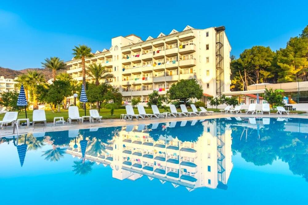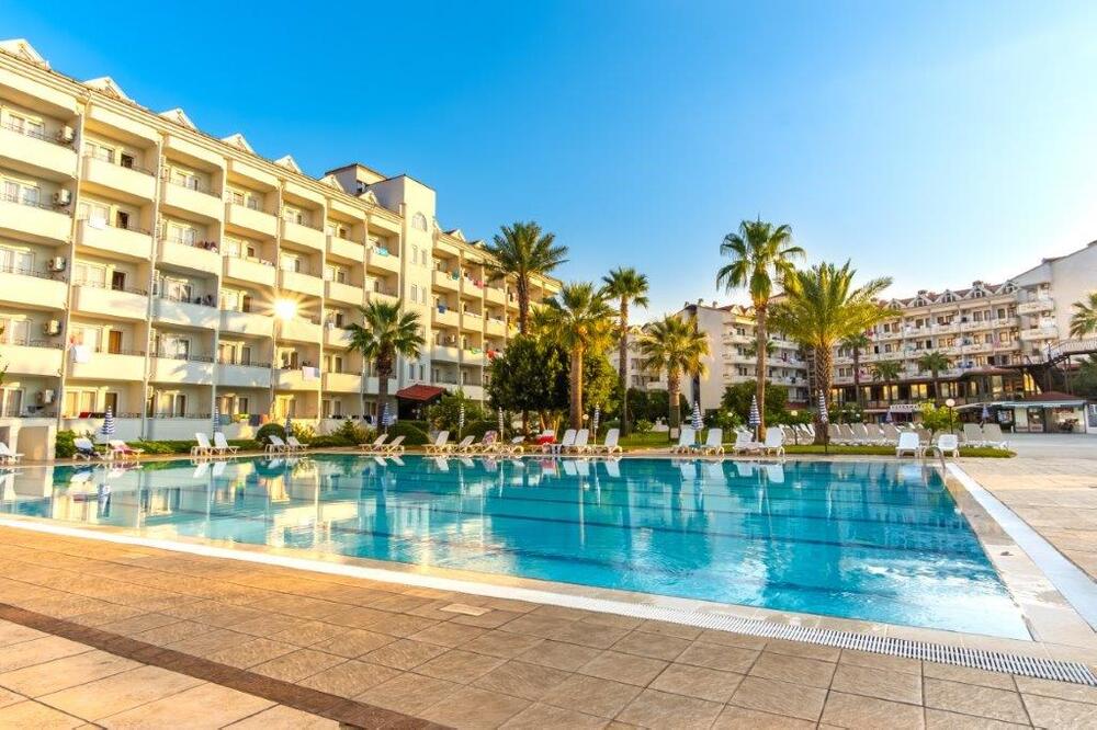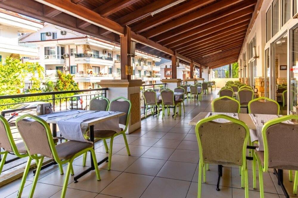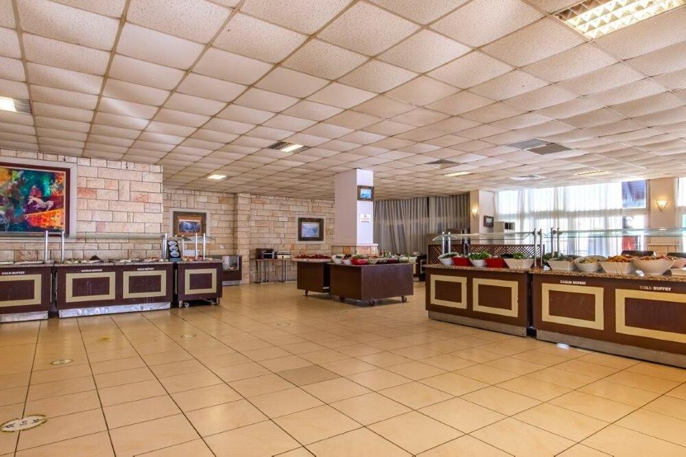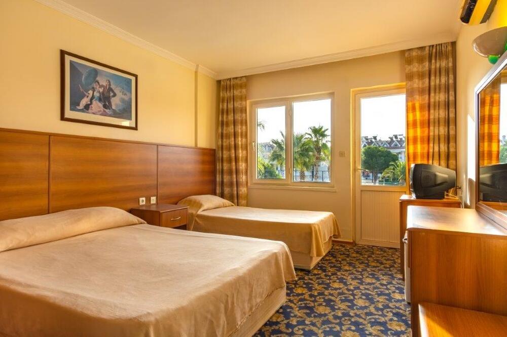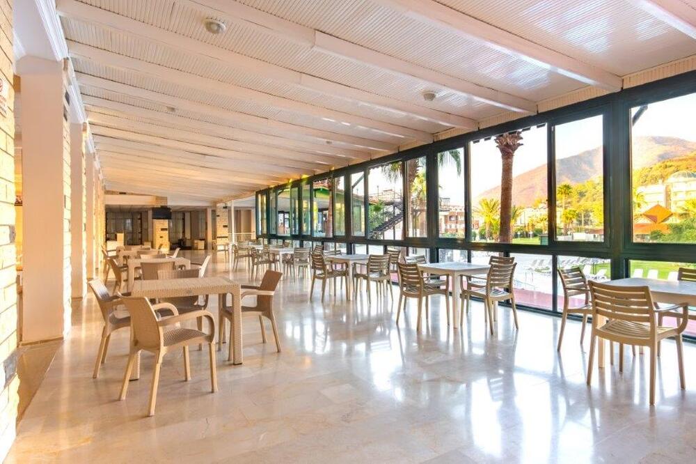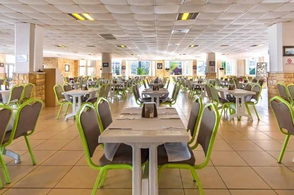 В номерах все простенько,чистенько,за 12 дней поменяли постельное белье один раз(сами повесили табличку).Полотенца кидали на пол,меняли сразу.Ресторан,просто ужас,к полу прилипаешь,скатерти заляпанные несколько дней,присутствует так же неприятный запах,да и тарелки не промыты с остатками еды.Очереди...Еще