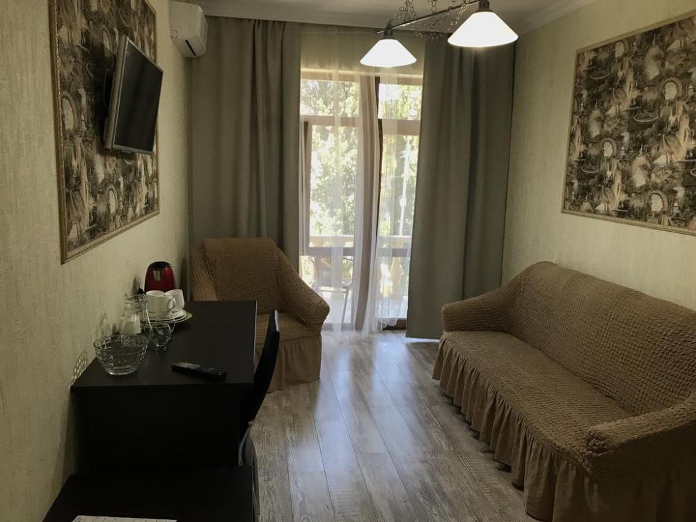 ЛЮКС 4-МЕСТН. 2-КОМН. (с балконом) 28 кв.м. Доп. место: раскладушка. Ванная комната, санузел: санузел и душ в номере. Техника: холодильник, телевизор, индивидуальный кондиционер, чайник, фен, Wi-Fi. Мебель, двуспальная кровать, диван-кровать, кресло-кровать.