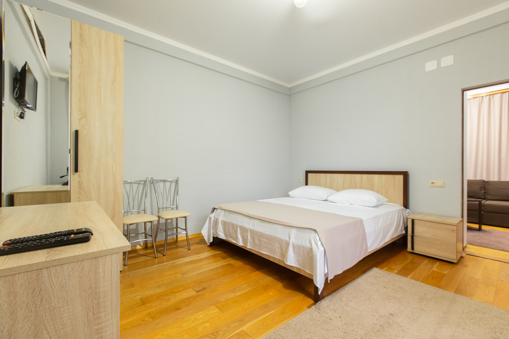 2-МЕСТ СТАНДАРТ (с балконом) 20 кв.м, кондиционер, холодильник, телевизор, wi-fi, двуспальная или две односпальные, две тумбы, шкаф, журнальный стол и стулья. Душ (полотенца, фен, зубные щетки, шампунь/кондиционер, жидкое мыло). Доп. место - еврораскладушка