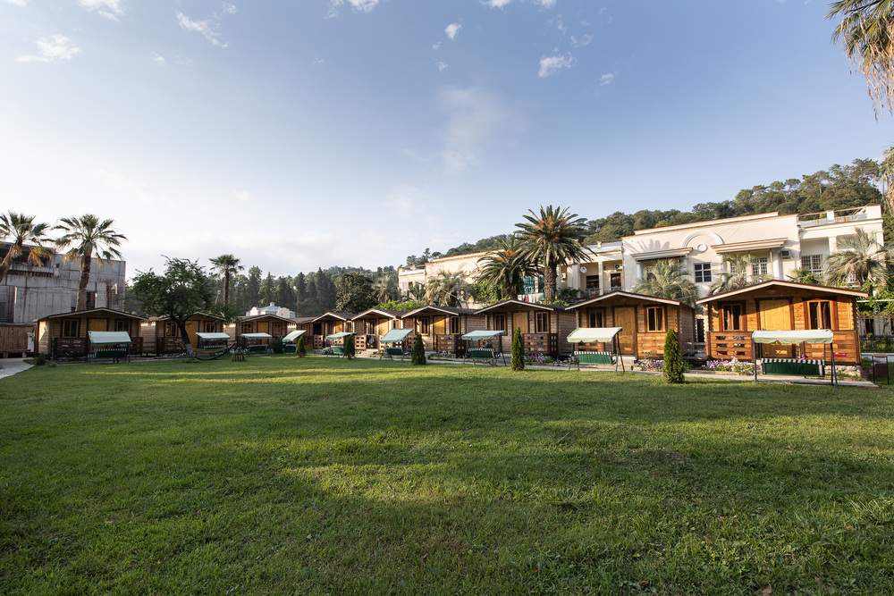 Приехали 14 июля, в данный момент находимся здесь. Нас встретили, заселили в домик. Коттеджи абсолютно новые, пахнут деревом, внутри есть холодильник, кондиционер, стол, стулья, большая кровать, но есть коттеджи и с 2-мя кроватями. Душ, туалет, телевизор, чайник, бесплатный вайфай. Море прямо рядом,...Еще