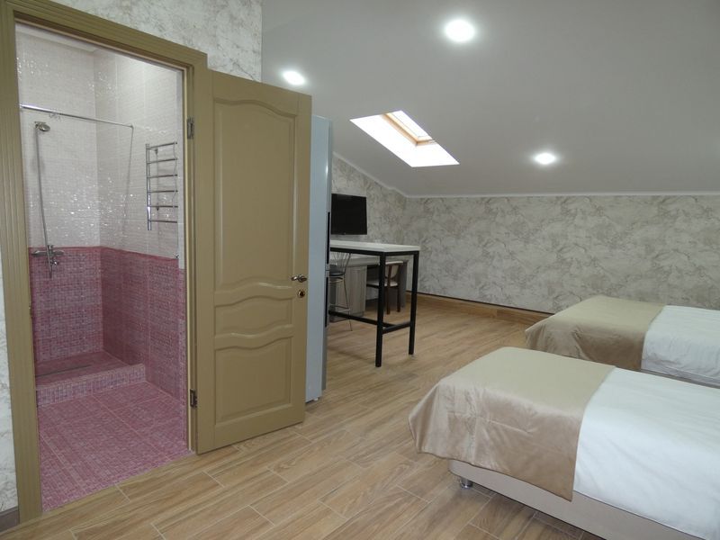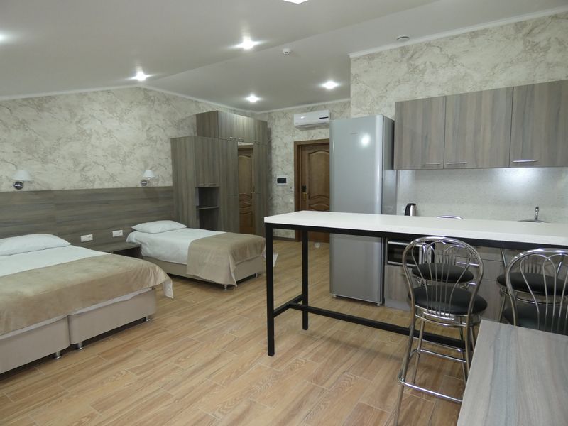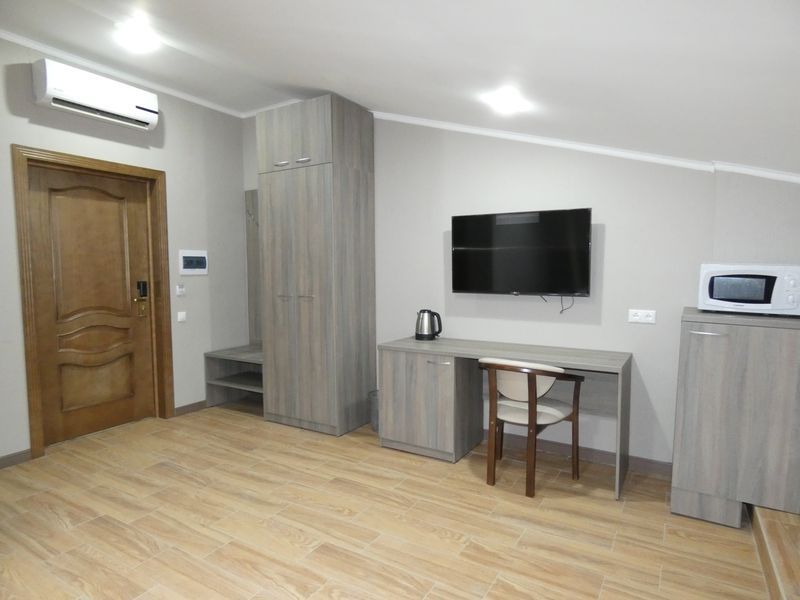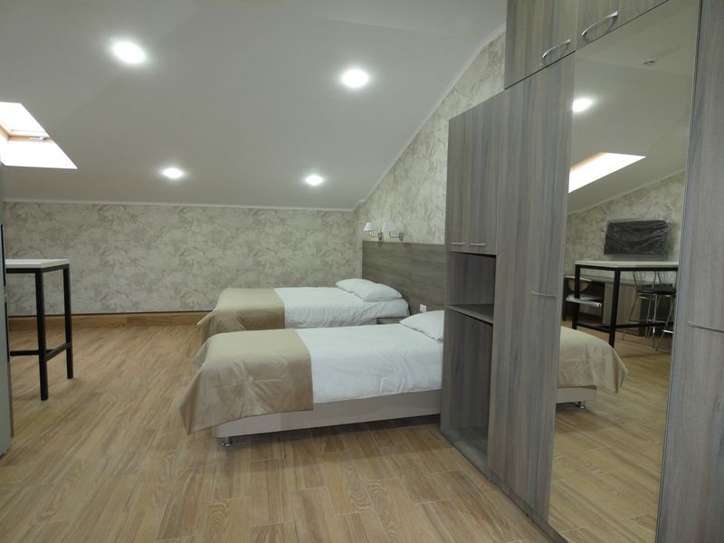 2-МЕСТН. 1-КОМН. СТАНДАРТ 24 кв.м. Номер с прихожей без балкона. В номере: двуспальная кровать, прикроватные тумбы, платяной шкаф, сейф, телевизор, туалетный столик, микроволновая печь, чайник, кухонные принадлежности, холодильник, кондиционер, интернет, фен, санузел, полотенцесушитель, водонагреватель, душ. В прихожей имеется тумба, вешалка для одежды. Номера без балкона и с мансардным окном (в потолке). Доп. место: 1 – еврораскладушка 2-МЕСТН. 1-КОМН. КОМФОРТ 30 к.м. 1-комнатный номер с прихожей и балконом. В номере: двуспальная кровать/ две односпальные кровати, прикроватные полки, трюмо с зеркалом и стулом, диван, журнальный столик, микроволновая печь, кухонные принадлежности, телевизор, сейф, сплит-система, холодильник, чайник, кондиционер, интернет, санузел, полотенцесушитель, водонагреватель, фен. В прихожей имеется тумба, вешалка для одежды, тумба для чемодана. Доп. место - еврораскладушка или диван-кровать 3-МЕСТН. АПАРТАМЕНТЫ 35 кв.м. 1-комнатный номер. В номере: двуспальная кровать и односпальная кровать/ три односпальные кровати, прикроватные полки, туалетный столик, собственная кухня, микроволновая печь, кухонные принадлежности, телевизор, сейф, холодильник, чайник, кондиционер, интернет, санузел, полотенцесушитель, водонагреватель, фен. В прихожей имеется тумба, вешалка для одежды, тумба для чемодана. Номера без балкона и с мансардным окном (в потолке). Доп. место: 1 – еврораскладушка 2-МЕСТН. ДЕЛЮКС 45 кв.м. 1-комнатный номер с прихожей и балконом. В номере: двуспальная кровать, прикроватные полки, трюмо с зеркалом и стулом, большой диван, собственная кухня, микроволновая печь, кухонные принадлежности, телевизор, сейф, холодильник, чайник, кондиционер, интернет, санузел, водонагреватель, фен. В прихожей имеется тумба, вешалка для одежды, тумба для чемодана. Доп. место: еврораскладушка или диван-кровать