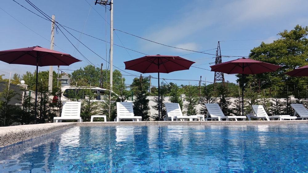 один открытый, с подогревом, с артезианской водой (10х5 кв.м глубина - 1,5 м, детский отсек - (глубина – 0, 57м),