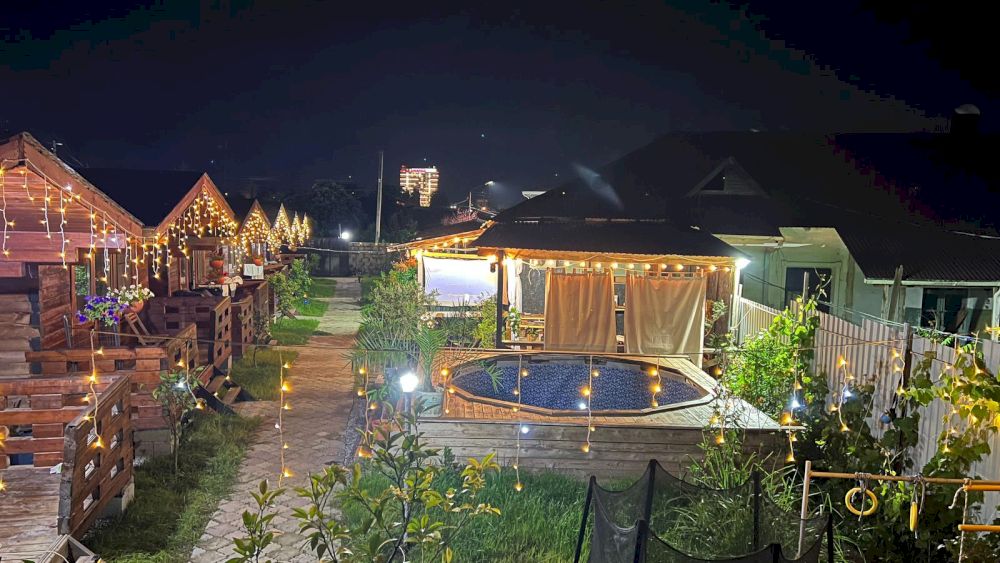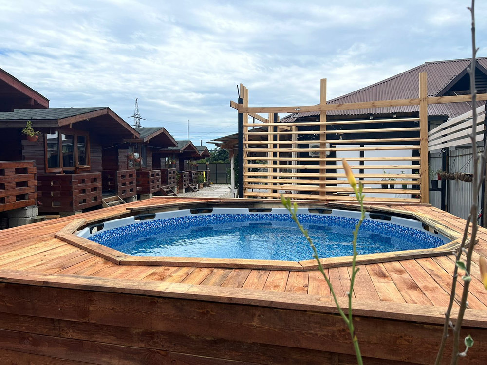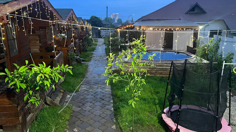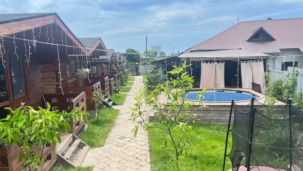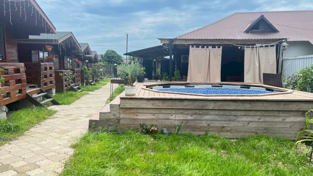 Уютные домики со своей закрытой территорией, парковкой, полностью под охраной. Расположены в г. Гудаута, недалеко жд вокзала. На территории расположены коттеджи, много зелени, лавочки, зона барбекю, уличный кинотеатр (проектор), зона для курения, кальян, каркасный круглый бассейн 6 м и глубиной 110 см. Завтрак включен в стоимость, имеется общая открытая кухня, общая стиральная машинка, общий большой холодильник, холодильник с холодными напитками, вино, шампанское. Рядом имеются магазины, кафе. При необходимости доступен трансфер, а также экскурсии: знаменитый сероводородный источник в нескольких километрах, царское село Лыхны, озеро Рица, Афон