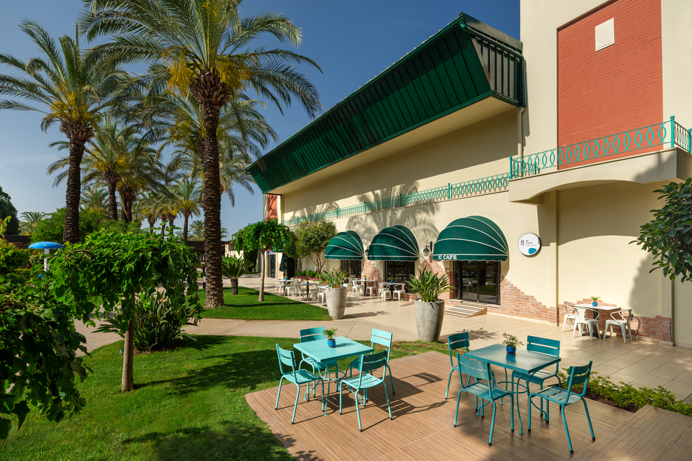 Вид из номера: на бассейн, на сад