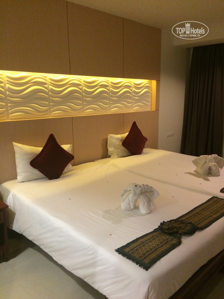 Отдыхали с мужем в январе 2015. Сразу начну с оценки: отель достойный! Размещение: приехали вечером в 10, разместили нас сразу и быстро. Персонал по- русски не понимает вообще, так что готовьтесь объяснять все на английском. Нам там вообще русско понимающие редко встречались. Заселили в очень хорошем номере 3103 в третьем корпусе от дороги на 3 этаже. В путевках был вид на сад, но по факту был отличный вид на море, сквозь сад! Мы были очень довольны. В номере нежарко из- за пальм и деревьев, кондер включали редко. Никакой живности не было, ни комаров, ни мух и прочих. Номер большой и красивый, бесплатный сейф, wifi, кофе, чай, сливки и сахар и две небольшие бутылки с водой приносили каждый день. Есть фен, шампунь, жидкое мыло и очень ароматный лосьон для тела. В отеле два бассейна, в одном из них джакузи, в другом- детский бассейн и бар. Территория большая и зеленая, красивая. Отовсюду видно море. Единственное- отель на горе и расположен так, что пока до номера доберешься, много ступенек пройдешь. Но нам не в тягость- спорт))) Сразу говорю- отель на второй линии через дорогу! На первой стоит отель re kata. Но идти на пляж всего минуты , близко. Это на пляж ката. Пляж уютный, красивый, чистый. Море обалденное, чистейшее, песок мелкий светлый. Напротив пляжа в море остров. А вот если идти налево от отеля минут 10, придете на пляж ката ной. Там вообще рай! Красивейшее место, только там волны. В общем, мы с мужем на мопедах все пляжи объехали потом, наши ката и ката ной- самые лучшие. Да нам и гид так сказал! Питание. В отеле завтраки понравились. Было все нужное и необходимое. Многие тут пишут, что выбор небольшой, так хотела бы я посмотреть , что ж там на завтрак они дома едят, раз им тут мало??? Были: яйца, яичница, омлет, отдельно готовились местные супчики там. Фрукты: арбузы, дыня, ананас, папайя. Сосиски, бекон, картошка, рис, куриный и свиной бульон, мясо, рыба, макароны, йогурты, тосты, оладьи, овощи свежие и запеченные, хлопья, булочки- что еще надо?????? Ну если только фреш соков не было. Обедали в кафе на пляже Ката мама. Самое нормальное по ценам место. Обошли сначала и изучили все цены в кафешках. В итоге обедали только там. Супчик том ям местный 150 бат, суп с лапшой и морепродуктами 90 бат, рис или лапша с морепродуктами 70 бат. Пиво 60 бат. ( на наши деньги умножайте на два). Да... Всвязи с курсом бакса для нас Тай теперь не такой дешевый, как был. Но в других кафе все от 100 бат и больше. Направо рядом с отелем хорошая фруктовая лавка. Сочный сладкий манго почистят, нарежут, вилочки дадут 40 бат. Там же брали вкуснейшие блинчики банановые- пальчики оближешь!!! Все необходимое покупали в магазинах family mart и 7 eleven. Они самые дешевые. Там же брали алкоголь. Он дорогой. Бутылка самого дешевого вина 299 бат. Но в кафе вино по бокалам 150. Так что лучше в магазине брать бутылку. С ней ходили в рестораны на ужин. Не все разрешают приносить с собой, но во многих местах разрешают, еще лед и бокалы принесут. Можно просто договориться. Ужинали чаще в кафе как выходишь направо на стороне отеля метров 300. Не помню названия, к сожалению. Они вечером на улице во льду морепродукты выставляют. Доброжелательный персонал и по ценам нормальный. Плюс у них бесплатный салат- бар. Но это не outdors- не он! О нем многие пишут, но там подороже еда. Досуг. Брали мопед на три дня. Обошлось недорого. Три дня+ заправка полного бака обошлось в 900 б