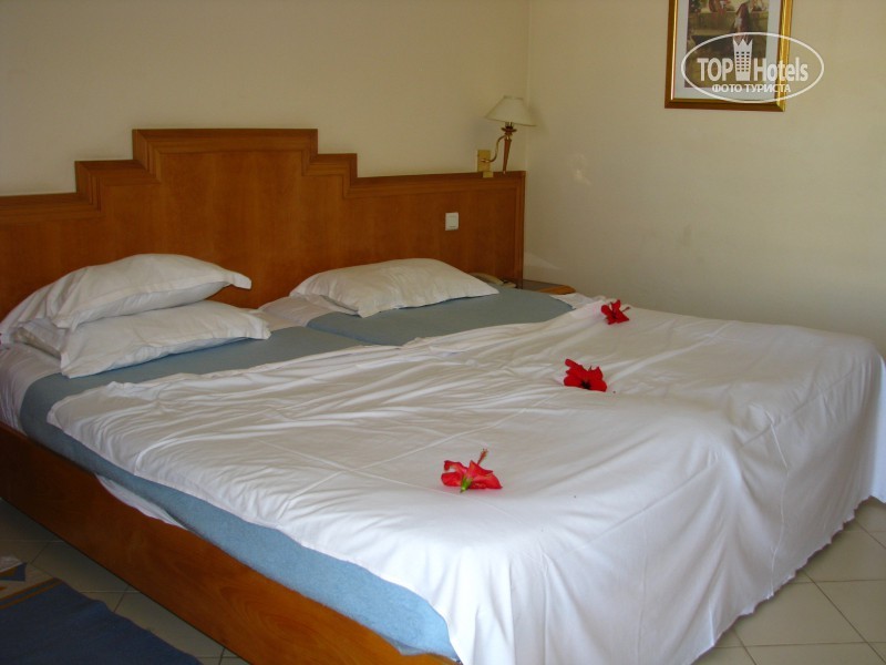 Выбрали Тунис из-за заканчивающихся сроков загранпаспортов. Вылет из Волгограда (а/к Оренэйр), на 10 дней. Прилёт в Монастир, оттуда автобусом до Хаммамета. В который раз убеждаюсь, что надо выбирать отели, наиболее приближённые к аэропорту. Дорога отнимает много времени, и это особенно неприятно после (или до) перелёта. Отель имеет общую территорию с 5* El Mouradi Hammamet. Приехали в отель около 23:30, приветливые товарищи на reseption сразу проводили в номер. Первый шок- номер ужасный. Создалось впечатление, что в нем кантуется прислуга, которая задерживается на работе и не идёт ночевать домой. Жуткая сырость, ободранные стены, коврик на полу, как у собачки в конуре, а под окном, выходящим на площадь за отелем - вентиляционные шахты, издающие звук, похожий на гул самолёта. А еще в этот день был какой-то местный праздник, в связи с чем на площади пол-ночи орали песни местные жители. Кое-как переночевали, утром на reseption. Зажав в кулаке 20 -евровую бумажку, обращаюсь к портье - поменяйте номер, please. Тут же дают ключи от комфортабельного (сравнительно) номера в центральной части корпуса, с видом на бассейн. Бассейн и море. Море через дорогу, но это полбеды. Дело в том, что выход на эту дорогу только через центральный холл. Получается, что когда ты идешь назад с пляжа, то проходишь весь мокрый через "культурную" зону, оставляя лужицы на коврах перед reseption. На пляже другая беда - отсутствие душа. Идти в душ надо на территорию 5*, это недалеко, но неудобно. Душ ужасный, убираются только утром, к вечеру завален песком и средствами гигиены (б/у). Забыл там очки, естественно пропали безвестно. Море чистым было пару раз и то только ранним утром. Всё остальное время - водоросли, представляющие собой мелкодисперсную взвесь, которая с трудом вымывается из плавательных костюмов. Бассейны: с морской водой:)и пресный. Морская вода достигается следующим образом (видел лично ранним утром): работник отеля, аки сеятель ходит по краю бассейна и горстями разбрасывает соль (возможно морскую).Какое количество соли,в какой пропорции попадает в воду - одному Аллаху известно. С шезлонгами и полотенцами просто беда. Каждое утро приходилось выходить всё раньше и раньше, чтобы занять место под солнцем. В последний день занятые шезлонги были перезаняты англичанками,нагло убравшими наши полотенца на соседний стул, которые искренне удивились, что я их занял в 6 утра. Питание - обычное для подобного отдыха. Следует отметить, что столики обслуживаются официантами, которых надо заинтересовать (как и всех в этом отеле). В противном случае, можно долго ждать напитки и приборы. К столу подают вино, разливая по фужерам, но если подружиться с официантом можно брать бутылку - мы так и сделали. Наш официант был единственным приятным человеком в отеле, мы с ним очень подружились. Бар по сути один - только в центральном холле, поэтому за напитками, как правило, выстраивается очередь. Экскурсии. Ездили в Карфаген. Не повторяйте нашу ошибку. В 50-градусную жару лазить по древним руинам удовольствие не из лучших. Плюс гид, который по русски ни слова не знал. В столице, г. Тунис, ничего особенного тоже нет. Самостоятельно на такси ездили в Хаммамет, посещали Старую медину. Полная чушь - на самом деле это рынок, на котором как в Египте все дёргают, зазывая в магазинчики с сомнительным товаром. В общем отдых получился неудовлетвор