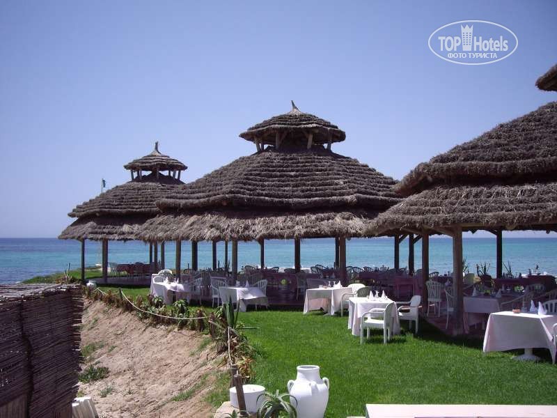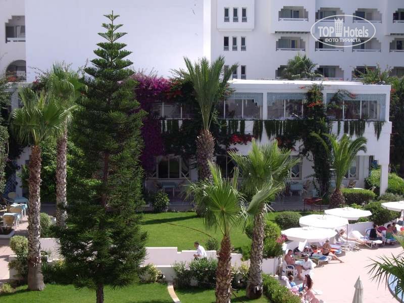 Отель находится в далеко неоживленном районе Хаммамета. Тихо-спокойно. 90% контингента - пенсионеры французской и немецкой национальности. В первые дни вообще думала, что попала в дом престарелых. К старикам отношусь положительно, но как-то неловко было выделяться из толпы (мне 26)...Потом народу в отеле прибавилось, появилось много семей с детьми и пар...Нормальный народ...Иностранцев больше, чем русских. В основном французы, много немцев, немного англичан и португальцев...ну и наших немного....даже несколько арабских семей отдыхало.... Отель весьма потрепанный,единственное на что они раззорились - это холл, мрамора не пожалели, остальные части отеля весьма скромные. На этаже в коридоре запах застарелого общежития....но на вид чисто...В номере мебель нормальная, но весьма обшарпанная. В ванной старая сантехника, краны очень :))) б/у на вид, от унитаза вообще в шоке была...доисторический и с жуткими разводами на сиденье :))) Правда горничные нормально убирались, вовремя, аккуратно. Мы оставляли по 1-2 динара. Так же и офицанту после каждого ужина. Еда хорошая, нормальный выбор на завтрак, хороший выбор на ужин. Помимо шведского стола в ресторане стойка с плитой, где на завтрак повар при вас готовит омлет (с наполнением по вашему выбору) и блинчики (тоже начинку сладкую выбираешь: джем, мед, шоколад); на ужин там тоже можно выбрать и повар при тебе пожарит мясо или рыбу на гриле... Очень вкусный майонез у них (во все салаты добавляла) Вообще у них много всякой рыбешки морской, пару раз давали мидии в ракушках, креветки... Выпечки много, пирожные-тортики вкусненькие, много фруктов (в основном давали персики, сливы,финики, иногда сырой инжир, яблоки, 1 раз черешню), 2-3 вида мороженого... Кофе средней паршивости на завтрак....на ужин чай-кофе не попьешь - выбираешь или вино-пиво-минералка или кола, а хочешь чаю, кофе или сок - чеши в лобби бар или еще куда... :( Территория самого Роял Азура небольшая, бассейн маленький и прохладный...а вот прошли по территории Бел Азура - там просто чудо....все зеленое, море цветов, пальм, оливковых и инжировых деревьев, милые бунгало с видом на море, детская площадка с качелями. Пляж в Бел Азуре более оживленный и с развлечениями (катамаран, банан, водный мотоцикл)....в Рояле ничего нет тихо-чинно-благородно...Бассейн в Беле тоже небольшой, но вокруг роскошные деревья...В Сол Азуре самый большой бассейн, пляж нормальный (впрочем все три пляжа примерно одинаковые)...и огромные алое растут :) Первый паз придя на наш пляж в Рояле столкнулись с тем, что пляжным мальчикам на все пох... (мы сразу приготовились платить чаевые, почитав предыдущие отзывы)...через какое-то время они все же выделили нам по лежаку...Пляжный мальчик позже нам объяснил, что надо рано с утра приходить и занимать (хотя больше половины лежаков он занимает сам, раскладывая на них свои вещи....и позже, когда подтягиваются хлебные клиенты, он указывает на какие "его" лежаки вы можете лечь, отряхивает их, дает полотенца (конечно за 1-5 динар)...бизнес развели, сцуки :))) В море лезут немногие, холодное очень (может просто в июне не сезон?), постоянно прохладный бриз с моря, так что если искупнешься - быстро задубеешь под тентом...хотя если на солнышке, да еще и в середине дня. то нормально, правда сгореть можно моментально...Хотя к нашему отъезду потеплело-распогодилось... Море красивое - от бирюзового до 