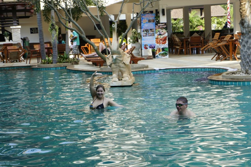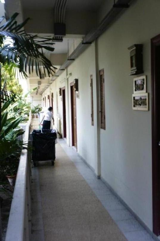Сервис персонала в отеле вполне соответствует тайским трем звездам.Уборка номеров своевременная, администрация толковая (на русском говорят плохо, но на просьбы откликаются сразу), распорядок устроен четко, все ясно, понятно, удобно.Сейф с электронным замком на ресепшене бесплатный (обычно его берут в день заселения). Депозит при вселении составляет 1000 баттов, если до конца отдыха ничего не разобъешь, не сломаешь, не выпьешь из мини-бара, то его возвращают в полном размере. При собственном доброжелательном отношении тайцы часто в ответ дарят улыбки, открывают двери, пытаются услужить. Русских туристов в отеле большинство, тоже при случае могут подсказать-помочь. Китайцев немного, на выходные их становиться больше, как и тайских семей с детьми.