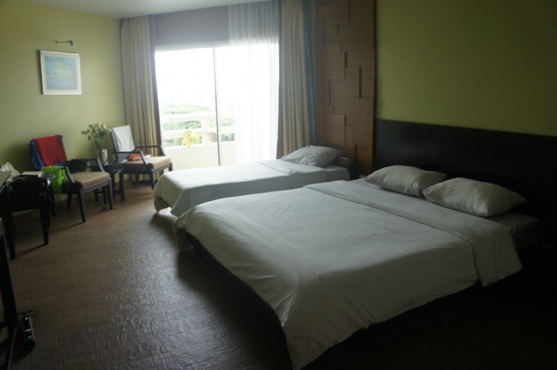 Начитавшись отзывов и советов турагентов, мы взяли номер суперриор в основном корпусе (номер комнаты 7007). И правильно сделали! Потом от многих отдыхающих в других корпусах слышали жалобы на плохие номера. Особенно страдали проживающие в корпусе Б - женщина с 5-летней девочкой (туристы из Иркутска) попали в больницу из-за сильной аллергии от укусов клопов! Ужас! У нас такого и близко не было! Вообще никакой живности (даже пресловутых и вездесущих муравьев) в номере не наблюдалось. Номер просторный, квадратов 30, с небольшим балконом, с которого можно увидеть море. Однако перед окнами - крыши корпуса Б и какого-то хозздания. Дальше - дикий сад с поющими целыми утрами и днями птахами. Приятные звуки! Уж лучше, чем шум от дороги.В номере - две кровати (полуторка и просто огромная двухспальная), столик, два кресла, плательный шкаф с тумбой внутри, тумба для обуви, шкаф с холодильником (мини-бар), длинная тумба-стол под телевизор и всякие мелочи, зеркало, прикроватные тумбочки, две настольные лампы, кондиционер. Чайника и фена нет! На каждого человека положен комплект полотенец - ручное, ванное и пляжное- меняют каждый день ив любое время у горничной по личной просьбе (мы один раз за день трижды пляжные полотенца меняли, поскольку три раза купались в море и бассейнах!). И еще - каждый день горничная приносит бесплатные бутылки воды (на человека - 1 штука). Не уносите их из номера и не выбрасывайте. В Тайланде стекло дорогое, они его меняют на новое, потому: вода в отеле бесплатная, а за бутылки в случае их невозврата придется заплатить! По ТВ -есть три русскоязычных канала, в основном крутят новости, фильмы и рекламу по квартирам в Паттайе и экскурсиям. Кондиционер без пульта (что немного неудобно), работает нормально, но протекает, капает с потолка на пол - это обычное явление для тайских трехзвездочных отелей. Можете сказать об этом горничной или на ресепшене, но толк вряд ли будет. В нашем случае заклеили течь на потолке скотчем! Так и продолжало капать, мы как-то не напрягались по этому поводу, горничная принесла еще одно полотенце, его и подстелили, а сверху поставили бутылку для сбора воды. К концу вообще не замечали этот "дождь". Про уборку. Она каждодневная, немного поверхностная, но достаточная, чтобы номер выглядел чистым и свежим. Постельное белье меняют раз в три дня, полотенца - каждый день, докладывают туалетную бумагу, туалетные принадлежности (гели, шампуни). Мы иногда вешали на дверь табличку отказа от уборки (красной стороной), когда в номере и так было чисто (поскольку мы целый день перед этим отсутствовали и просто не успели чем-то намусорить). Часто оставляли на постели для горничной чаевые в размере 20 баттов - считаю это страховкой от того,чтобы во время вашего отсутствия в номере ничего из него не пропало и не было намерено испорчено, чтобы потом потребовать от вас оплатить ущерб (это Азия, и такое,судя по отзывам других туристов, здесь случается нередко). По крайней мере, мне всегда это гарантировало хорошие отношения с персоналом, нормальное обслуживание номера и беспроблемную процедуру выселения. Пару слов про санузел - нормальный, с ванной, без излишеств и лоска. Места достаточно, душ неудобный (как в большинстве местных отелей), вода горячая и холодная всегда в наличии (и это главное), кран дает течь, но вода предусмотрительно сбегает в нужн