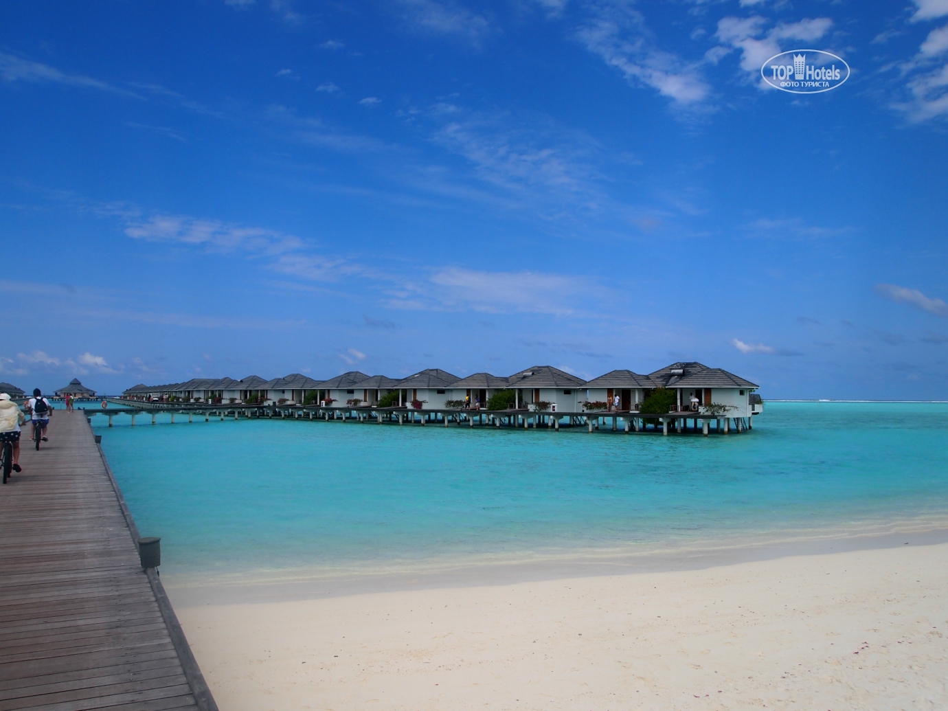 Отель: Почему-то везде пишут, что отель 5 *. На самом деле, отель 4+. Территория: sun island самый большой остров из мальдивских отелей. Один остров это один отель. Огромная территория, большое количество растительности, животных, цветов. В глубине острова есть большой парк с местами для игры в гольф. Есть natura park, где можно посмотреть, как мальдивианцы выращивают овощи, фрукты, зелень. Есть огромная банановая роща, где мы с мужем умудрились потеряться. Так же в глубине множество различных ресторанов и кафе. Есть даже вегетарианский ресторан Zero. Все номера – бунгало и стандарты – расположены у берега по всей окружности острова. Территория острова довольно-таки большая, можно конечно ходить пешком, но мы на второй день взяли велосипеды и до конца отдыха передвигались на них. Например, до места кормления скатов от нашего бунгало пешком минут 15-20, на велосипеде минут 5. Прокат велосипеда 4,5 доллара в сутки. Территория очень ухоженная, чистая, всегда все прибрано. На всей территории есть подвесные гамаки-качельки. Из живности игуанки, ящерки, летучие лисицы, мышки обычные на пальмах. Много цаплей. Номерной фонд: В отеле 3 категории номеров. Стандарт: расположены в технической части острова. Очень далеко от ресторана и рецепции. Огорожены каким-то забором. Пляж их я не видела. Ничего сказать не могу. Стандарты выполнены единым корпусом одноэтажным по 6-8 номеров. Далее superior beach. Отличается от стандартов расположением конечно. Кроме того наличием душа под открытым небом, биде и тем что номера скомпонованы по 2. То есть один домик поделен на 2 части. В каждом домике 2 номера. С торца номера выход на свой пляж. Честно я ожидала, что кусок своего пляжа будет побольше. Однако, оказалось, что близость к соседям очень большая. Но мы как и обычно не отельные жители, на своем пляже мы были 1 или 2 раза. Минут по 20. Все остальное время активно изучали остров. Соседей своих мы видели только на пляже рядом на шезлонгах. В номере не слышно ничего и никого. В номере кровать, 2 кресла, столик, трюмо, телевизор, мини-бар холодильник, сейф (бесплатно), шкаф. Из прохдады кондей и вентилятор. Второй нам пришелся больше по душе. Ванной мы не пользовались почти, всегда ходили в душ на улице. Мыло, лосьоны, гели, шампуни все дают. Полотенца меняют по требованию. Стоит корзина, если туда сложишь – все заменят. Приборка 2-3 раза в день. Рум бои отличные все. Все любят поболтать, показать детей, жен. Говорят только по английски. Это касается вообще всего острова. По русски говорит только один работник рецепции. Но он там не всегда. Поэтому лучше знать английский хотя бы элементарно. В номерах были муравьи. Точнее не в номере, а в душе и в ванной. Но они не сколько не раздражали. Мы относились к ним, как к части этого отеля. Этакая экзотика. Кроме того, по вечерам приползали маленькие ящерки. Мы даже имена им дали. Наши подружки были. Вот что бесило, так это птицы, похожие на кур. Они сидели на пальмах и орали! Вот прям орали как дети. Противно и очень громко. Орали день и ночь. Днем еще ничего, но ночью ужасно. Тем, кто чутко спит, это конечно будет меганеприятно. В отзывах многие пишут про номера бунгал, какие там типа получше, какие похуже. Мы обошли все пляжи и бангало. Если честно все одинаковые, везде есть свои плюсы и минусы и я так думаю, мальдивианцы тоже это предусмотрели. Там, где холодное течение и волны, 