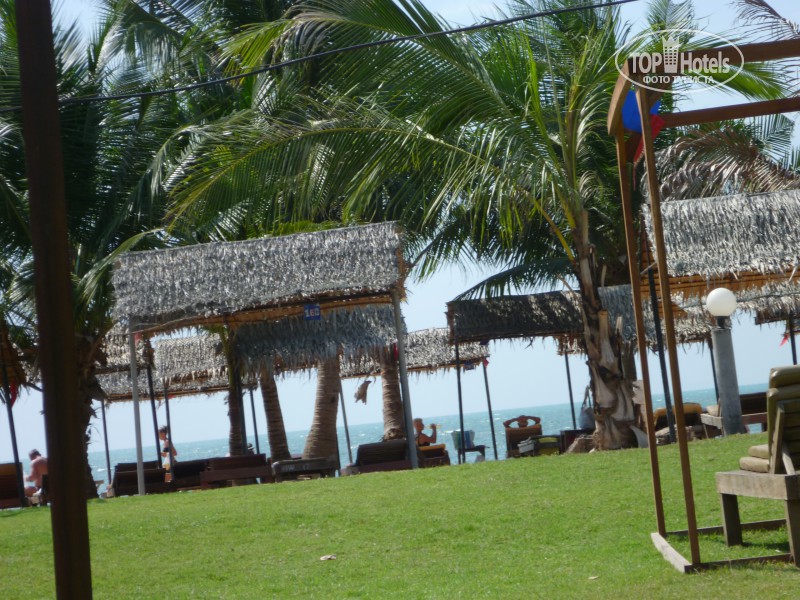 Отель нам понравился. Перед тем, как выбрать его, читала отзывы на сайте и не разочаровалась, хотя достаточно привередлива к выбору отеля, сервису. питанию и т.д. Да и многие из людей, покупая путевки, хотят отдыхать, а не иметь головную боль во время отдыха из-за не правильно выбранного отеля. В Тайланде я не первый раз, в том числе и Паттайе. Отель уютный, подходит для расслабленного отдыха, для семей с маленькими детками(видела как мамочки укладывали спать своих крох в тенечке, под пение птичек, благо кругом ощущение тропического леса), а сами, отодвинув лежак на солнышко, загорали. Питание одно из самых лучших(даже в LE MERIDIEN 5 звезд) на Пхукете питание не много уступало. Очень пожалела, что не взяла младшую дочь(дкаже с нашими капризами по еде там было, что поесть). Сосиски несколько видов, картошечка, овощи тушеные, вареные, свежие, яица во всех видах, колбаса, ветчина, фрукты, соки, йогурты(кстати очень вкусный) , а к нему мармелад, изюм, хлопья нескольких видов... и т.д. Ужины тоже очень вкусные. У нас были оплачены только завтраки, но если есть желание, можно, заплатив 450 батт наесться донельзя. Мясо гриль, море продукты во всех видах и еще куча всего, включая вкуснейшие десерты и мороженое все в неограниченном колличестве, плюс шоу программа(в России за такие деньги вы не покушаете так нигде)!!!!! Правда какая то мошкара кусает вечером и если не побрызгаешься-с ужина придешь покусанный (это единственный минус). В основном ресторане на завтрак много народу и мы стали ходить на завтрак в реторан на пляже - меню все тоже, только в разы меньше народу и очень приятно смотреть за завтраком на море(очень рекомендую). Понравились оладьи, которые стряпает машина-автомат. Нажимаешь кнопочку и получаешь два оладья!!!! Деткам это очень нравилось. Теперь о море.. Море самое чистое в Паттайе. В центре вообще не войти в воду, на севере я тоже не решалась это сделать, а тут море более-менее. Конечно не сравнить с островами, но купаться можно!!!! Я видела тут предыдущий отзыв девушки, которая так уж раскритиковала этот отель и море.. Да, несколько дней и вправду в море была дохлая, полусгнившая рыба, пакеты и прочая дрянь, но такое ощущение, что это вывалили с какой то шхуны... В эти дни мы и не подходили к воде - купались в бассейне. Потом море очистилось. Вечером сильный отлив, часов в 11 вечера буйки оказываются на песке и можно ходить по дну. Мы тоже с супругом, вооружившись фонариком(они есть во всех номерах) пошли посмотреть. Дно плавное, песочек, ям нет, поэтому плавать безопасно, правда возле буйков нашли морскую звезду(мертвую и крабика). Я стараюсь плыть до тех пор, пока не станет видно дно, чтобы не встать на какого-нибудь ежика (страх у меня такой!), но ничего подобного там я не видела. Номер у нас был Deluxe Sea View. Это лучшие номера, море в 50 метрах, в любое время сидя на балконе, мы любовались морской гладью. Номера конечно уже не новые, но мебель не ломанная, В ванной у нас стояла большая ванна. Все работало. Хоть отель и находится далековато от Паттайи, но шатл от отеля ходит каждый час!!! Ездила и на тук-тук, с пересадками, все просто и весело. Если что то интересует конкретно, с удовольствием отвечу. Единственный минус нашего отдыха - это мое отравление, первое за все мои поездки за границу. На полном здоровье начинается неукротимая рвота, диарея, сильнейшая интоксикация, вплоть д