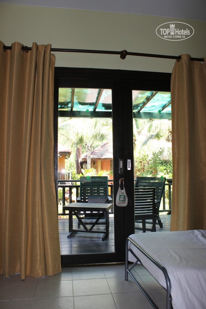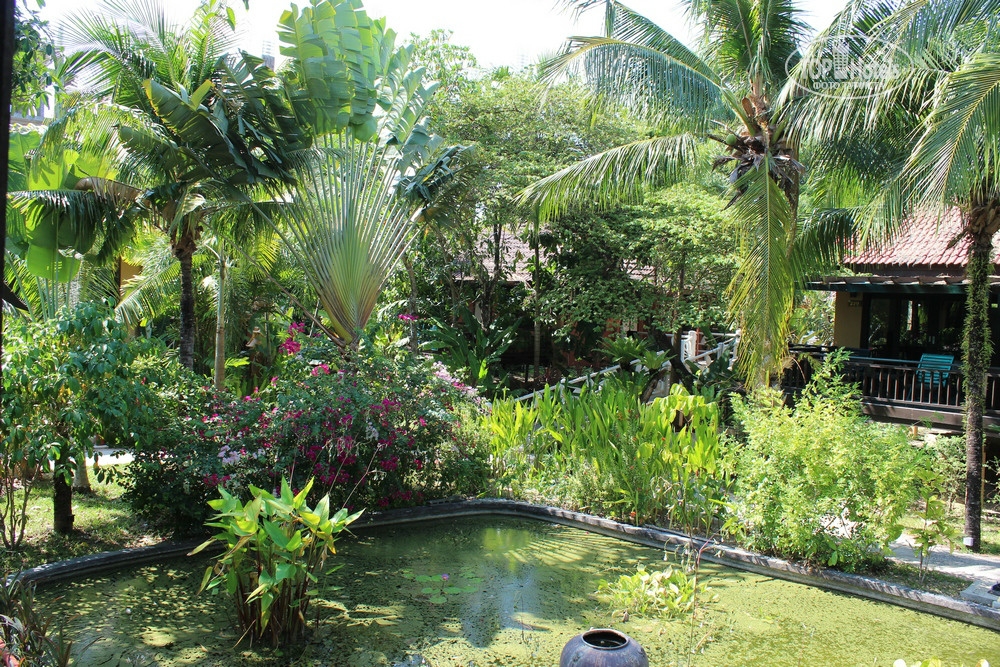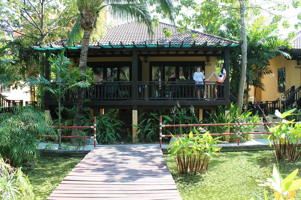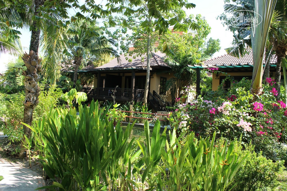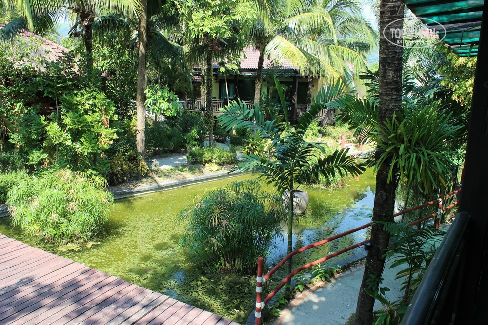 Отдыхали с 23.02.14 по 05.03.14, я, муж, сын 12 лет. Перелет: Трансаэро, как и предыдущие 3 раза все отлично. Трансфер/заселение: из аэропорта ехали 20-30 мин в микроавтобусе без гида. Нас 3-е и еще 2 человека. Отлично, никто не трещит всю дорогу и не останавливаемся каждых 5 мин для высадки очередной порции товарищей-туристов. Заселение -ключи на руках через 5 мин. Номер: наше бунгало №226 прекрасно! Оно в самом конце территории(последнее 230) около пруда. Я заметила, что дальние бунгало самые новые и красивые. Большая терраса со столиком, шезлонгами и сушилкой. Номер чудесный, состоит из двух зон: спальня-светлая плитка и гостиная-черная плитка. Кровать огромная, сыну принесли дополнительную. Шкаф большой, с антресолями, в нем же сейф, холодильник, уголок для чая-кофе с чайником, зонты, тапочки, фонарик. В номере достаточно тумбочек, есть стеллаж, светильников хватает, как ни странно для Таиланда. Имеется 4 розетки! В ванной все стандартно, унитаз, раковина, душевая со стеклянной перегородкой. Гель, шампунь в керамических дозаторах, доливают при необходимости, мыло, шапочка, ватные палочки. Все достойно. В нашем бунгало 3 окна, одно из которых во всю стену, оно же дверь-купе. Есть москитные сетки, шторы очень плотные, что излишне, т.к. домики в джунглях и солнце не палит в окна. Двери лучше закрывать, а то друзья-гекконы не заставят себя долго ждать и отправятся к вам в гости, а с ними и москиты за одно. Поймать геккона в номере, все равно, что победить человека-паука. Кондиционер шумноват, но на фоне пения лягушек и цикад-не заметно))) Когда уходишь, отключается, как и все розетки, кроме одной, в которую включен прикроватный светильник. Телевизор большой, плоский, не включали ни разу. Инфраструктура/услуги: территория чудесная, все зеленеет, цветет, очень ухожено и чисто, растения очень красивые. Вместо дорожки к бунгало ведет мостик. Есть 2 основных корпуса, их окна и балконы выходят на бассейны ,и бунгало, те, что вначале не такие красивые, как те, что в самом конце. Есть 2 бассейна, один с гидромассажем, фонтанами, баром и детской секцией очень неплохой, вечером не освещается, но купаться можно, никто не гоняет. Второй вдоль нового корпуса, мы там не купались, очень он мрачно выглядит. Тренажерный зал -ерундовый. В основном рассчитан на женскую половину, мужу там делать было особо нечего, разве гантели, но и те max 10 кг. Помещение для досуга включает в себя детские игрушки, какие-то велосипедики, теннисный стол, библиотеку, чтиво на русском есть на ресепшене. В отеле есть массажный салон, в который мы не ходили. По всей территории имеется бесплатный Wi-fi, временами очень даже шустрый, на радость многим. Пароль на ресепшене. Пляжные полотенца меняют в номерах. Отель предоставляет мотобайки в аренду, все приличные не юзаные, не коцаные. Маленький 250 батт, средний 350 батт, большой 450 батт (в сутки, естественно). Для аренды нужны только права с открытой категорией «А» и оплата, залог они не просят(если ты постоялец отеля).Когда ключ на руках нужно показать и имеющиеся царапины на байке, протоколировать их не обязательно. Шлемы тоже предоставляются, но если голова большая, то нереально найти размер. Муж так и ездил, нахлобучив его кое-как на макушку. Мы брали большой байк Хонда 150 и благополучно ездили на нем втроем, сын 50 кг, муж 90 кг и я 52 кг. Это неудобно, не маневренно, муж справлялся, т.к. опы