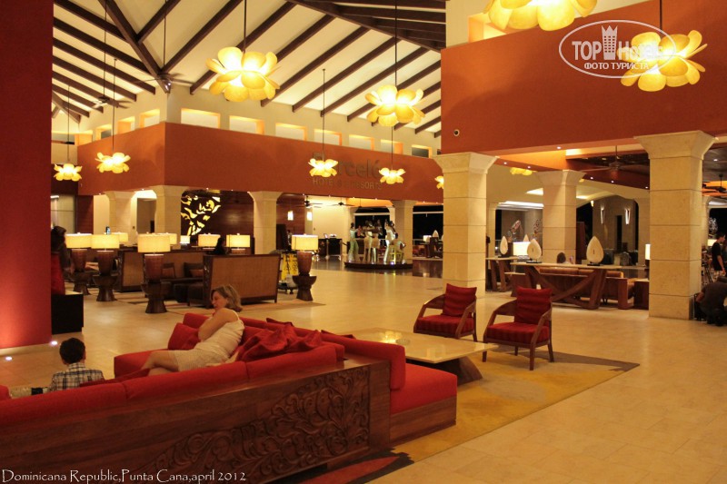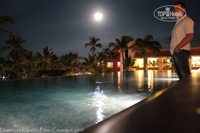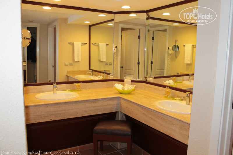 Наш отель Barcelo Bavaro Palace Deluxe 5,а отель Barcelo Bavaro Beach & Convetion Center 5*(только для взрослых) это его продолжение. Deluxe интереснее если что ))) Долго не мог определиться с чего начать, так-как впечатления и эмоции переполняли, настолько, что мозг зависал, как только пальцы касались клавиатуры. Начну как обычно. 1. Перелёт. Трансаэро. Летали этой компанией много раз и знали, на что идём. Так как перелёт многочасовой, всё равно почитали отзывы. Многие писали, что с юбилеем компании изменилось обслуживание, но в это слабо верилось, а оказалось действительно так. Перелёт в Пунта-Кана. Самолёт Boeing 777-200, туристический класс, расстояние между сидениями приемлемое при моём росте 1.79 особого дискомфорта не испытывал. Компоновка салона 3+3+3.Регистрировались на рейс онлайн, очень удобно. Задержки что туда, что обратно не было. Сразу выдали плед, одноразовые носки, повязку на глаза для сна, детям подушки. Подставки для ног тоже имеются. Питание без изысков, но есть было можно. Спиртные напитки на борту не предлагаются. Для любителей покурить тоже приятного мало: 12 часов воздержания, тоже касается электронщиков. Экстерьер и интерьер самолёта – оценка хорошо. Стюардессы милые, весь полёт улыбаются, у нас даже складывалось впечатление, что они время от времени что-то покуривают. Полёт прошёл гладко, без тряски. Время прошло незаметно. Приземление даже не заметили, пилотам респект! Сложилось впечатление, что многие либо заелись, либо забыли, за какую цену летят. А вот перелёт Пунта-Кана – Москва, совсем другая история и мы тоже попали в число «заевшихся». Питание такое, что если даже нарочно захочешь испортить блюдо, так не получится. Весь полёт голодные. Носочков уже не было, видимо в Доминикане их никто не носит. Да и попали в такую турбулентность, что я и про питание вспомнил только дома. Видимо Компания Трансаэро нашла выход из ситуации с питанием, пилоту надо только найти грозовую тучку и недовольных не будет. Да лететь над Атлантикой часов 8. 2.Отель Barcelo Bavaro Palace Deluxe. Отель сразу произвёл отличное впечатление. Встретили нас с Pina Colada. Ресепшен очень красивый и необычайно большой. Номер у нас был Golf Room Deluxe DBL, самый недорогой, находящийся на гольфовых полях в метрах 700 от пляжа (условно). Но нам несказанно повезло, сказали, что вы нам очень понравились и мы Вам дарим номер около океана с большой кроватью, счастью не было придела))) Номер классный, большой, просто огромная и очень удобная кровать с ортопедическим матрацем, очень много подушек, большая ванная, плазма, сейф (бесплатный), кофеварка, бар(3 вида колы, фанта, спрайт, содовая, 4 вида сока, 2 вида пива, вода, кофе молотый пополняется ежедневно, бесплатно) утюг, гладильная доска, у кого есть айфон - подставка с мультимедиа центром (да, розетки в отеле евро,переходники не нужны!!! Напряжение 110в.) ванные принадлежности: шампуни, кондиционеры, гели, бритва, гель для бритья, расчески, шапочки для душа, ватные палочки, мыло, зубная паста, ложки для обуви, щетки для обуви, тапочки, халаты, всё одноразовое, кроме халатов, пополняется. Одним словом -Делюкс. На гольфовые поля дошли, посмотрели гольф номера, номера новые, стиль хайтек, понравились. Ещё очень понравился климат-контроль в номере работает тихо и продуктивно. Также, кто боится заболеть, есть потолочный вентилятор. Уборка номера, как в прочем и отеля, на 5+ . Вообще, сервис на высшем уров