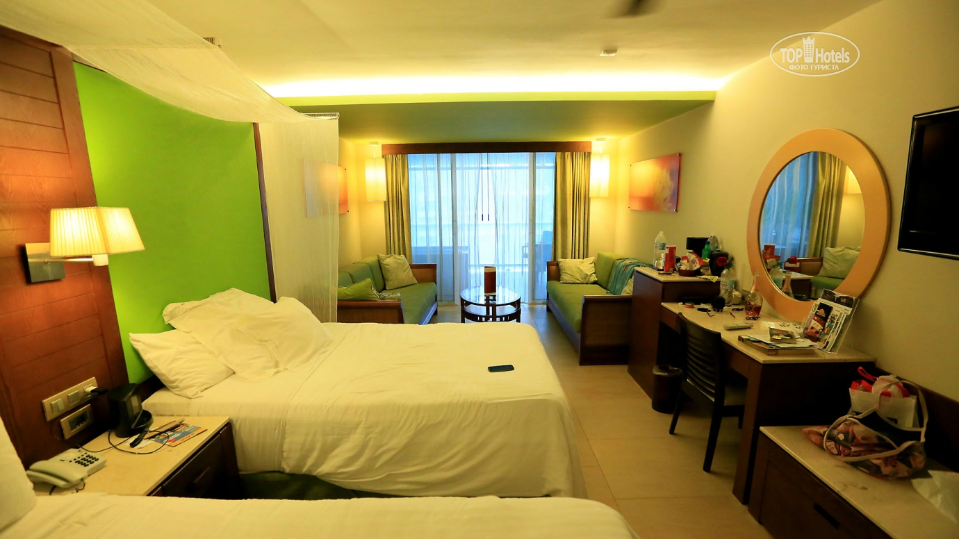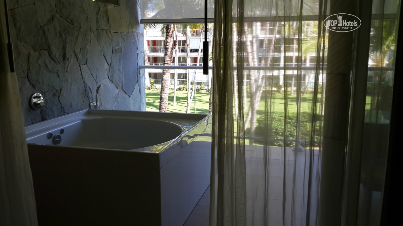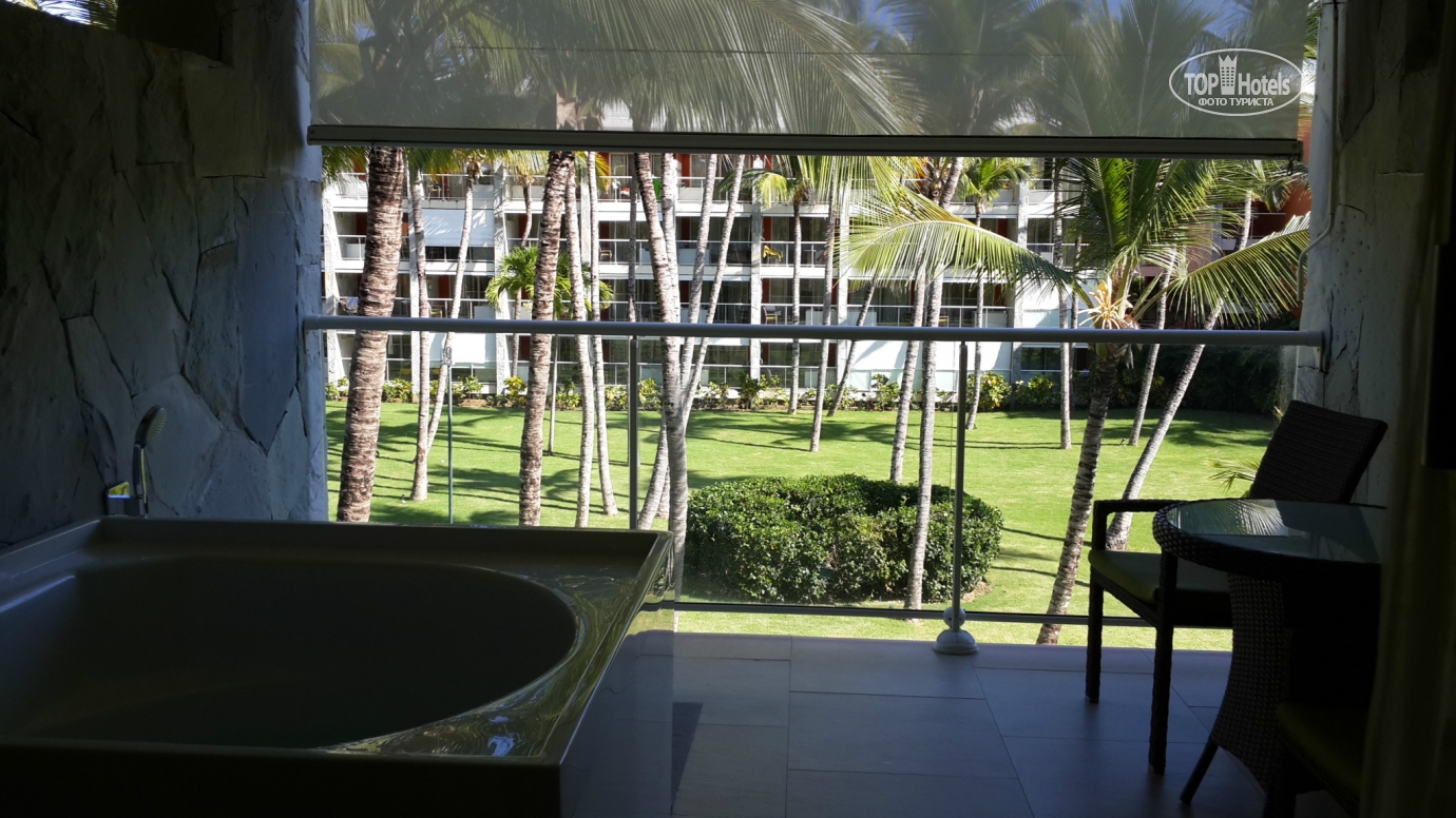 Путешествовали с мужем с 08.02.2014 по 20.02.2014 г. Тур оператор Тез тур. Летели Аэрофлотом, специально доплатили 500 долл. и не зря. Расстояния между сиденьями нормальное, полная мультимедиа, я посмотрела несколько новых оскоровских фильмов, муж слушал аудиокниги. В общем скучать не пришлось и полет хоть и утомительный, но взрослому высидеть вполне нормально. Что порадовало, не было пьяных, хотя на боту и наливали вино. И вообще в Доминикану все-таки едут люди поприличнее, это чувствуется, в отличие от того же Тая. И это приятно) Приехали в отель около 14 ч. дня. Заселение в 15 ч. нам выдали браслеты и мы пошли обедать. В начале не могли разобраться в какой именно ресторан идти, на первом этаже нас отправили на второй этаж (Стейк хауз). Там мы приятно и оч.вкусно пообедали и вернувшись на ресепшн сразу получили ключ. Нас с чемоданами проводили до номера. Номер: Номер и корпус я заранее попросила, написав на этом сайте в проверке бронирования номера, написала, что хочу номер в 6 корпусе на 3-4 этаже. Через 2 дня мне ответили, что подтверждают бронь и что постараются удовлетворить мою просьбу. В итоге мы получили номер в 6 корпусе на 3 этаже номер 6309. Номер Junior Suit (с джакузи на балконе и боковой вид на море). Прикрепляю фото, где можно увидеть какой вид был с нашего балкона. Номер нам дали по ошибке в двумя кроватями, мы позвонили на ресепшн и там сказали, что только завтра смогут переселить в другой номер с одной кроватью. У нас с мужем разные фамилии и муж сказал, что вроде нас спрашивали про кровати, я видимо мимо ушей это пропустила, т.к. после суток без сна мало уже соображаешь. Короче, мы не стали заморачиваться, кровати огромные да и у нас не медовый месяц, номер нам понравился и мы с удовольствием там прожили весь отдых. Про номера, действительно большие, красивые, вообще отель с отделкой из дерева и это предает невероятно уютный и дорогой вид. Но вот с чем дизайнеры переборщили, так это с санузлом, в этой категории номеров раковины как бы в номере, зонирование хорошее и раковины смотрятся гармонично, а вот туалет и душ за матовым стеклом все в той же комнате и стекла не до потолка, т.е. есть приличная щель между потолком и все запахи, звуки туалета тут же оказываются в комнате. Так же как ночью если кто то пошел в туалет, душ свет мешает. В общем дизайнеры явно головой не подумали)) Какой же кайф от джакузи и именно днем, когда приходишь с пляжа поваляться в джакузи, наблюдая пальмы и солнышко) Представляю какой кайф с балконов с видом на море, где в джакузи еще и море видно (если не первый этаж, где все мимо ходят и кусты загораживают), но мы по финансам не потянули. Убирали номер нормально, пару раз мы оставляли карточку на подушке, что бы белье поменяли, меняли без проблем. Полотенца бросали на пол, как и просили и их меняли, но если вы хотите после обеда чистые полотенца, то могут не поменять, т.к. они все стираются и чистые приносят в районе 16 ч. так что мы просто не все сразу сдавали полотенца и не было проблем. Бар пополняли хорошо и вкусно) Единственное пожелание к отелю, это все-таки уже прикупить новые полотенца и постельное белье, все застиранное и наволочки даже с катушками попадаются) А в остальном по номеру все отлично. Территория: Как тут много писали, большая, красивая, ухоженная, оч.много мест для красивых фотосессий. Нравилось просто кататься на паровозике) Пита