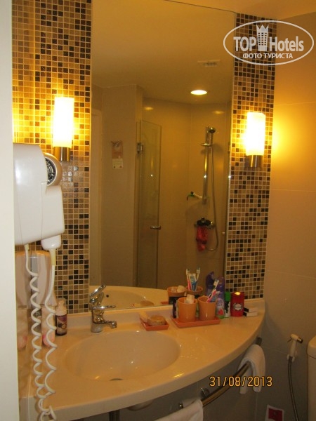 Вот и добралась до написания отзыва! )) Начну с того, что отель мы с супругом выбирали задолго до планируемой поездки и поэтому просматривали кучу отзывов на разные отели,волновало нас соотношение раположение - цена – качество обслуживания. Остановились на «Ибис Пхукет Ката » еще и по рекомендации друзей, приехавших оттуда с отдыха. Наша поездка началась с 28.08, регистрация была с 7.30 и мы летели целый день! Это была неприятность конечно, ведь потерян ЦЕЛЫЙ ДЕНЬ отпуска! В аэропорту прошли регистрацию (еще в самолете нам выдали миграционные карты - для ускорения процесса регистрации туристов на Пхукете),там же а аэропорт можно взять бесплатно sim -карту, вторую бесплатную дал гид отельный на второй день при встрече.НЕ МЕНЯЙТЕ ДЕНЬГИ В АЭРОПОРТУ - самый невыгодный курс!!! В отеле принимают доллары, а обменять у отеля можно всегда. Далее нас встретили работники «Пегаса» и проводил до автобусов, которые, к слов говоря, очень огромные )) и удобные.В отель приехали около 9 по местному, на ресепшене заполнили анкеты, отдали депозит – 100 $ (его вам вернут в полной мере, если вы его не потратите на свои нужды - заказ еды и напитков в номер) и нам выдали 2 карточки – ключа, указали на лифт… далее мы сами пошли. Номер: Сразу на ресепшене попросите карточку с паролем к Wi –Fi ,если он вам необходим – действует 3, 5 и 7 дней. Мы брали на неделю и потом еще один на 5 дней. Так же в холле есть 3 компьютера с доступом к интернету – пароли брать на ресепшене. Наш номер был на 5 этаже,левое крыло номер 570 с видом на бассейн и шикарную гору. Номер сразу понравился: уютные, небольшой (но мы не в нем приехали сидеть). В нем присутствовали :ДЛЯ НАЧАЛА – ЧТОБ ЭЛЕКТРИЧЕСТВО И КОНДИЦИОНЕР РАБОТАЛИ ПОСТОЯННО, НУЖНО ОДНУ КАРТОЧКУ ОСТАВИТЬ В ОТСЕКЕ СЛЕВА ОТ ВХОДНОЙ ДВЕРИ.Мы так и делали, только когда уходили на завтрак отключали все.Кровать – весьма удобная, телевизор напротив кровати, шкаф с забавными вешалками для 5- 6 вещей, сейф (код мы сами ставили), холодильник небольшой, но в нем легко помещались и фрукты и вода, слева у кровати небольшая полочка с коробкой салфеток, справа тапчанчик у окна и еще типа столика, на котором стояли 2 бутылки воды, чайничек на 0.5 литра воды, 2 кржки с блюдцами и ложками, а так же – 2 кофе, 2 пакетика чая, 2 пакетика сливок и сахар – 2 обычного и 2 тростникового .Там же розетки слева.Свет можно отключать не вставая с кровати – выключатели по обе стороны кровати находятся – весьма удобно. Воду из бутылок если не выпивали, то одну в чайник заливали на всякий случай, меняют воду ежедневно во время уборки - нужно только оставлять эти бутылки в номере. Уборку тоже проводят ежедневно: сухая уборка - так как ламинат, но мы оставили 50 бат чаевых вместо 20 бат и нам помыли и пол )) Постельное меняют раз в 3 дня, смена полотенец для лица и тела – всего их 5- одно под ногами вместо коврика,пляжные меняют по желанию – мы ежедневно меняли после пляжа, также наливали жидкое мыло и шампунь/гель для душа , туалетную бумагу и спец пакетики тоже каждый день )), еще были 2 шапочки для душа в начале заезда и перед отъездом тоже положили 2.Душевая кабинка небольшая, но одному вполне хватает места, с водой перебоев не было.Единственное, мы все же купили шампунь и мыло отдельно – от их волосы торчком стояли )) Далее, балкон – 2 стула, столик небольшой, сушилка – хватает для сушки купальных вещей.Поло