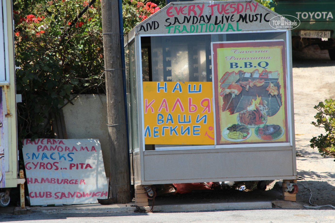 В отзывах по данному отелю попадается много противоречивых мнений, поэтому постараюсь быть правдивым и уйти от высказываний нравится/не нравится. Вот мой небольшой обзор. Летали через Пегас. Все как обычно. Встречают, рассаживают по автобусам и довозят до отеля. Автобусы обычно заполнены по максимуму, так что если с Вами маленький ребенок, то придется его взять на руки. Иначе не хватит на всех мест. РАЗМЕЩЕНИЕ Правила размещения стандартные. Номер освобождаете до 12-00. Заезжаете в номер после 14-00. Если номер будет готов раньше, то сможете заехать после 12-00. Правила есть правила, поэтому будьте готовы к этому. Нам немного не повезло, так как прилетели рано и привезли нас в отель в 05-00 утра. Решается все просто: на -1 этаже есть комната для размещения багажа и туалетные комнаты с душевой. Оставляете багаж, переодеваетесь и идете на пляж купаться. Потом можете позавтракать в отеле. Но так как Вас еще не заселили, то за завтрак платите дополнительно. Или можете позавтракать в рядом находящихся кафешках. Но там персонал просыпается не раньше 10-00 утра. Мы так и поступили. В 12-00 были готовы номера. Мы брали путевку с видом на горы в основном номере. Никакого красивого вида на горы там нет. Примерно в 5 метрах от отеля идет сразу гора, закрытая сеткой. Так что если Вам не особо важен вид из номера, то Вам номер подойдет. Если хотите красивый вид, то конечно надо брать с видом на море. Очень красиво. Но зато с видом на горы будет потише. Не слышно шума моря и движения машин по дороге. Но в отеле (если есть свободные номера) предлагают на выбор номер с видом на горы, или можете доплатить 50 евро и взять с видом на море. Так как мы были с ребенком, то обратил внимание, что в номере с видом на горы стоит дополнительно раскладушка для ребенка, а в номере с видом на море стоит дополнительная полноценная кровать. Так что в итоге выбрали номер с видом на море. О чем не жалеем. Вид прекрасный. Приятно после заката посидеть на балконе. Да и полноценная кровать для ребенка. В номере есть фен, чайник, телефон и телевизор. Вроде как 3-4 русскоязычных канала. И кладут по 2 кусочка мыла. Шампуня, зубной пасты, зубных щеток и ниток нет. Даже не оказалось информационной таблички на ручку двери НЕ БЕСПОКОИТЬ/ПРОШУ УБРАТЬ В НОМЕРЕ. Зато туалетную бумагу несут постоянно. Под конец отдыха накопилось 5 рулонов бумаги. Сейф небольшой мебельный. Документы входят, зеркальный фотоаппарат вошел, а вот сверху IPad уже не влез. Стоимость сейфа 20 евро за 7 дней. Закрывается не на кодовый замок, а обычным ключем. Так что ключ придется носить с собой или оставлять на ресепшене. Замок на двери в номер электромагнитный, на карточке. Но карточку дают одну. Немного не удобно, если Вы раздельно приходите в номер. Ключ у кого-то одного. Но можете просто оставить ее на ресепшене. По входу в номер, втыкаете карточку в панель возле входа, иначе не включится электричество. Так что когда уйдете из номера, питание отключится и не будет работать кондиционер и зарядные устройства для техники. Розетки в номере стандартные, европейского образца. Убираются в номере нормально. Полотенца меняют. Кровати заправляют. Конечно никаких лебедей не делают. Листки цветков так же не кладут. Просто убираются. Все было чисто и чистые полотенца. На окнах балконной двери постоянно образуются соляные налеты от моря. Их постоянно протирали, 