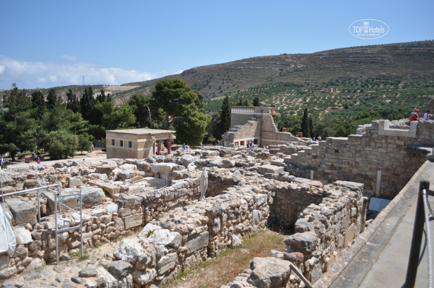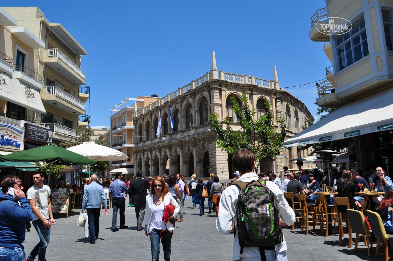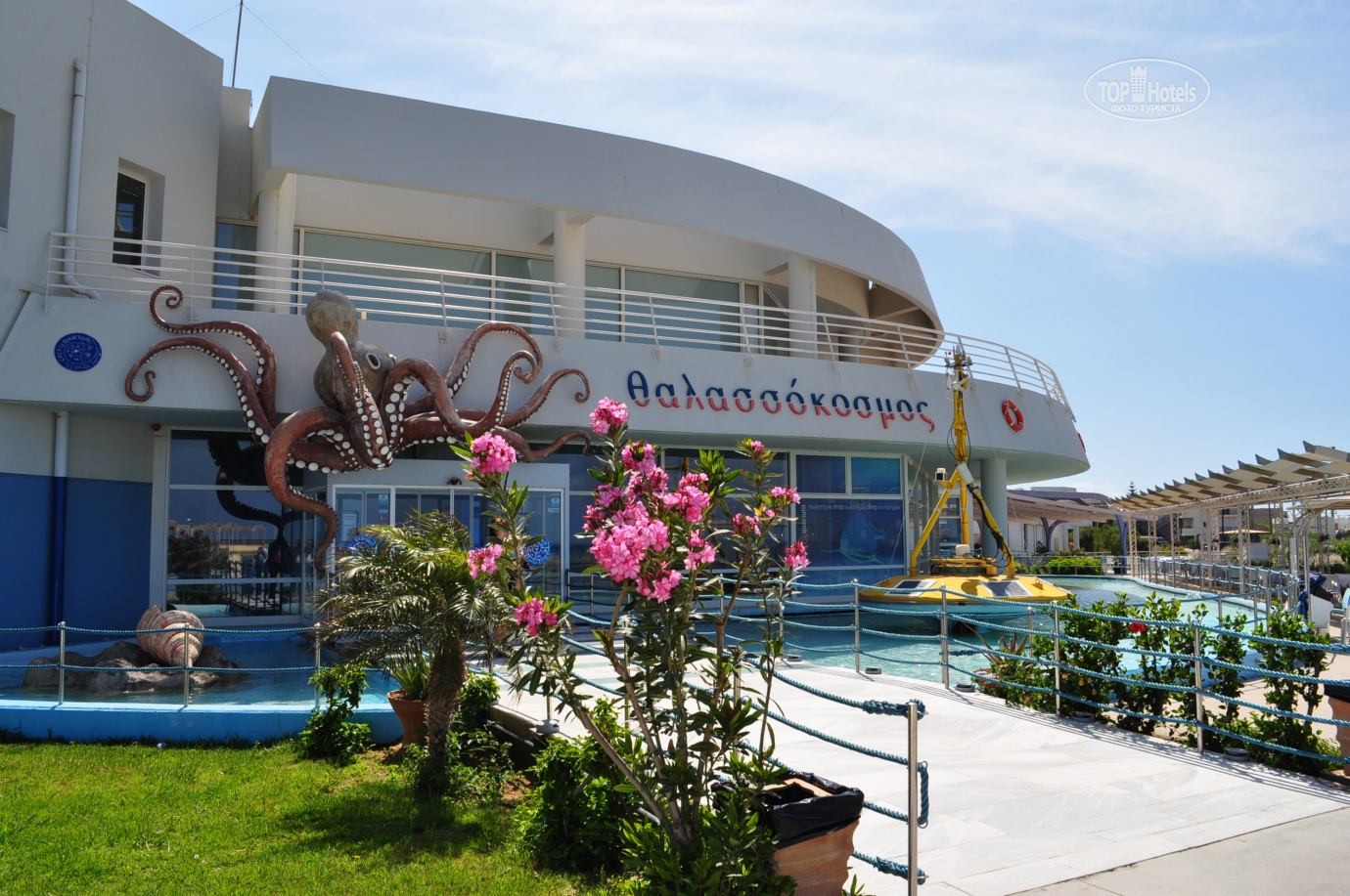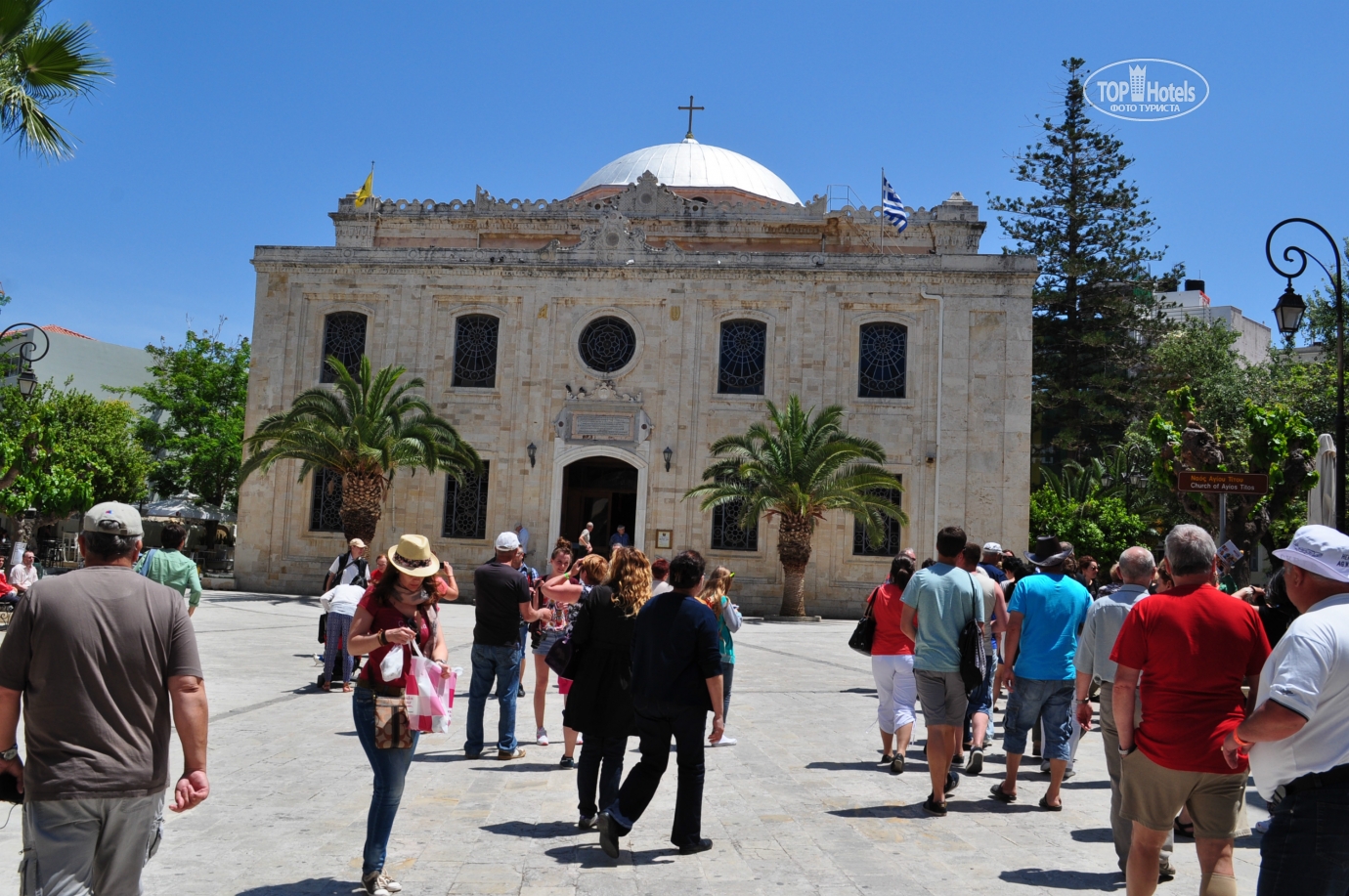 Отдыхали с 07.05-17.05 2014г. Погода нас встретила не радужно, +18 и ветренно. Отель на горе, ветер просто сногшибательный! Море все в барашках и холодное....думаю не поплаваем(((. Прилетели в 08:00 утра. В отель ехали около 1,5 часа. Встретила нас хозяйка отеля, предложила отправить багаж в комнату хранения. На ресепшене нам рассказали о системе ALL по мировым стандартам....а именно , что с 12.00 оно начинает действовать. Так что завтрак платный 5 евро с 1 чел. и номер с видом на море +50 евро. Мы бронировали номер стандарт с видом на море, но в 12.00 часов виновато нам сказали, что мы заселены в VIP корпус Голден с видом на море. Номер 501 большой и поделён на 2 зоны, спальня и что-то типа зала с креслами и столиком. В номере: чайник, чашки, фен, ТВ-плазма, сейф, душевая кабина-с массажем, мыло и шампунь. Гид Линур ознакомил с отелем и экскурсиями. Мы выбрали Санторини. В первый день мы нашли салон "Меджик тур" у Мариуса. Машину выбрали Хендай i20 на ручке за 130 евро на 3 дня с полной страховкой. Мариус дал нам навигатор,карту, диск с музыкой) и пол бака бензина (бензин 95 =1,74 евро) . В последствии сделали вывод , что машину дешевле брать на полную неделю. За один день мы сами посетили Кносский дворец (билет 6 евро 1 чел), форт Колис, погуляли по центру Ираклиона (парковка машины в порту- 3 евро) и по пути домой заехали в Критский аквариум (билет= 9 евро 1 чел). Выезд был в 09.00 и в отель мы приехали к 18.00. В Кноссе очень жарко +29 !!! Во второй день мы посетили Плато Лассити и пещеру Зевса. Дорога серпантин и узкая, виды конечо просто захватываю дух! Смотровая площадка находится около пещеры Зевса. Дорога до пещеры очень сложная! Нужно долго подниматься по крутой тропинке. (билет 4 евро 1 чел). Выезд в 09:00 и в отель успели к обеду 14.00. На Лассити холодно около +12 Третий день. Решили поехать на пляж "Вай" . Дорога серпантин, виды шикарные, пляж не супер-пупер.....так ради интереса стоит глянуть. Выехали в 09:00-13:00. Вечером выехали в Ийрапетру, ехать от отеля около 20-30 минут (дорога очень хорошая). Город тихий и красивый. Море было теплое, многи купались! +22 На пятый день взяли джип Санг Енг Кайрон, выехали в сторону порта деревни Киссамос... откуда отплыли в бухту "Балос". Выезд в 05:00. (За 1 день до экскурсии мы предупредили гида , что выезжаем на целый день и нам нужны (ланч бокс), главное заказать до 12:00!!!). В порт приехали рано 08:30 (вывод можно выезжать и в 6 утра), купили билеты на паром =25 евро/1 чел. Вода в бухте холодная, места в пароме БЕРИТЕ НА 1 ЭТАЖЕ!!!! очень дует на верхнем....чувство что зима пришла ТЕПЛУЮ одежду обязательно! Если верите в себя....поезжайте в бухту сами на машине по дорожке, виды там круче в 100 раз!!! На пароме есть бар и кафешка (пицца- 5 евро, булки -3 евро...). Отплытие в 10:15 -17:45. В отеле были в 21:20. На 15 мая купили экскурсию на Санторини 150 евро/1 чел. Выезд в 06:15 утра на автобусе. В порту Ираклиона пересели на паром, были волны и паром очень сильно трясло, людям было плохо( в пакеты) зрелище не для слабонервных. В Санторини из-за волн мы плыли 3 часа. Санторини очень красивый остров! Пляж с черным песком и домики как в сказке, экскурсия заняла около 6 часов! Далее паром....3,5 часа как в балтанке! При всей красоте города, я никогда бы на пароме туда не поплыла (меня не укачивает) а вот другие!!!! Я даже описывать это не хочу(. По интернету в последние дни решили купить WIND я ручаюсь отличная скорость и цена!!!! Брали в Агиос Николаус, там г