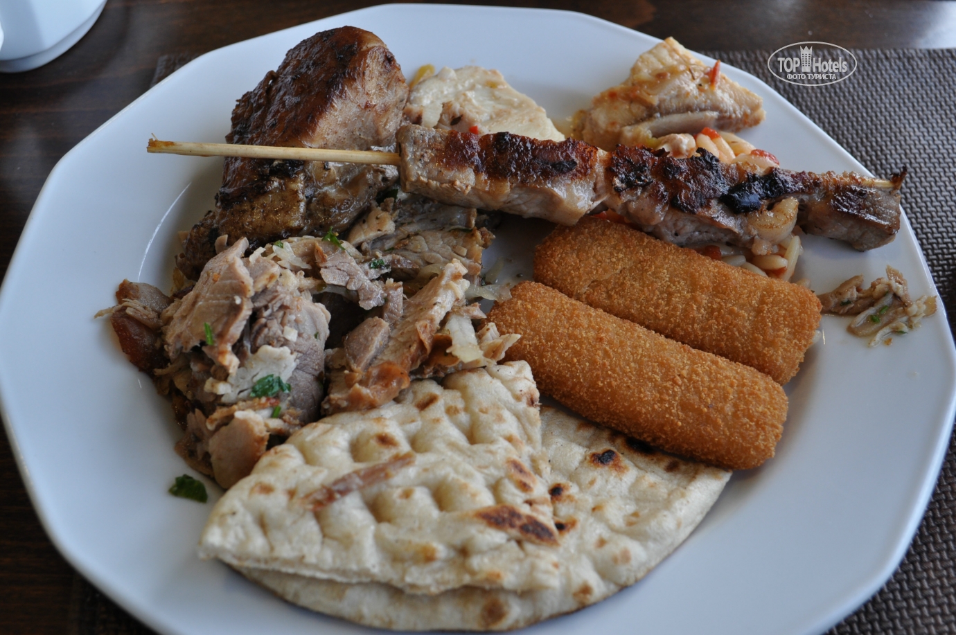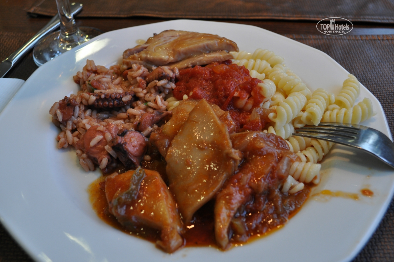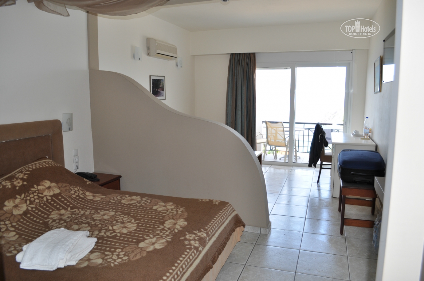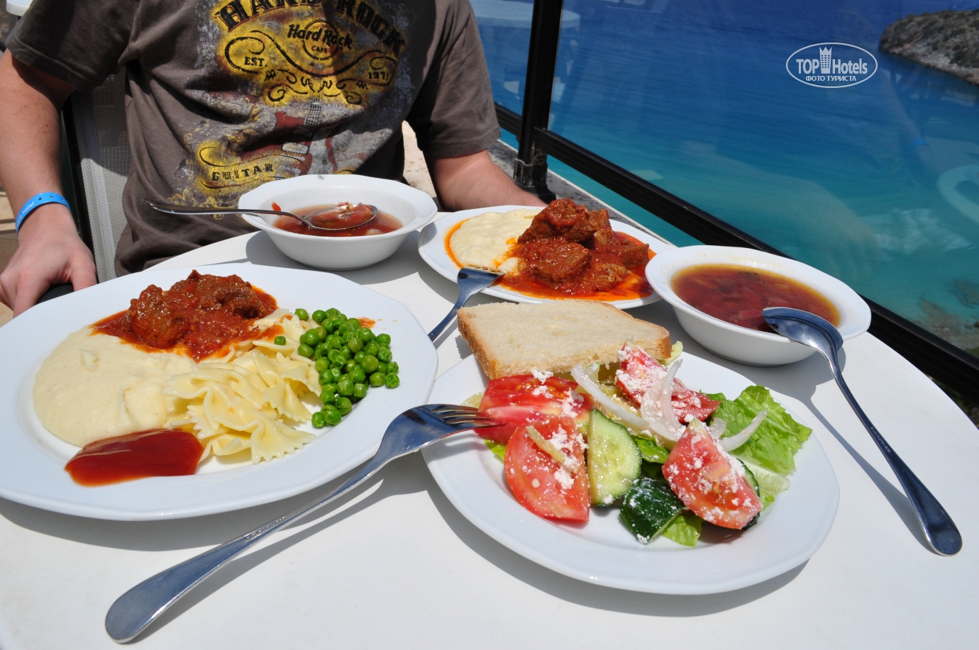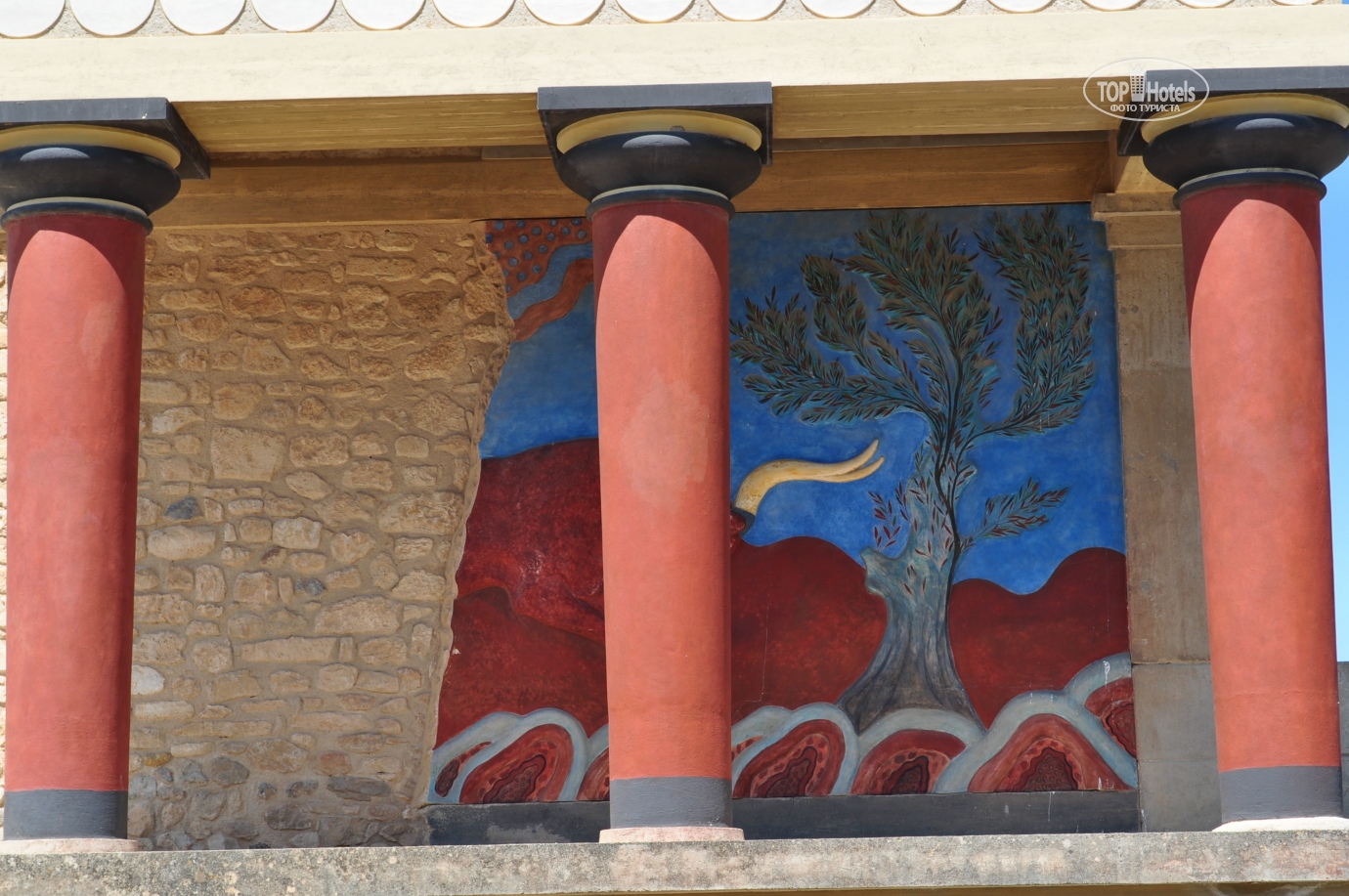 Отдыхали с 07.05-17.05 2014г. Погода нас встретила не радужно, +18 и ветренно. Отель на горе, ветер просто сногшибательный! Море все в барашках и холодное....думаю не поплаваем(((. Прилетели в 08:00 утра. В отель ехали около 1,5 часа. Встретила нас хозяйка отеля, предложила отправить багаж в комнату хранения. На ресепшене нам рассказали о системе ALL по мировым стандартам....а именно , что с 12.00 оно начинает действовать. Так что завтрак платный 5 евро с 1 чел. и номер с видом на море +50 евро. Мы бронировали номер стандарт с видом на море, но в 12.00 часов виновато нам сказали, что мы заселены в VIP корпус Голден с видом на море. Номер 501 большой и поделён на 2 зоны, спальня и что-то типа зала с креслами и столиком. В номере: чайник, чашки, фен, ТВ-плазма, сейф, душевая кабина-с массажем, мыло и шампунь. Гид Линур ознакомил с отелем и экскурсиями. Мы выбрали Санторини. В первый день мы нашли салон "Меджик тур" у Мариуса. Машину выбрали Хендай i20 на ручке за 130 евро на 3 дня с полной страховкой. Мариус дал нам навигатор,карту, диск с музыкой) и пол бака бензина (бензин 95 =1,74 евро) . В последствии сделали вывод , что машину дешевле брать на полную неделю. За один день мы сами посетили Кносский дворец (билет 6 евро 1 чел), форт Колис, погуляли по центру Ираклиона (парковка машины в порту- 3 евро) и по пути домой заехали в Критский аквариум (билет= 9 евро 1 чел). Выезд был в 09.00 и в отель мы приехали к 18.00. В Кноссе очень жарко +29 !!! Во второй день мы посетили Плато Лассити и пещеру Зевса. Дорога серпантин и узкая, виды конечо просто захватываю дух! Смотровая площадка находится около пещеры Зевса. Дорога до пещеры очень сложная! Нужно долго подниматься по крутой тропинке. (билет 4 евро 1 чел). Выезд в 09:00 и в отель успели к обеду 14.00. На Лассити холодно около +12 Третий день. Решили поехать на пляж "Вай" . Дорога серпантин, виды шикарные, пляж не супер-пупер.....так ради интереса стоит глянуть. Выехали в 09:00-13:00. Вечером выехали в Ийрапетру, ехать от отеля около 20-30 минут (дорога очень хорошая). Город тихий и красивый. Море было теплое, многи купались! +22 На пятый день взяли джип Санг Енг Кайрон, выехали в сторону порта деревни Киссамос... откуда отплыли в бухту "Балос". Выезд в 05:00. (За 1 день до экскурсии мы предупредили гида , что выезжаем на целый день и нам нужны (ланч бокс), главное заказать до 12:00!!!). В порт приехали рано 08:30 (вывод можно выезжать и в 6 утра), купили билеты на паром =25 евро/1 чел. Вода в бухте холодная, места в пароме БЕРИТЕ НА 1 ЭТАЖЕ!!!! очень дует на верхнем....чувство что зима пришла ТЕПЛУЮ одежду обязательно! Если верите в себя....поезжайте в бухту сами на машине по дорожке, виды там круче в 100 раз!!! На пароме есть бар и кафешка (пицца- 5 евро, булки -3 евро...). Отплытие в 10:15 -17:45. В отеле были в 21:20. На 15 мая купили экскурсию на Санторини 150 евро/1 чел. Выезд в 06:15 утра на автобусе. В порту Ираклиона пересели на паром, были волны и паром очень сильно трясло, людям было плохо( в пакеты) зрелище не для слабонервных. В Санторини из-за волн мы плыли 3 часа. Санторини очень красивый остров! Пляж с черным песком и домики как в сказке, экскурсия заняла около 6 часов! Далее паром....3,5 часа как в балтанке! При всей красоте города, я никогда бы на пароме туда не поплыла (меня не укачивает) а вот другие!!!! Я даже описывать это не хочу(. По интернету в последние дни решили купить WIND я ручаюсь отличная скорость и цена!!!! Брали в Агиос Николаус, там г