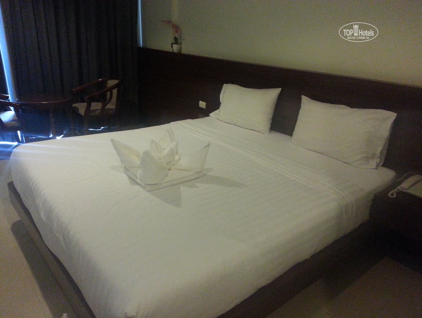 Выбирали отель за 3 дня до вылета, так сказать из того что было))) Но остались довольны, вообще вернуться из Тайланда недовольным невозможно- просто сказочный Пхукет. По-порядку: летели тайскими авиалиниями (выше всех похвал), но т.к. решение о поездке принимали "сегодня" а улететь нужно было "вчера" прямых рейсов не было и мы летели до Бангкока с пересадкой на стыковочный рейс до Пхукета. Дорога не напрягла, стыковка между рейсов 1 час. Вышли с одного самолета прошли по указателям, вам все покажут и сели на следующий самолет и вот через час мы в раю))) Принимающая сторона Paks, встретили, вручили по конвертику с ваучерами и местной симкои, дали водички и отправили в минивен. В отели были через 30 минут. Сам отель- сначала был шок)))) т.к. отдыхали всегда в больших отелях категории 4-5, а тут 3! Маленький отель без бассейна и прочих развлечений, на ресепшене встретила очень милая таечка, попросила подождать минут 15 и вручила нам ключи от номера, проводив до него! Номер на 5 этаже, мы, зная, что ВСЕ СТАНДАРТЫ БЕЗ ОКОН, выбирали еще в Москве DeLux. Номер соответствует фото на сайте, хороший номер с мини балкончиком, на него правда выйти было не возможно да и незачем))) но белье есть где сушить и это главное. Перед балконом стоит столик и 2 кресла,большая 2-ух спальная кровать- удобная, спали без задних ног))), душ (без шторок). шампуньки, мыло и гель. ушные палочки и шапочка для душа исправно пополнялись. Уборка на 5, правда после нее на полу в ванной всегда были черные длинные волосы обслуживающего персонала- не очень приятно, ну да ладно. Жк телевизор на стене, чайник 2 чашечки и чай, кофе, сахар в пакетиках- все было и по мере опустошения, докладывалось! холодильник- холодил так что вода превращалась в лед (очень удобно, брали с собой и по такой жаре она была просто спасением) Кондишен работал отлично и совсем не шумно! Вода 1 бутылка на человека, выпиваешь, приносят снова. Завтраки- одно название, но нам хватало. Утром спускаешься вниз, таечка, та же что на ресепшене приносит меню и ты выбираешь какого вида яичницу будешь есть))) тут же жарит и приносит! Сок в холодильнике рядышком, я не поняла, вроде свежевыжатый апельсиновый! чай, кофе наливаешь сам, там же стоят хлопья 2-х видов, молоко, арбузы и ананасы (не очень)! Отель находится далековато от пляжа Патонг, но в 5-10 минутах ходьбы до торгового центра Ceylon- самый крупный и до главной улицы Бангла роуд! впринципе расположение удобное, в отеле мы ночевали 6 ночей из 11, поэтому нас там все устроило, вообще в Тае отель 5* и не нужен! Познакомились с парой, у которых отель был около моря шикарный- не помню названия, так вот за 2 недели они даже в бассейнах не искупались- было некогда, все время по-разным пляжам и экскурсиям, так что не вижу смысла переплачивать за это (для сравнения они отдали за 12 дней 146 т.р на двоих, а мы 79, разницу потратили на экскурсии), хотя кто за чем едет! Еда: В Тайланде она очень вкусная ои все очень свежее, но цены, чем ближе к центру и морю цены дороговаты (на 2-х с 1 бутылкой Чанга -пиво) около 1600 батт! Мы нашли замечательно кафе около нашего отеля, выходишь с улицы и налево- метрах в 30-50 беленькое кафе с белыми креслами (очень вкусно, быстро и с улыбкой.. цена 600-800 батт на 2-их) там мы и кушали когда были рядом))) Обязательно попробуйте арбузный шейк- равнодушных не встречала))) цена от 50-80 батт...мммм и банановые блинчики с маккаш