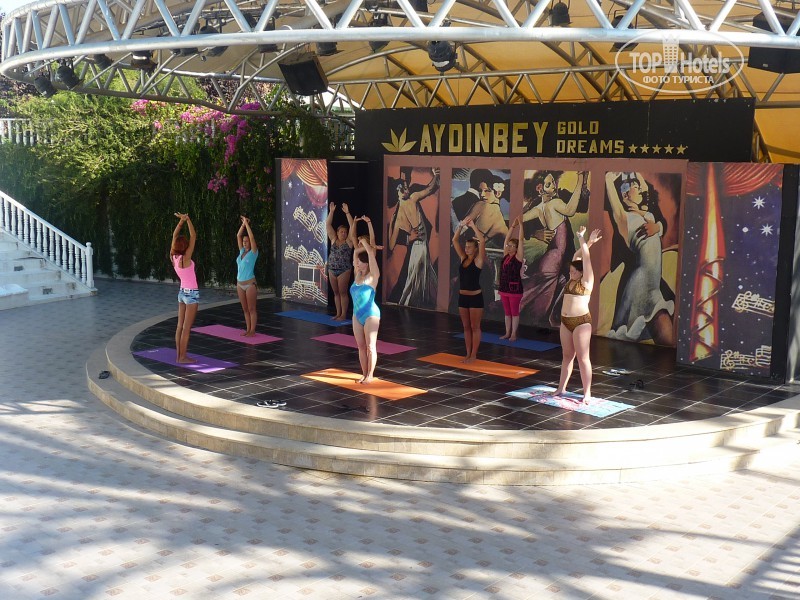 Мы попали в AYDINBAY по случаю отсутствия мест в Jasmin Beach&Resort 5* на две ночи(3 дня)-(уговорили).Просто нам тоже было интересно посмотреть "ULTRA AL".Прибыли в 11.30 и сразу поселили (в дежурный номер 1101 корпуса А),разместились и на обед.Записались на скраб- -кисек в СПА (70$ за двоих)и на пляж (ехали за солнцем и морем). Не буду повторятся с информацией о гостиннице -описанную в каталогах,Интернете или отзывах -дополню отсутсвующее. Пляж и море явно далеко не UAL5*.Поэтому лежаков всегда в избытке.Близось полноводной реки,постоянный прибой(отсутствие мола),отсутствие пирса, галечный пляж,близость автобана и тд -это минус.Плюсом можно считать- отсутствие соседних пляжей-гостинниц, незавершонность строительства общественного пляжа поселка TURKLER(слева) и пляжных коробейников, водномоторные виды развлечений.Прозрачность воды =3 м. после 10.00(наплыва купающихся)или западного прибрежнего течения =1м.Дно чистый песок - живности - 0.На восток 800 м. к камням можно встретить живность. 17.00-Yoga- в амфитеатре-нормальные разтяжки, 17.30 кисек-массаж а там и ужин - некогда и отдохнуть.После дороги и "всех испытаний" рухнули трупом. Утром встреча рассвета(фото),завтрак и на море и солнце!Обед-Сьеста-Ёога-Массаж-Ужин-Анимация-Отбой.Некогда было просмотреть и всю террикорию AYDINBAY и местный базар TURKLER. А утром сборы "домой" в Jasmin Beach (в 5 км.) в 11.00 съехали. И несколько примечаний по пребыванию в AYDINBAY : Удалённость отеля от посёлков/магазинов/цивилизации -негде показаться,потратить/прокутить/проиграть "свои кровные".Отельные бутики не в счёт. Близость к стоячему водоёму,зарослям,пастбищу коров и незнанию отдыхающих- откуда берутся комары и мухи (и что с ними делать)!? Для "водоплавующих" тоже неудобства-нет прозрачной воды.(Надо ездить на долмуше- Конаклы-Грин хилл или Алара Парк-Кемпинг) Но всё конечно восполняестся компактностью территории (и плюс и минус) и UAL,особенно для семейных пар с детьми. Пока детки "отрываются по полной" в клубах,горках и бассейнах, родители тоже "отрываются по полной"- за всё заплачено! Так и Грех! Никто не поверит потом,как это возможно- всё "бесплатно" до и поле 24.00,и все друзья и "все уважают",даже немчуры нет с кем поспорить о нонешней и прошлой жизни , а ты трезвый!? Раз деньги заплачы,надо их использовать " по полной".Что бы было ЧТО вспомнить,чтобы не переплатить и не несьесть и не невыпить, за что заплачено,чтобы "не остатья в прогаре"-ЛОХАНУТЬСЯ! Многие даже не доедают в своих тарелках и недопивают своих бокалах, что бы показать свою щедрость.Раз не съем,так понадкусываю/недопью. А особые "догады" в последние дни "сливают-наполняют" свою тару на "посашок-дорожку" (ведь бутылками не дают) а обратная дорога длинная и все друзья а в А/П Антальи металлоискатели "недопитые бутылки минералки" непоказывают в сетках,сумках или детских рюкзаках т.ч.можно довезти и родного порога! Мы ещё раз убедились в том что характеристику гостиннице(отдыху) могут дать не название или звёздность гостинницы -А ТОЛЬКО МЫ САМИ(С ВАМИ)! ( ylrs01@gmail.com , Skype - ylrs01 )