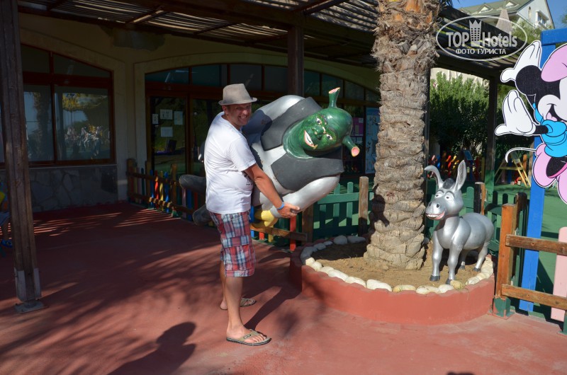Ну ладно погнали! =))) Приземлились в Турции около 5:30 утра в пятницу, 31 августа. Погода отличная, контроль прошли быстро! Посидели в ТЕZовском автобусе полчасика (как всегда ждали каких-то дибилов, которые шарились по Дюти-фри)... Поехали! Пригнали в отель нас первых, это было начало седьмого... ехали около получаса. Турок на ресепшине как всегда сделал вид что не понимает по русски и типа ему не до нас... даже браслеты пришлось самому просить чтоб надели, чтоб хоть в баре наливали!!! С номером конечно был облом и нам сказали подождать... Ну ничего, время завтрак, пошли есть! Вещи оставили на ресепшине. После завтрака номера конечно же еще небыло... Сказано было ждать до 2, ок. Искупались в бассейне, покатались с горок... пообедали ))) время третий час, на ресепшине толпа! По началу думали что это всё вновь приехавшие, но оказалось что нет!!! Люди оказывается пытались решить вопрос заселения 2-ой, а кто и 3-ий день!!! По непонятной причине у них небыло не одного номера для вновь прибывших туристов!!!!! И всех расселяли в Туран Парк (отель через дорогу)... Около 3 часов дня нам тоже предложили номер в "Парке"... После 2 часовой ругани, скандала и детского рёва мы всё же заехали в этот Парк через дорогу ((( Благо номер дали хороший, 2-этажный с 2 спальнями... и клятвенно пообещали переселить нас в Резеденс до обеда следующего дня, да еще и с видом на море! ок. Про вид на море потом напишу отдельно... Как и было сказано, около 12:30, 1 сентября нас всё же заселили в голубой корпус отеля Резиденс, номер 4209 с "видом на море"! Вид на море с балкона можно было в принципе увидеть... но для этого надо было выпасть с балкона как минимум... и еще в полете задрать голову вправо! =))) Кормёжка была хорошая, разнообразие удивляло!!! Расчитывали на меньшее ))) 1 раз за отдых можно было записаться на отельную яхту, которая каждое утро отходит от пирса в Туран Волд. Где-то в середине отпуска и мы решили сгонять! Дорога занимает около 2 часов, но несколько не напрягает! Капитан веселый, со всеми фоткался, придумывал разные игры и разносил напитки! На яхте плыли человек 15, так что было в принципе не тесно... Накатавшись с горок в аквапарке Туран Волда, в 17:20 мы отчалили обратно в Резиденс. Почти все спали, так что дорога назад не напрягла вообще никак! =)) Анимация в отеле Резиденс работает хорошо, особенно понравился детский мини-клуб. Оставляли там детей несколько раз, там с ними хорошо занималиси, рисовали, раскрашивали лица и делали футболки. Это было 2 часа с утра, 2 после обеда и после детской дискотеки в 21:00 всегда показывали мультик... Были в асновном русские дети так что мультики включали только на русском! Возле мини-клуба есть хорошая детская площадка с каруселью которую включают несколько раз в день! После детской дискотеки всегда было взрослое шоу! Сказать ничего не могу, ни разу не оставались... Пляж в отеле очень хороший, как песок так и заход в море! Дно очень чистое и пологое... пожно идти ногами почти до конца пристани, вам будет по горло! Рыб очень много, особенно если плавать с маской возле камней! Крабов тоже можно встретить. А если стоять и не шевелиться рыбы вас будут бесплатно кусать))) В отеле на этаже G (подземный этаж) есть много развлечений: боулинг, пул, аэро-хоккей, теннис, закрытый бассейн и тренажерный зал! Из игр все платно кроме пин-понга. А теперь секрет))) Ракетки для пин-понга лежат в шкафу с пож