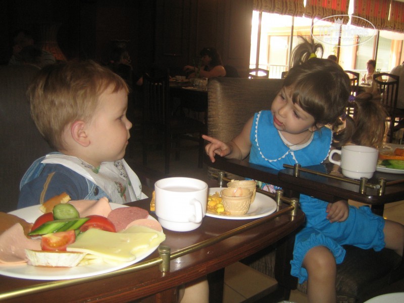 Мы отдыхали в отеле с 1 по 12 мая четвером, я с сестрой и наши два маленьких дитенка (по 3 годика). ЭТО БЫЛО ЧУДЕСНО!!! Эмоции только положительные! Несмотря на задержку рейса и проблемы при посадке, настроение резко улучшилось, начиная с ресепшен, где нас приняли с улыбкой, быстро оформили, чемоданы донесли до номера, и так продержалось все 12 дней. Номер хороший, удобный. Убирались каждый день, иногда с опозданием, но это не сильно напрягало; уборка была качественная. По вечерам очень хорошо была слышна музыка из соседнего отеля, но наши трехлетки так уматывались за день, что спокойно засыпали под грохот музыки и визги туристов. Кухня замечательная, кормили сытно, много и разнообразно. При всем своем желании остаться голодными было невозможно. Даже наши привередливые детки раскусили всю прелесть утренних блинчиков с медом и шоколадом, и с утра бегом бежали в ресторан. За детские стульчики бой шел не на шутку, но официанты всегда находили нам свободные стулья, так что очень редко, когда мы оставались без детских стульчиков. Вообще, к детям тут отношение особое, и приобнимут, и ручки расцелуют, и по кудряшкам потреплют. Причем, это все делается естественно и без подоплеки, так что совсем не возникает желания отодвинуть официанта подальше от ребенка, да и дети воспринимают эти выражения привязанности с удовольствием. Моя доча так до сих пор требует, чтобы ее называли little angel, как ее прозвали официанты. конечно, когда наплыв народа (ланч и ужин), бывает тяжело отыскать свободное место, и приходится ждать, когда стол накроют. Но нас это не напрягало. Официанты говорят по- английски и по-немецки, так что общение было без проблем. Для незнающих иностранные языки - большая часть официантов вполне понимавет русский и может объясниться. то же самое относится и к барменам. Ходили в итальянский ресторан. Детки наши там отожгли, но ни слова порицания, ни взгляда от обслуживыающего персонала не заработали, только десерты и улыбки. Чаевые оставили с радостью))) Детские развлечения (что, собственно и было основным стимулом выбрать этот отель) представлены широко. Хорошая площадка с качелями, горками и т.д. Детский мини-клуб работает целый день. Девушки - аниматоры говорят на нескольких языках, с каждым ребенком могут объясниться. Программа развлечений разнообразная. Дети были довольны. Единственное, что заставило нас ворчать, это появление на детской площадке платного надувного замка (5 долларов за 10 мин.), многие родители разворачивались и уходили (дороговато, однако), уводя хныкающих отпрысков. Наши малыши раза два там порезвились, после поостыли и довольствовались битвой за одни качели при наличии четырех свободных. Пляж очень хороший, чистый, всегда есть свободные лежаки, кругом стоят очень приличные вазы под мустор, регулярно ходят мальчики - уборщики. Но все-равно, из песка дети регулярно выковыривали окурки.)))Мы навезли с собой кучу игрушек, вплоть до надувных бассейнов. Море было несколько прохладным, и бассейны стали очень хорошей идеей! При всем обилии игрушек, у нас все таки умудрились спереть одну хорошую машинку, причем сперли наши же русские туристы. Конечно, не отдали(((( Природа на территории отеля очень красивая, есть, где пофоткаться, есть места, где можно просто посидеть, отдохнуть. Кто-то из туристок писал о приставучести обслуживающего персо
