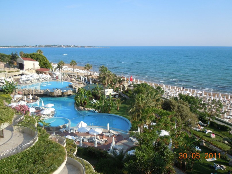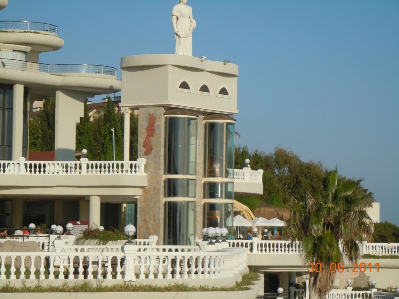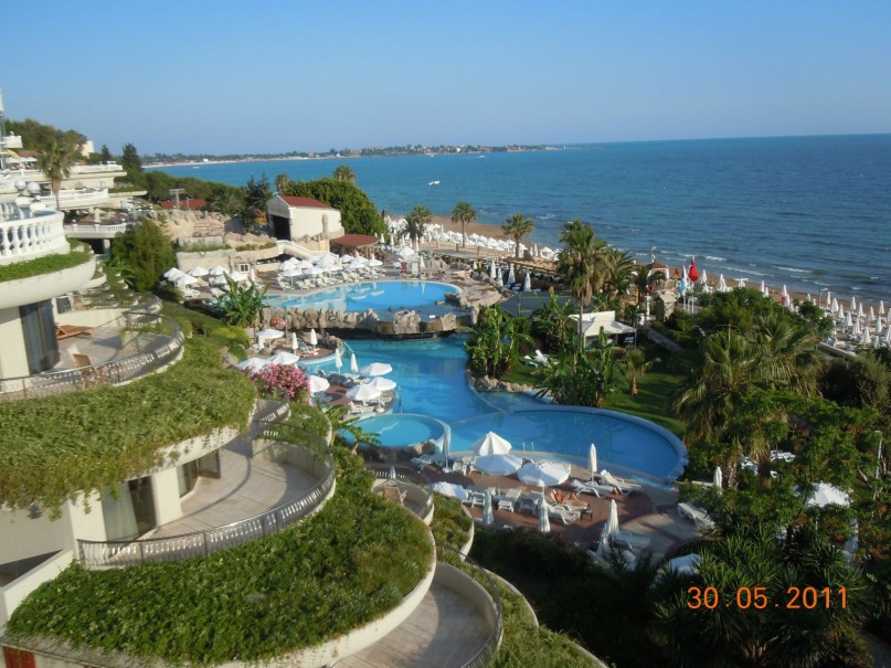 Отдыхала в отеле CRYSTAL SUNRISE QUEEN LUXURY RESORT & SPA с 26 мая по 02 июня 2012 года. Отель неординарный! В Турции отдыхаю уже много лет, по 2 раза в год. Попала в отель практически случайно. Бронировала путевку в CRYSTAL TAT BEACH, но его не успели открыть после реконструкции и SUNMAR за 2 недели до вылета предложил мне на выбор 3 отеля той же фирмы на замену. Выбрала CRYSTAL SUNRISE. Дорога из аэропорта заняла 1 час 10 минут с учетом обязательной технической 15-минутной остановки. В аэропорту встречал большой автобус, но этот отель по маршруту был вторым. В отель приехала в 11:10 утра, положила в паспорт зеленую купюру $50 и попросила на reception расселить по возможности быстро в связи с тем, что ночь не спала и в Шереметьево пришлось ехать прямо с работы, забежав по пути домой за чемоданом. Девушка, понимающая по - русски вернула деньги из паспорта, открыла мне буклет по отелю на русском языке и ткнула пальчиком в правила отеля, которые я и без нее знала: расселение с 14 часов. ОК! Я не стала ничего просить и настаивать и легла спать на диванчике прямо напротив reception. Через 10 минут ко мне подошел старший менеджер, на хорошем русском языке извинился за неудобства, причиненные мне фирмой CRYSTAL с отелем TAT BEACH, и предложил без доплаты мгновенное расселение в номер DE LUXE (в заказах эти номера не числятся – резервный фонд, и называются VIP LOBBY ROOM). Согласилась. Номер оказался хорошим: студио с чайной комнатой в эркере, балконом и 2 террасами. В номере халаты, тапочки, пляжные полотенца, чайник, чашки, кофе, сливки, сахар, телевизор-плазма, сейф, куча гигиенических принадлежностей, включая зубную пасту, щетку, станок для бритья с кремом, крем после загара и.т.д. В мини-баре вода, pepsi, минералка, пиво Efes, арахис – бесплатно. Также в номере – бесплатный WI-FI (регистрация в сети по фамилии и номеру комнаты, все подключаешь самостоятельно, работал неплохо, но в основном на балконе). В номере установлена система «Умный дом», поэтому управление кондиционером, светом, телевизором и дверью ведется только с нее. На террасе 2 лежака с матрасами, 2 мягких кресла и подставка для ног (столика почему-то не оказалось). С балкона была видна и слышна стройка новых корпусов отеля и крик местного попугая, но я ехала отдыхать, а не придираться к мелочам и на балконе проводила минимум времени, а с террасы – вид на море и все тип-топ! К тому же попугай кричал видя только кривляющихся туристов, в остальном разговаривал тихо сам с собою и достаточно прикольно… Мини-бар пополнялся ежедневно около 15:00, уборка была тоже ежедневной – до обеда. При въезде в номер сразу заполнила анкету, что выступаю за охрану окружающей среды и не возражаю против смены белья 1 раз в 3 дня (хотя полотенца меняли ежедневно и постельное белье тоже не по графику). На территории отеля есть отдельный корпус, бассейн с лежаками, аквапарк и детская площадка для отдыха с детьми. Пляжные полотенца выдавали около лифта с 16 до 18 часов, ограничений нет: хоть 2, хоть 3 в одни руки – без проблем, причем не важно, сколько ты их при этом сдаешь! На пляж приходила около 9 утра – свободных мест полно, несмотря на то, что кто-то кидал свои полотенца раньше. В отеле правило: до 8 утра лежаки не занимать! Вход в море пологий, песчаный, но на пути встречаются камни – надо смотреть под ноги! Параллельно пляжу в нескольких метрах проходит каменная гряда, ее надо обходить правее, а далее – чистое мо