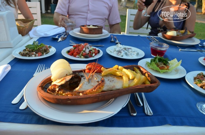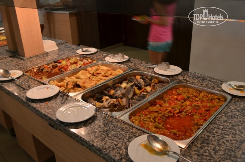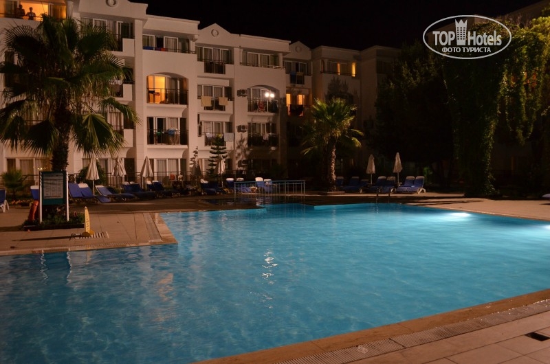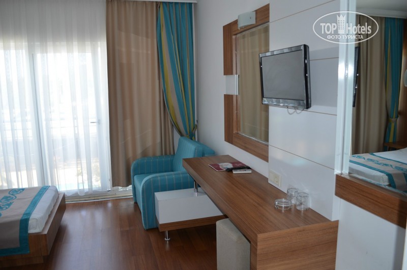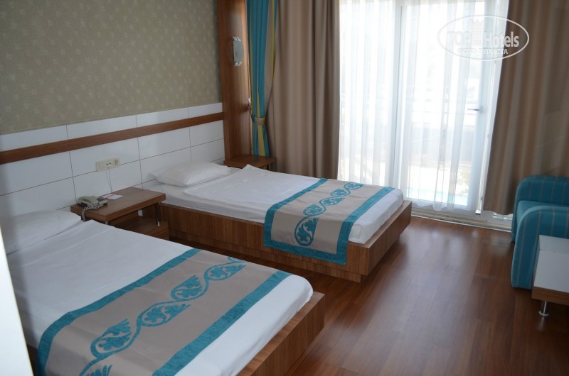 Были в отеле с 25 07 по 3 08. Честно говоря, ожидал худшего. До этого в Турции был один раз в 5ке, поэтому думал, что эта 3ка будет не сравнима. Неприятным моментом была долгая дорога из аэропорта до отеля (встречающая сторона Анекс) – 2,5 часа (ехать 65 км, развозились по отелям). И авиакомпания Ютейр перенесла вылет обратно с 18 00 на 10 00. Далее все пошло нормально. Приехали в отель около 12. Попросили подождать и через 20 минут заселили в номер 306. Вид из окна не очень привлекательный, зато солнце бывает только с 9 до 11 утра. Обстановка в номере нормальная. Есть холодильник, тумбочки, шкаф со множеством вешалок (но без полочек). В ванной фен, в диспенсерах мыло и гель для душа. Полотенца в номере меняют при уборке (если бросить на пол). Пляжные полотенца меняют 3 раза в неделю. При уборке пополняются запасы воды (2 бутылки по 0,5). Кровати действительно с острыми углами, но я долбанулся только 1 раз. Кондиционер работал у нас не очень, но мы правда не обращались на ресепшн. В принципе температура в номере приемлемая. Ночью спали с открытым балконом и к утру жена даже подмерзала иногда. Есть комары (за весь период укусили раз 5). В ванной сырости и плесени не наблюдалось. Вода днем чуть теплая, вечером была горячая. К нам на следующий день присоединились знакомые с Украины. Им сначала предложили номер на первом этаже, но они от него отказались по причине большой сырости и наличия плесени. Им дали номер на 4 этаже. Там все было нормально, только от крыши жарко было. Но они обратились на ресепшн по поводу работы кондиционера, его им отладили и все стало ок. Далее территория. Территория озеленена, утром и вечером постоянно поливается. Грязи и мусора не наблюдалось. На территории ресторан (питаться лучше внутри, так как там прохладнее), два бара у двух бассейнов (110 см и 140 см глубиной). На бассейне 110 см есть две небольшие водяные горки. При бассейнах также есть детские мелкие лягушатники. Шезлонги при бассейнах всегда доступны. Есть тренажерный зал. Площадка для большого тенниса. СПА центр. Жена от него в восторге. Брала вводный массаж, а потом курс. Массажисты называют себя физиотерапевтами, кем по сути и являются. Жена ходила с 2мя подружками, так они у них диагностировали проблемы о которых они знали (и не рассказывали массажистам) и о которых не знали. И после курса массажа все три заявили, что как заново родились. Мини клуб. Детей там можно оставить с 10 до 12 и с 14 30 до 16 30 (после обеда мы не попадали, так как спали). С детьми занимается аниматор Маша. Там они играют в игрушки, рисуют и раскрашивают красками. А также Маша раскрашивает им лица под мордочки зверей. Помимо этого они при желании раскрашивают именные футболки, которые им за 15$ вручают на минидиско. Пляж. До него надо идти пешком сначала по небольшой рощице, потом по вымощенной тротуарной плиткой дорожке. По времени это занимало: с детьми (4 и 7 лет при постоянных командах «туда не иди, сюда иди, давай иди» и т.д.) – 10 минут , сам (обычным быстрым шагом) – 5 минут. Время засекал специально. На пляже работает снек бар, есть вода в кулере, юпи и айран. Персонал в баре убирает осыпающийся песок с ног отдыхающих почти моментально (что очень поразило). Везде чистота. Лежаков с матрасами хватает на всех в любое время. Берег песчано-галечный. После захода в воду после гальки идут большие камни-плиты. Вход в море не такой пологий, как хотел