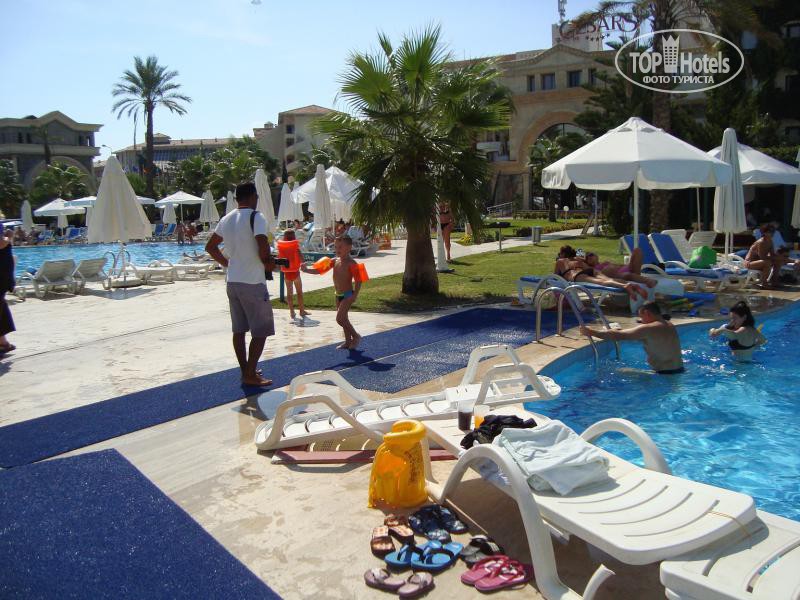 Были в цезаре с 19 сент по 2 окт 2010,Отель просто сказка-есть с чем сравнивать.То что народ пишет про кошек и собак-правда,ну разве вам жалко куска рыбы или курицы-я считаю глупо писать о том,как им портили аппетит животные.Вот мухи-реально надоели,и только в ресторане-я вообще удивлена,что комаров не было,Вообщем сам отзыв....Летали от санмара.Я+муж+ребенок6 лет и ребенок 2года-все устроило-если бы оба не заболели,у одного кишечная инфекция у другого отит,даже капельницу маленькому ставили.Номер дали в основном корпусе.Кстати придупрежу всех,кто собирается туда номера начиная с названия pool side.....и остальные -это размещение в круглом корпусе annex-это 4*.Только номера sea view и garden view-написанные на вашем ваучере достойны основного корпуса-у нас был гарден нам и дали сразу за ресепшеном во внутреннем дворике отеля.Был большой фэмили рум с двухяросной кроватью и 5ти спальном сексодроме.Уборка слабовата правда-даже при оставленных чаевых.Еда супер куча разных фруктов-вино в бутылках-бери скока хошь+минибар ежедневно пополняемый-пляж супер песочем-для детей сказка,лежаков-море,всегда были свободные.Если полечу еще в турцию-то только туда и без детей-потому как в бассейне и подцепили кишечку-будте осторожны.нечаянно хлебнете водички -и с унитаза слазить весь отпуск не будете....вот так оптимистично закончу