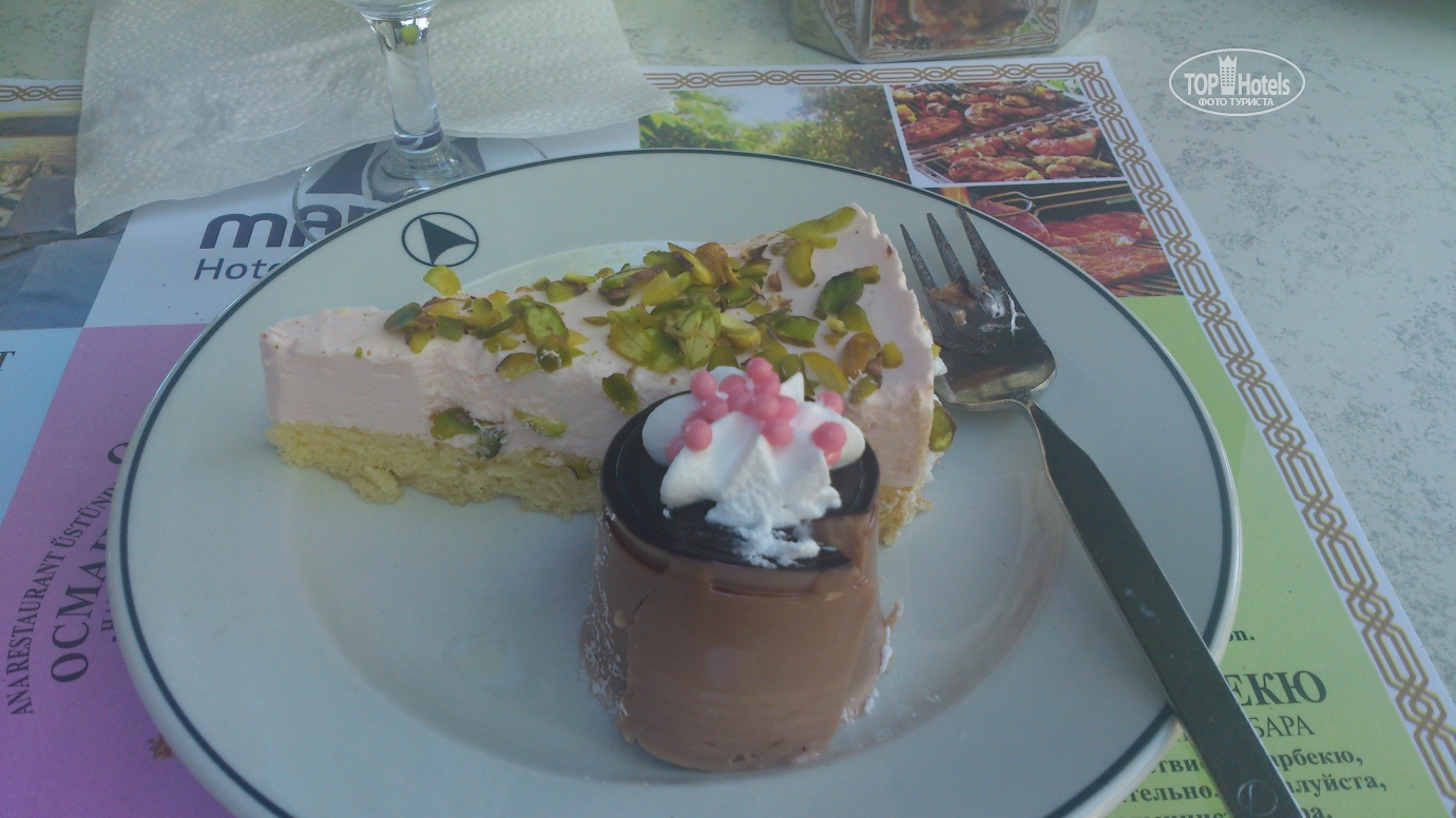 Всем здравствуйте. Вчера вернулись с женой из Маритима, сразу по горячим следам поделюсь впечатлениями. Отдыхали неделю с 26 апреля по 3 мая. Отдохнули хорошо, довольны. Теперь свои впечатления. Отель - достойный, хороший отель. Не скажу, что шикарный, видали и побогаче, однако в целом очень достойно. Оговорюсь сразу - отель изначально заточен под немецких пенсионеров, отсюда все вытекает. Несомненные плюсы - отличный большой песчаный пляж (правда песочек пыльноватый и с камешками, при входе в море присутствует галька, не сильно комфортно), ухоженная зеленая территория. Поселение - мы приехали уже под вечер, заселили сразу без проблем на второй этаж во второй корпус, без нареканий. Питание - очень даже неплохое, вкусно и есть выбор. Всегда присутствуют фрукты, много сладостей. Все вкусно. В течении суток всегда можно найти где поесть и что пожевать, с этим без проблем. Номер - обычный стандарт. Халатов нет, тапочек нет. Из моющих присутствуют по паре флакончиков с надписью шампунь и лосьон для тела, ни хрена не мылятся, мылись своими, хорошо, что взяли. Набор для чая и кофе в номер принесли через два дня на третий с того момента, как мы обратились по этому поводу к отельному гтду Алене. Персонал - русскоговорящих очень мало. Я сразу перешел на английский, которым они тоже далеко не все владеют (в отеле преобладает немецкий язык, весь персонал на нем говорит), сразу почувствовал улучшение отношения к себе со стороны персонала. Необязательная рекомендация - здоровайтесь первыми, спросите, как дела, не будьте высокомерными бычарами и отношение к вам будет хорошее. Деньги, в принципе, давать не обязательно, я пару раз давал и оставлял за уборку, но от этого ничего не меняется. Гораздо лучше действует вежливость и улыбка. Анимация - я ее практически не видел. С 1 мая уже появились какие-то ребята, начали там что-то пытаться организовывать, какие-то танцы, игры, но сильно она не проявилась. Может из-за того, что мы были еще только тогда, когда сезон только начинался, но при нас ее практически не было. Вечерние представления скучные и непонятные, в последний день только были нигерийские акробаты и то только полчасика. На дискотеку не ходили. По отелю вроде все. В общем - отель хороший. По туроператору - никогда в жизни больше не поеду Корал Трэвел. Просто писец какой-то. Безпроблемным был только трансфер в отель. Дальше поехали - заказали поездку в до небес расписаный торговый центр меха-текстиль. Как было написано в квиточке в 16.30 прибыли на ресепшн. Машины нет. Подождали минут десять, потом ребята с ресепшена подсказали, что оказывается машина уже была, кого-то забрала и уехала. Начали звонить отельному гиду Алене, менеджер ресепшена один раз набрал ее, я с ней переговорил, обещала кому-то позвонить, на этом все кончилось. Следующее - поездка на шоу Огни Анатолии. В этот день они выступали в Алании. Собрали нас с трех отелей без проблем, привезли к театру. И начался анекдот. Мы сидим в машине, гид пятнадцать минут выясняет, а мы вообще туда приехали? Вроде как должно быть в другом месте. В конце концов выяснилось, что водитель сам не зная об этом привез нас правильно. Но пока это выяснялось все лучшие места в театре были уже заняты. И отступление - это нас сразу привезли правильно, а вот другие машины Корала куда людей из других отелей повезли? Что касается самого шоу - н