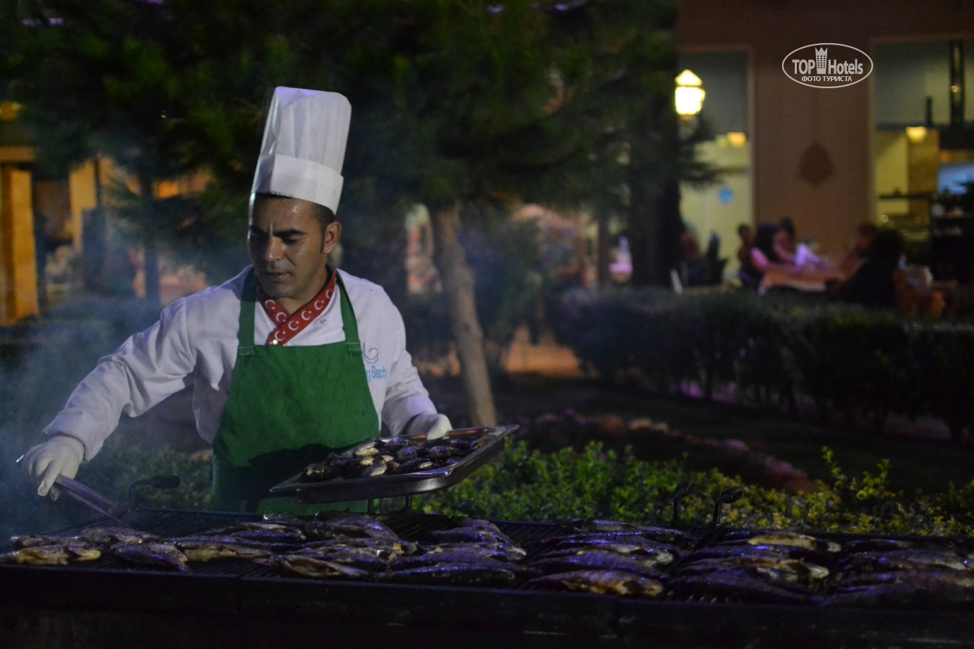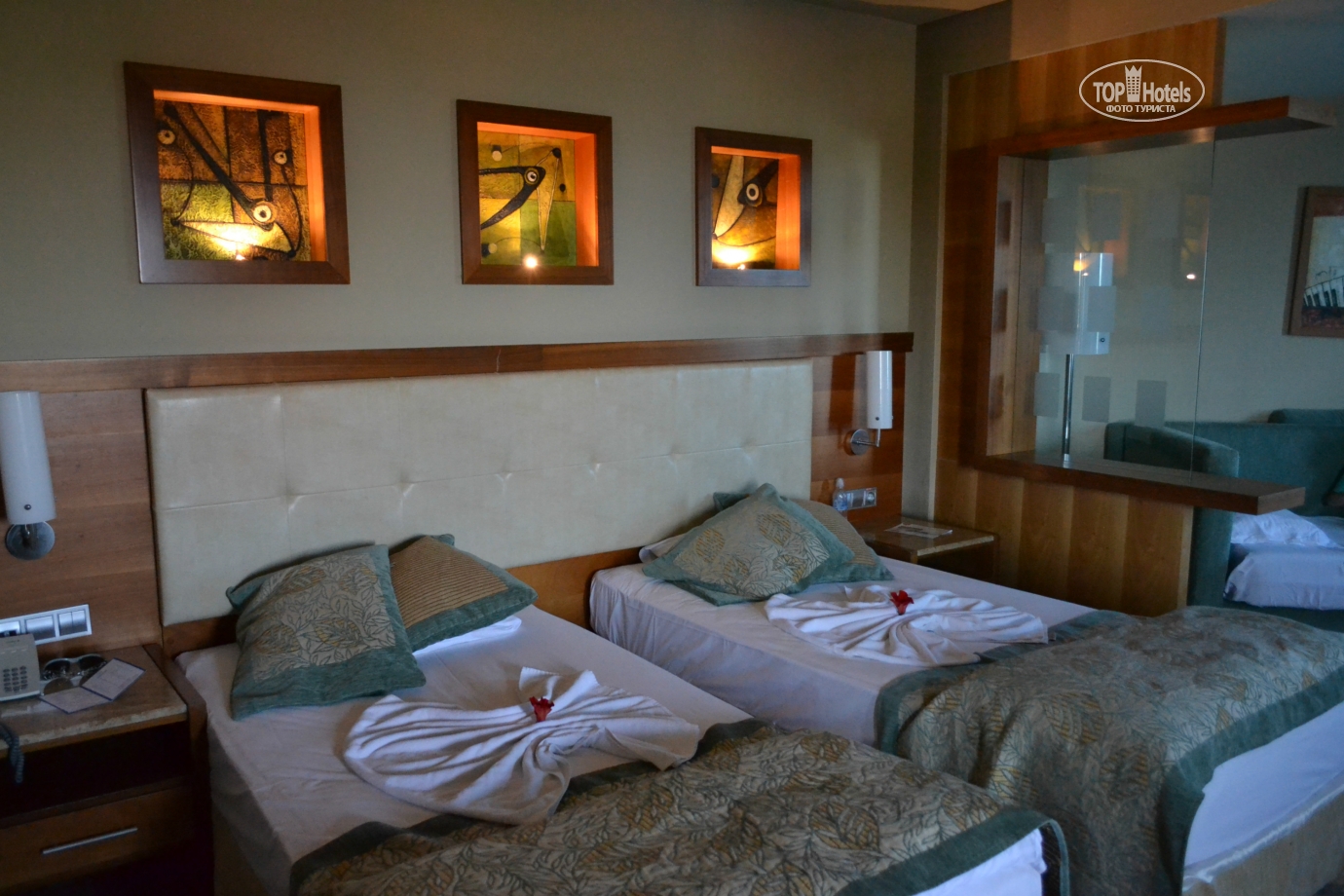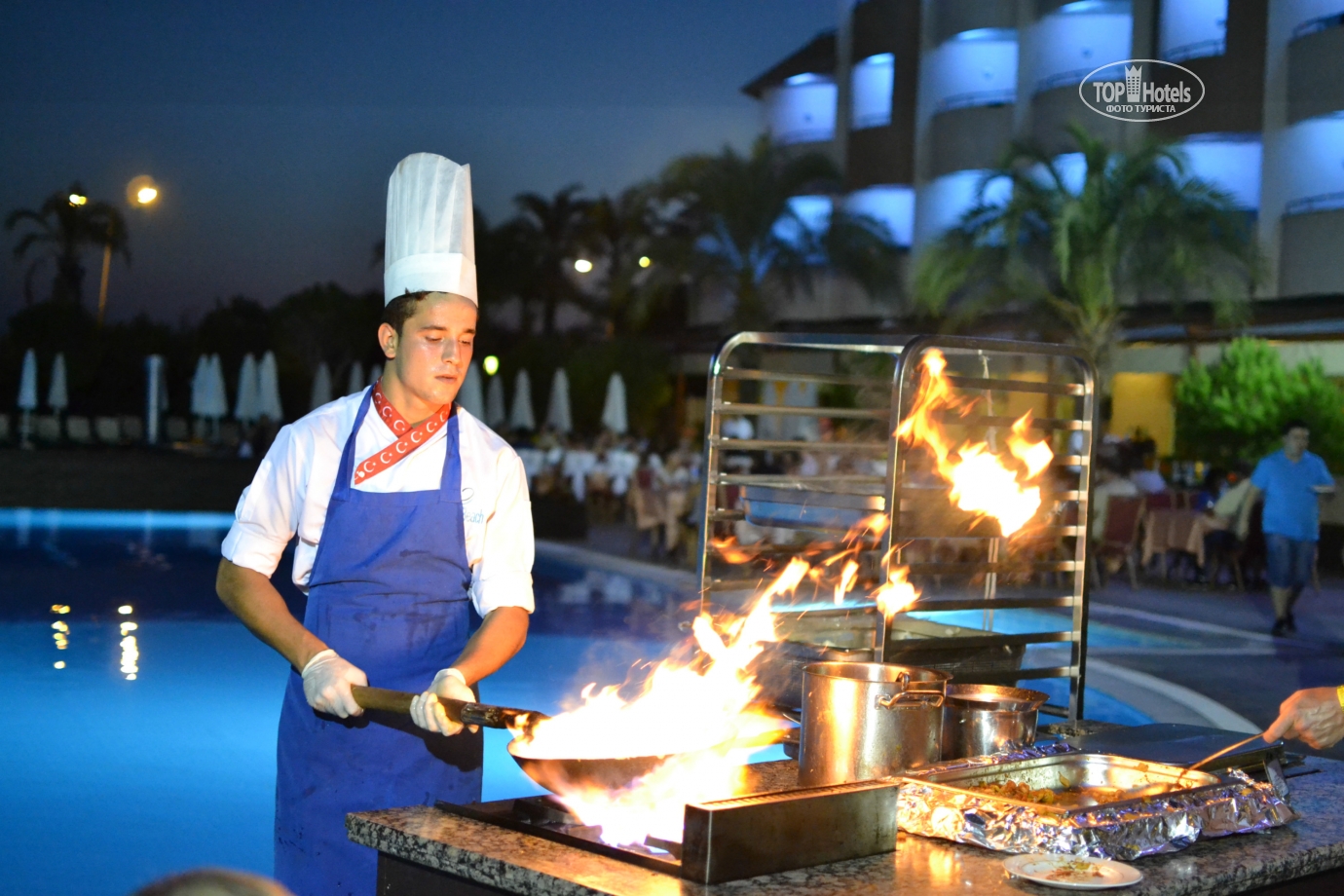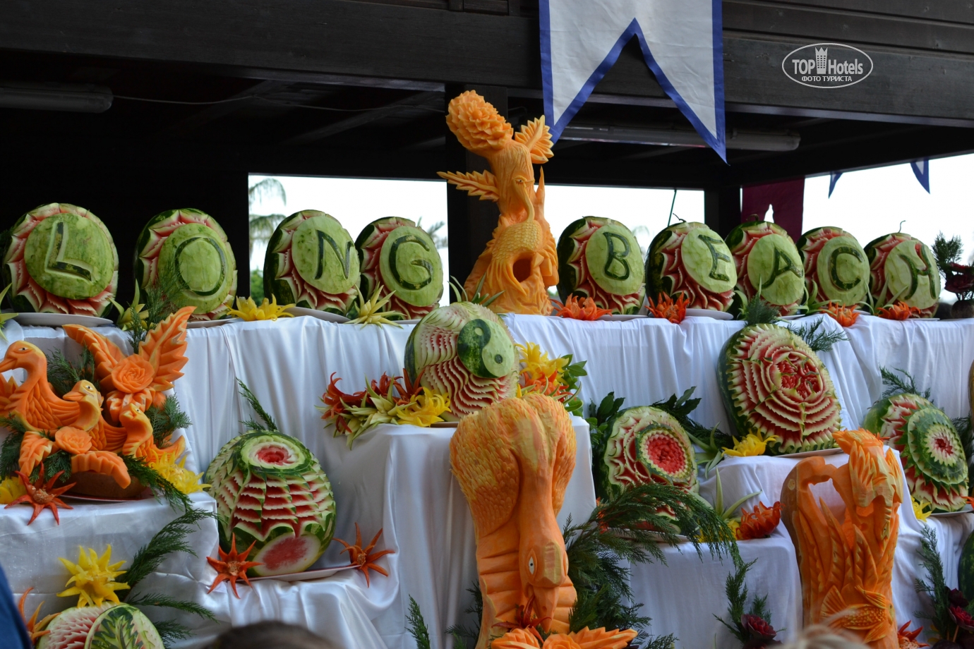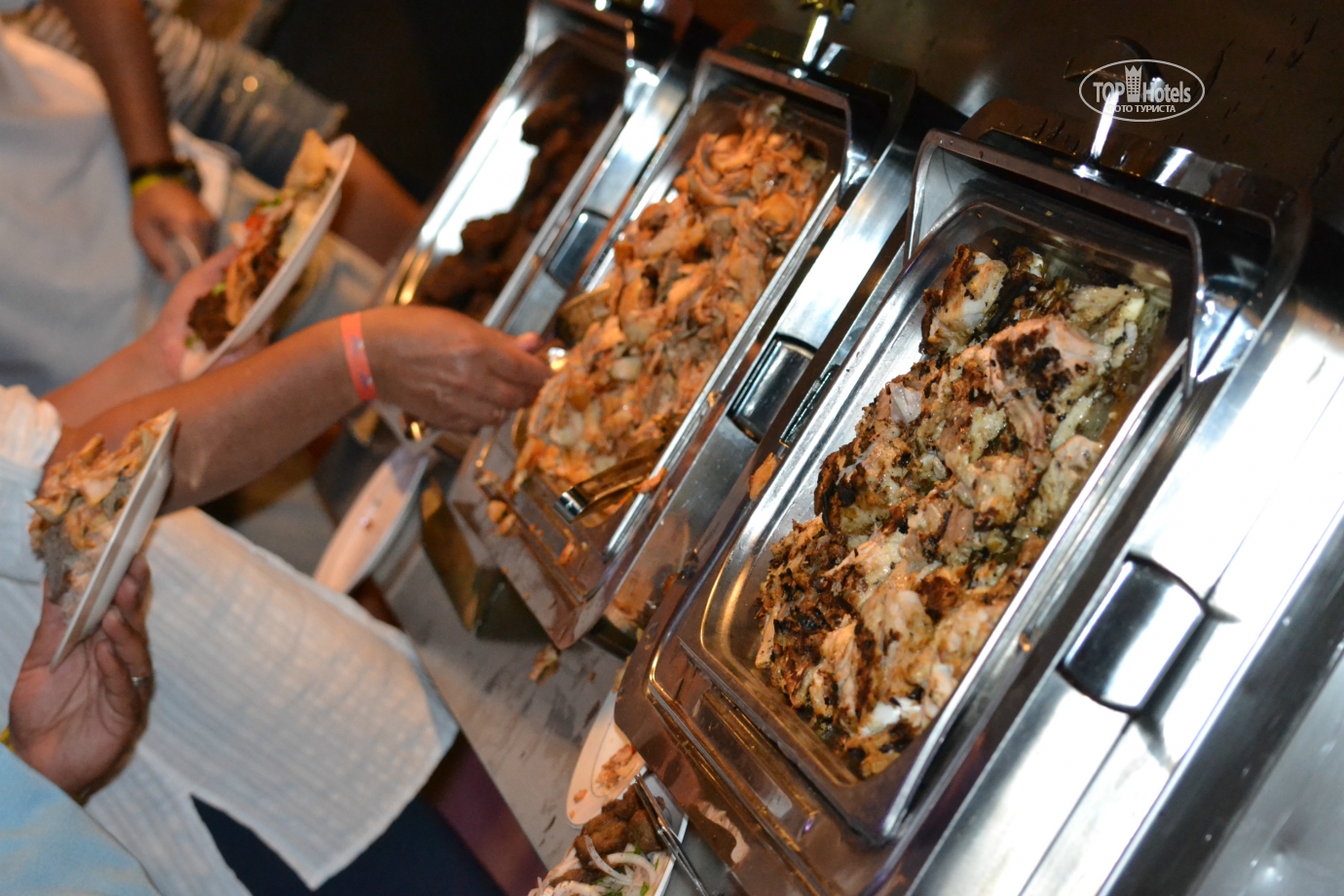 РАЗМЕЩЕНИЕ: Приехали в отель около 10:30. Въезд в отель совсем не примечательный, невзрачный. На ресепшене никто особо улыбчив не был, коротко и ясно, как в банке )) приняли документы и отправили гулять до 14:00. Хочу отметить, что я предварительно списывалась с представителем отеля в группе ВК и писала пожелания насчет номера (исходя из отзывов). Каково же было мое удивление, когда на ресепшене мне сказали, что нам готовят номер исходя из наших пожеланий! Анна, спасибо Вам!!! Ребенок к моменту приезда в отель проголодался, мы поинтересовались где в настоящее время мы можем перекусить (ведь UAI как-никак), на что нам был дан сухой ответ: сейчас нигде, ждите обед до 12:30. Подходили пару раз поинтересоваться, готов ли номер, но заселили около 14.00. НОМЕР: Номер, который нам предоставили, расположен в правом крыле, если стоять лицом к отелю со стороны пляжа (блок G, № 156), вид на виллы и частично на море. Позднее мы поняли, что поскольку номер с торцевой стороны, он значительно больше остальных стандартов по квадратуре. Внешне номер совпадал с фото на сайте, но при этом был заметно потрепанным. Мебель выглядит старой, сидение на стуле проваливалось, на ковролине застарелые пятна. В воздухе летала пыль, что казалось странным, ведь номер готовили. Сантехника, кондиционеры работали нормально. Телевизор реально ловил 4 российских канала. Ни одного детского. Халаты, тапочки для взрослых, швейный набор, чайник, чай кофе и сахар, полотенца, ватные диски, шапочки для душа, расчески и ватные палочки. Зубных щеток не было. В минибаре вода, минералка, пепси, фанта, соки, пиво при заселении. Далее пополнялся водой, минералкой и 2 раза нам ставили соки, видимо потому, что фанту и пепси мы не пили. Сейф. В шкафу достаточно места. Wi-Fi в номере стабилен. Номер на 0 этаже (фактически это 2), удобно, не нужно лифты ждать. При заселении в номере нас ждал презент от отеля: вино и фрукты. Предположили, что это связано с нашей предварительной перепиской с представителем отеля. ШУМОИЗОЛЯЦИЯ на мой взгляд, отсутствует. Шум трассы мне иногда мешал спать, хотя муж и ребенок спали как сурки, набегавшись за весь день. Грохот от дискотеки особо не мешал, так как диско находится на приличном расстоянии. УБОРКА: Убирают плохо. Какие там лебеди ))) Я уже писала выше, что при заселении в воздухе была пыль. Её видел даже ребенок. Мы приехали отдыхать и разборки я устраивать не собиралась, но на 5 день пришлось обратиться к Guest Relations, так как что такое пылесос наш номер уже совсем забыл, про влажную уборку тоже. Также самим приходилось просить, чтобы добавили мыло, шампунь. Ватные палочки, диски тоже приходилось просить. Ну и, как обычно, так называемую уборку начинали тогда, когда ребенку спать надо, табличку «не беспокоить» мы так и не обнаружили. Ах, да, чаевые. Сначала мы их оставляли, потом перестали – за что? Попросили поменять нам время уборки – поменяли. На 10 день войдя в номер мы просто уже смеялись: пыль была везде, на столе следы от чашек, пепельница полная на балконе, кружки грязные, подушки в чехлах и покрывала свалены в кучку на пол, одеяла небрежно наброшены на кровати (собственно потому и догадались, что уборка уже была). Все это мы сфотографировали и пошли к Guest Relations. Может кто-то скажет, что надо отдыхать, а не искать недостатки, но это переходит все границы. Отель позиционирует себя как delux. Я отдыхала в 